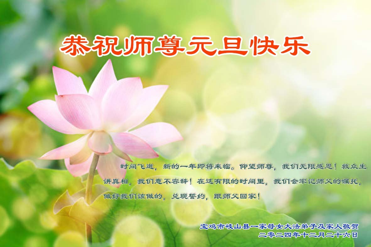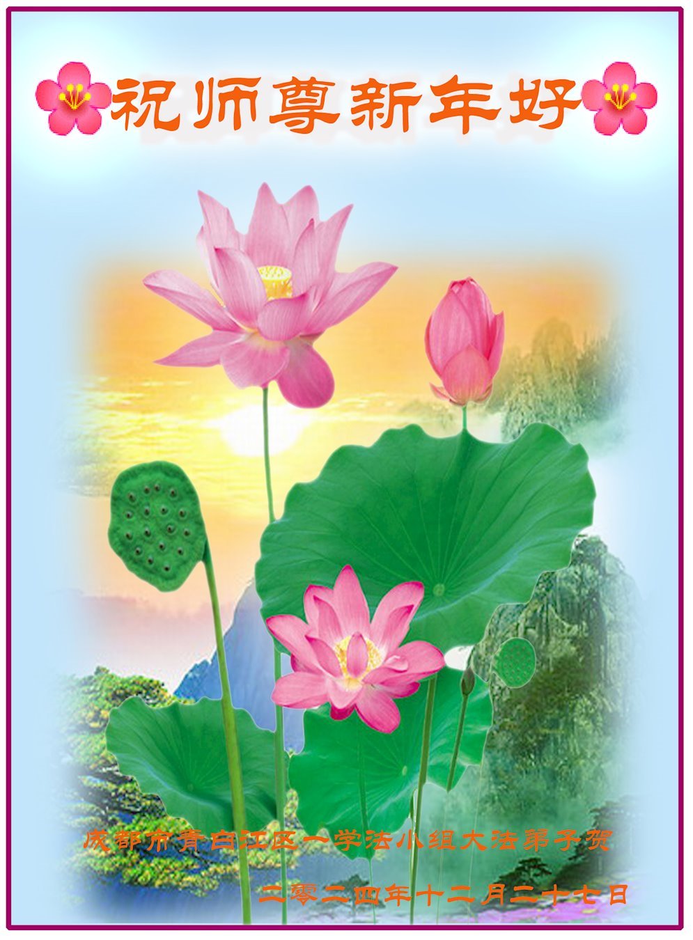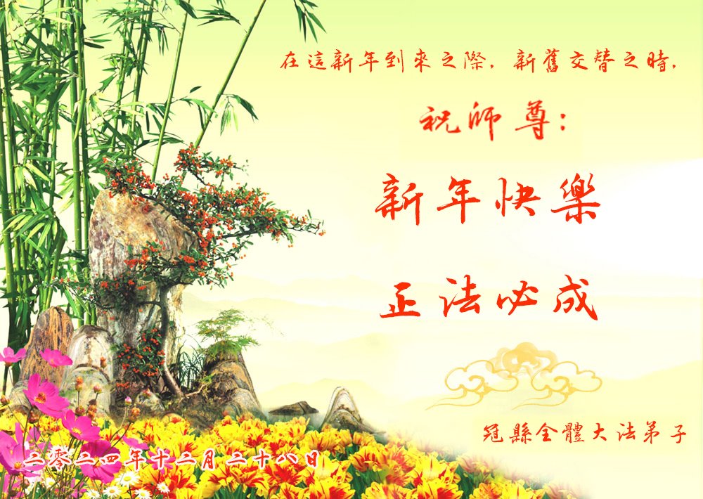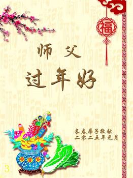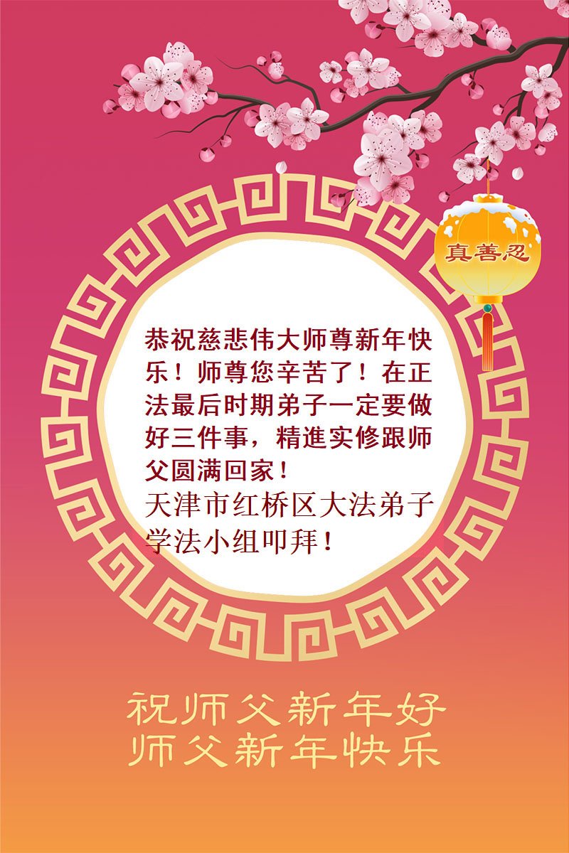 弟子们都表示要精進修炼,随师救度众生。以下是来自黑龙江、吉林、辽宁、山西、山东、河北、河南、安徽、江苏、浙江、福建、江西、湖北、湖南、广东、广西、海南、云南、贵州、四川、陕西、宁夏、青海、甘肃、新疆、内蒙古、北京、天津、上海、重庆等地大法弟子的部份贺词,恭祝伟大的师父新年好!