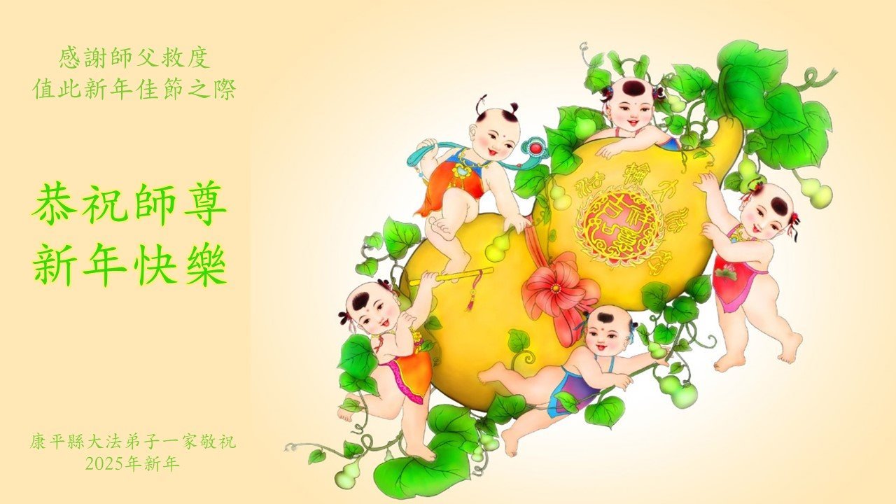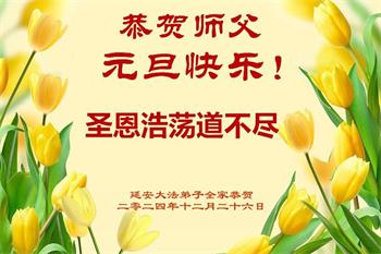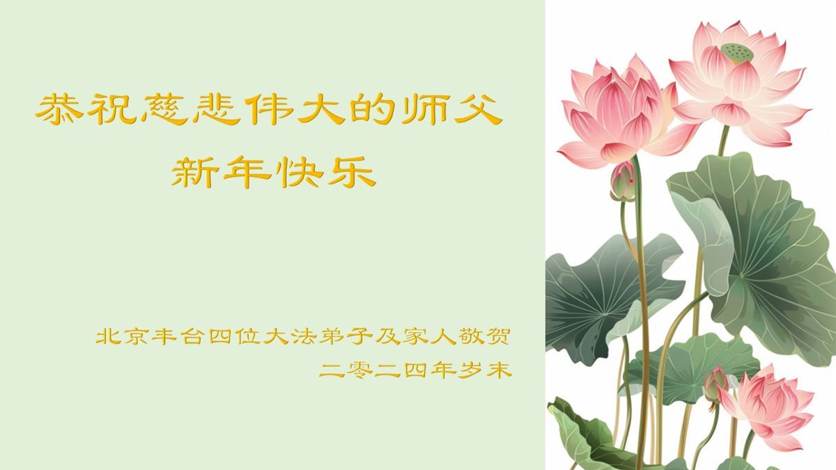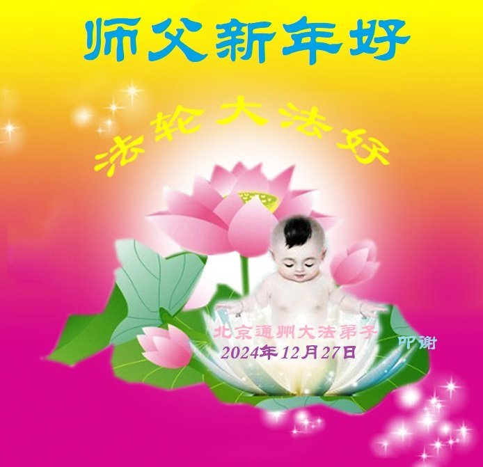 北京通州大法弟子代表一家十口人感谢师父救度之恩!师父您辛苦了,恭祝师父元旦快乐!新年快乐!跟随师父坚修到底,请师父放心。不管发生什么,我们都跟随师父到天上的家园。