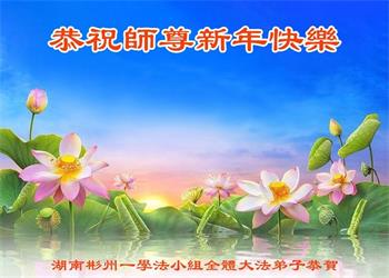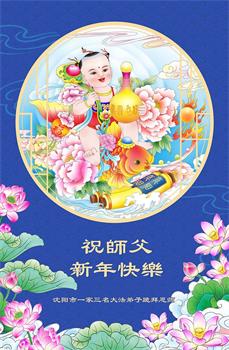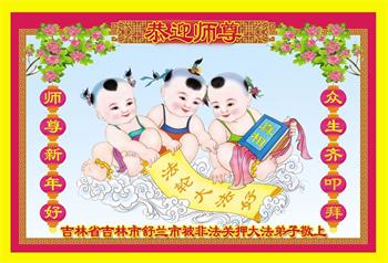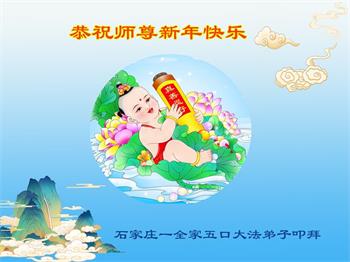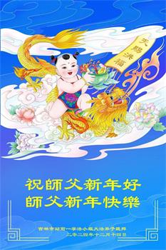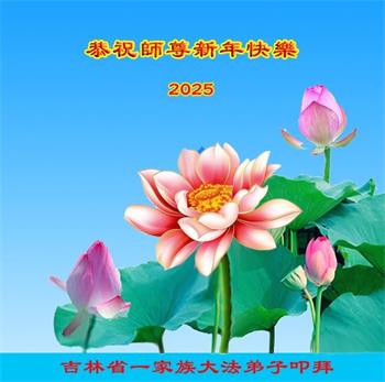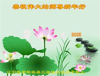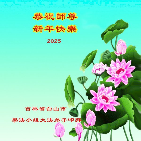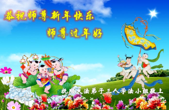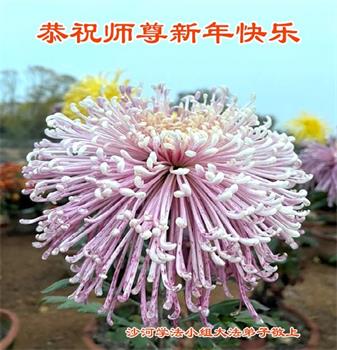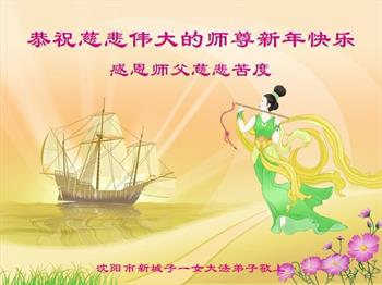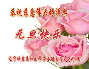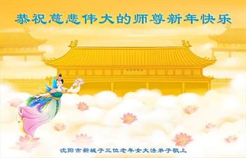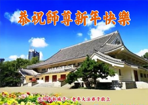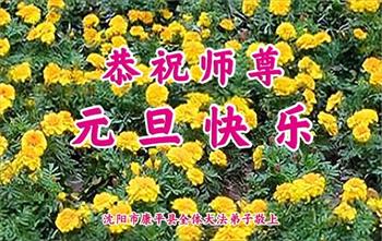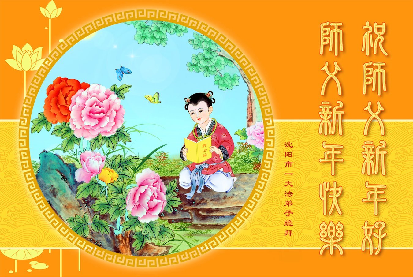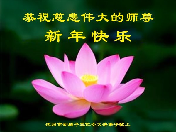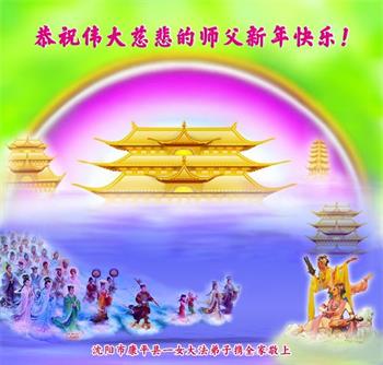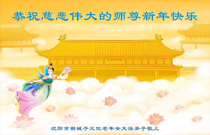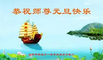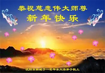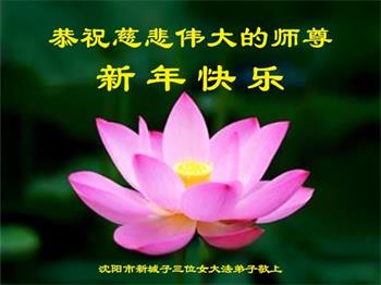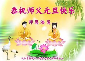 弟子们叩拜师尊,恭祝师尊新年快乐!我们是沈阳市四个学法小组十位大法弟子。我们中有八十多岁的老年大法弟子,也有十二岁的大法小弟子,有修炼二十多年的老大法弟子,也有刚刚走入修炼半年或两年的新学员。我们怀着无比敬仰和无比虔诚之心,给慈悲伟大的师父拜年,恭祝师尊新年好!感恩师尊慈悲苦度!感恩师尊为成就弟子所付出的一切!弟子谨记师尊教诲,学好法,修好自己,加强正念多救众生。共同提高,共同精進,兑现誓约,圆满随师还!