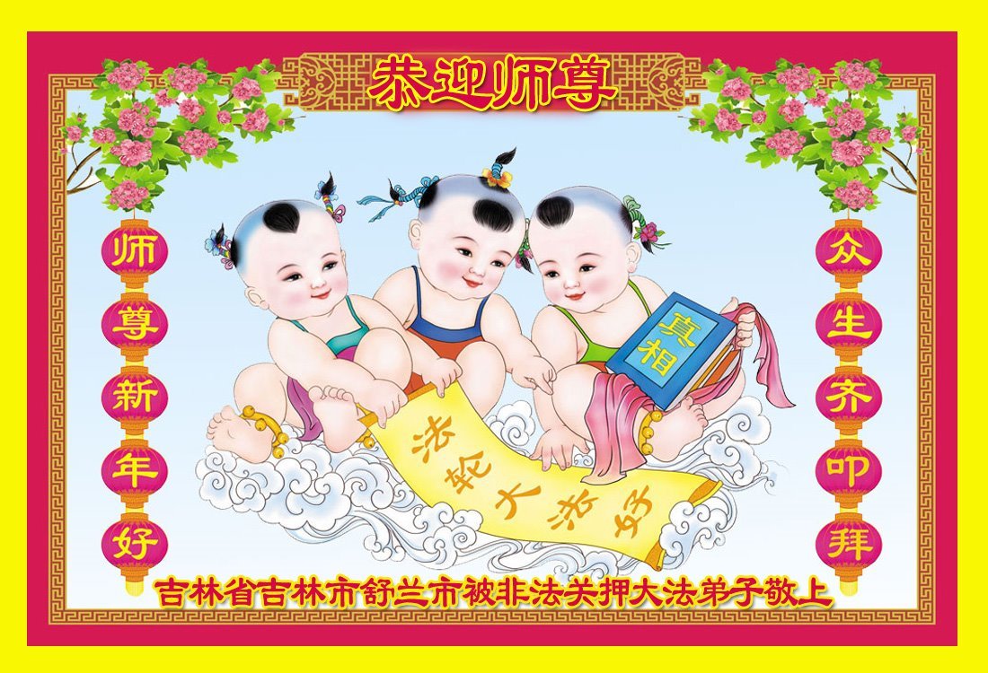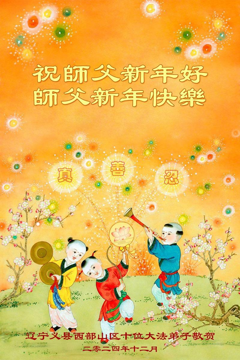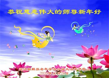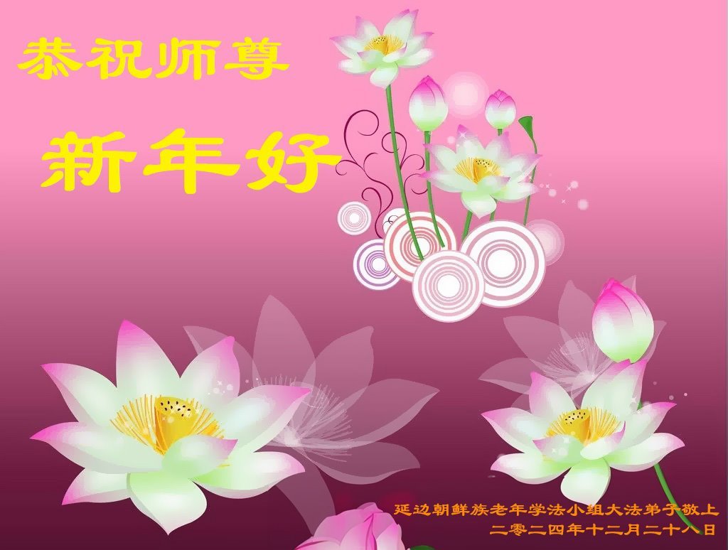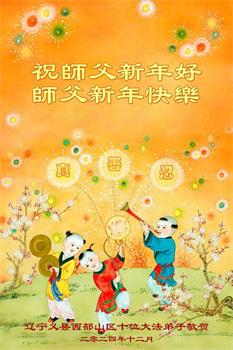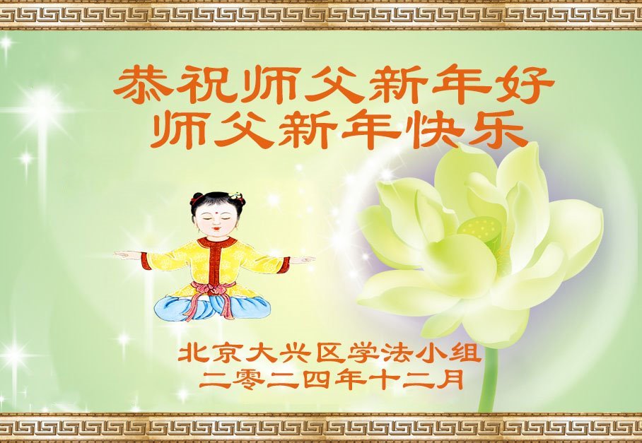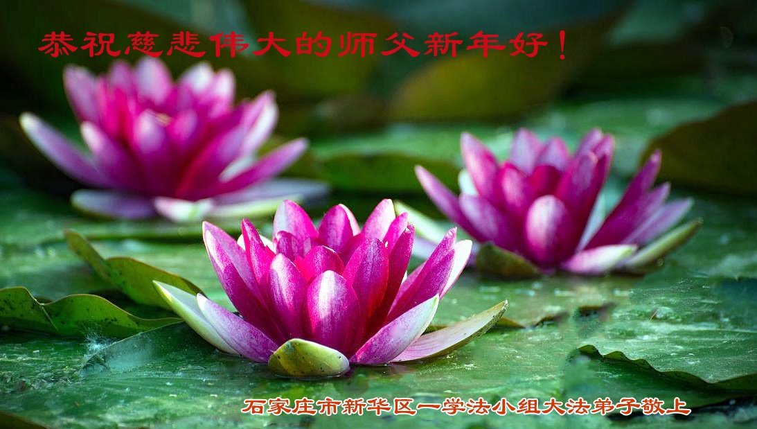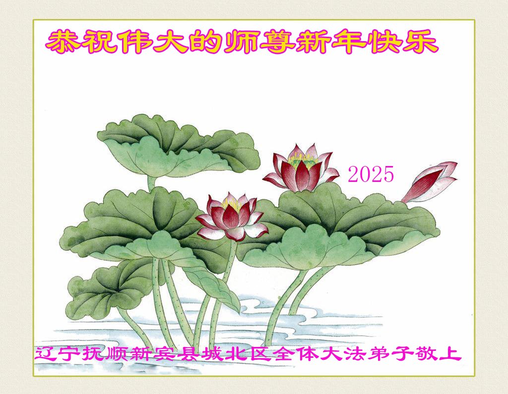 弟子们叩拜师尊,恭祝师尊新年快乐!我们是沈阳市四个学法小组十位大法弟子。我们中有八十多岁的老年大法弟子,也有十二岁的大法小弟子,有修炼二十多年的老大法弟子,也有刚刚走入修炼半年或两年的新学员。我们怀着无比敬仰和无比虔诚之心,给慈悲伟大的师父拜年,恭祝师尊新年好!感恩师尊慈悲苦度!感恩师尊为成就弟子所付出的一切!弟子谨记师尊教诲,学好法,修好自己,加强正念多救众生。共同提高,共同精進,兑现誓约,圆满随师还!