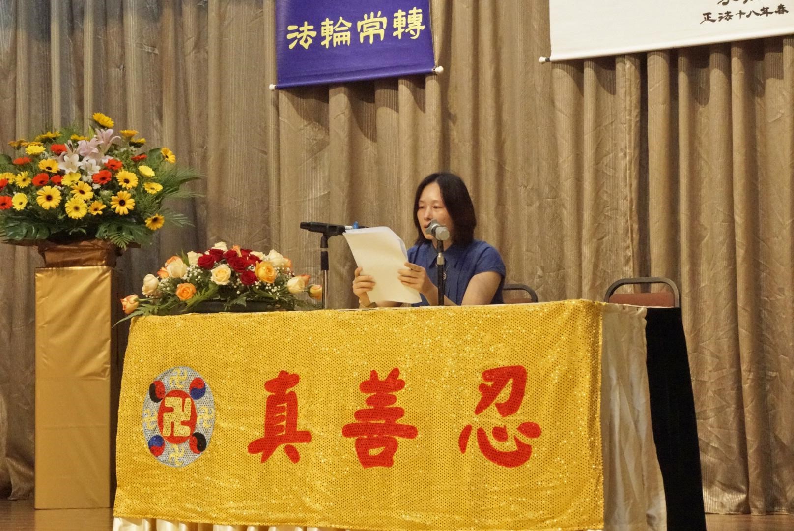 在法会开始前的周日早晨,法轮功学员齐聚一堂在酒店场地炼功,场面一片祥和。在会上有十九名学员分享了他们在日常生活、工作中用真、善、忍的法理修炼的心得和讲清真相救度众生的心路历程,与会者深受触动与鼓励,比学比修促精進。
