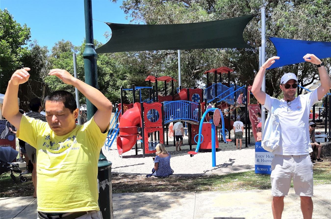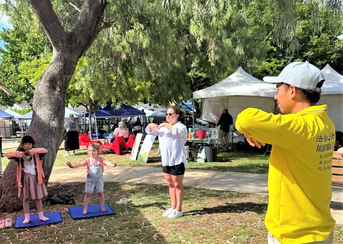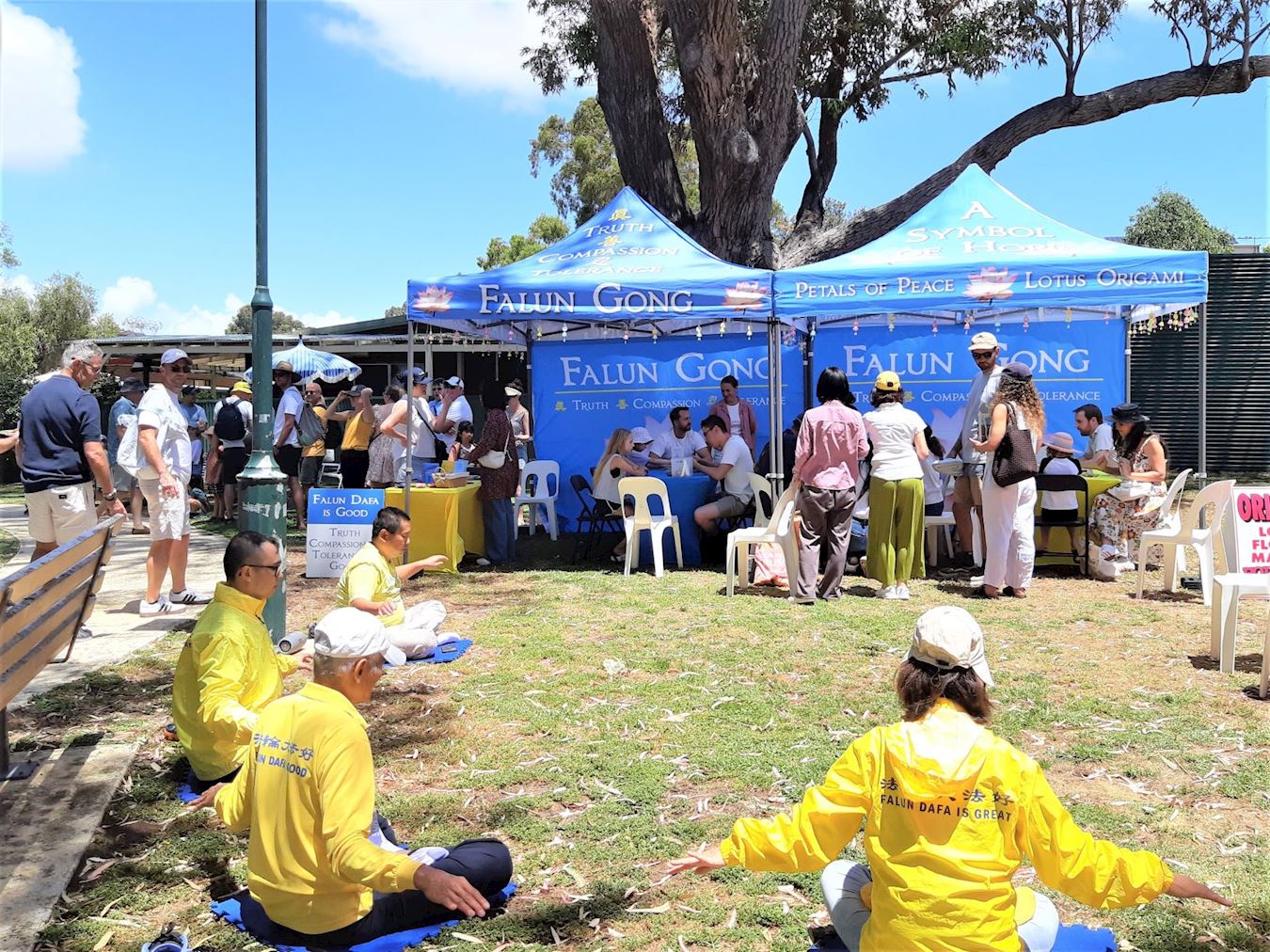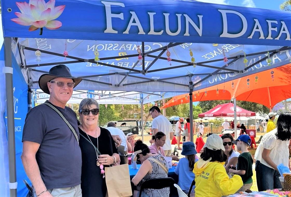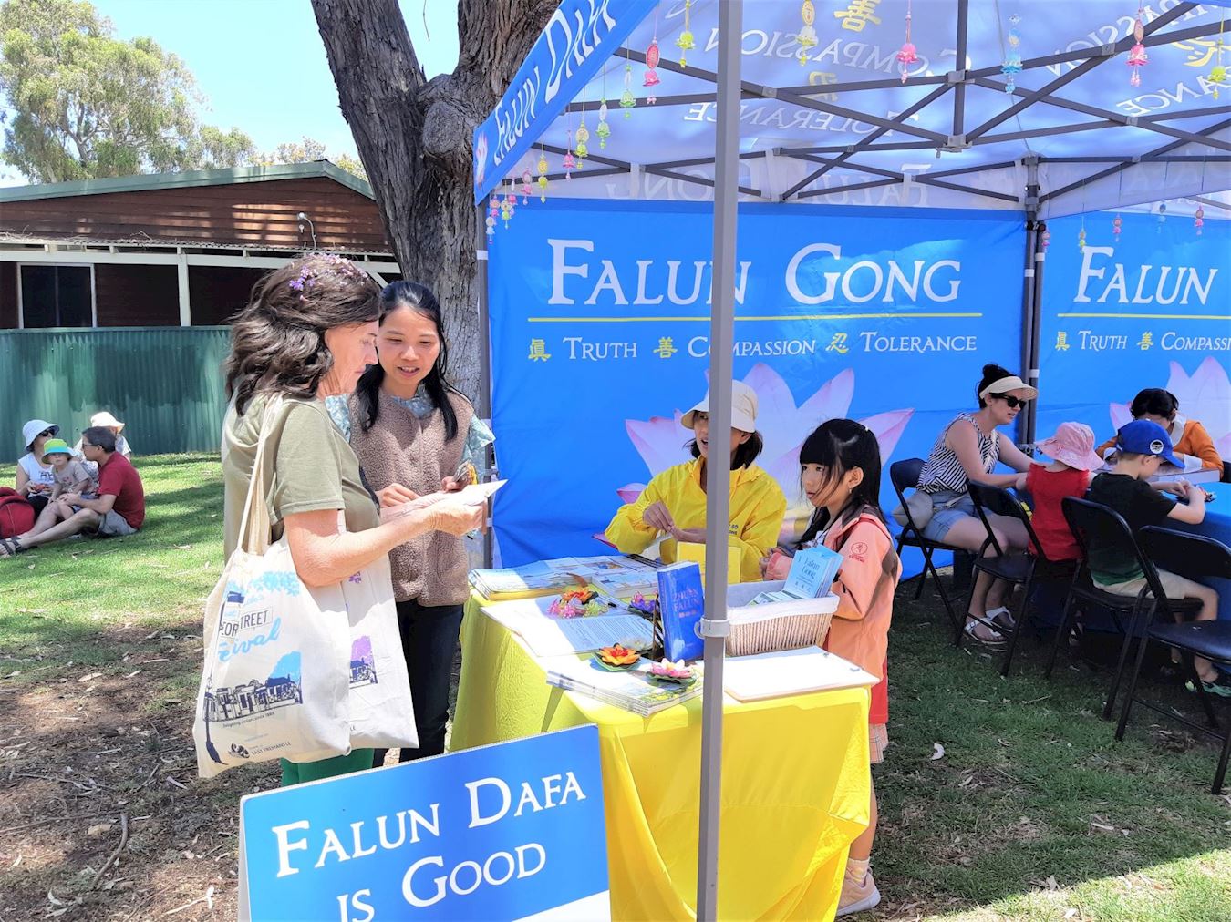 达伦说:“我们在珀斯市中心默里街购物中心步行街(Murray Street Mall)看到过你们的展位,我们和那里的法轮功学员交谈过,那里的展位摆设和你们这里的一样。”