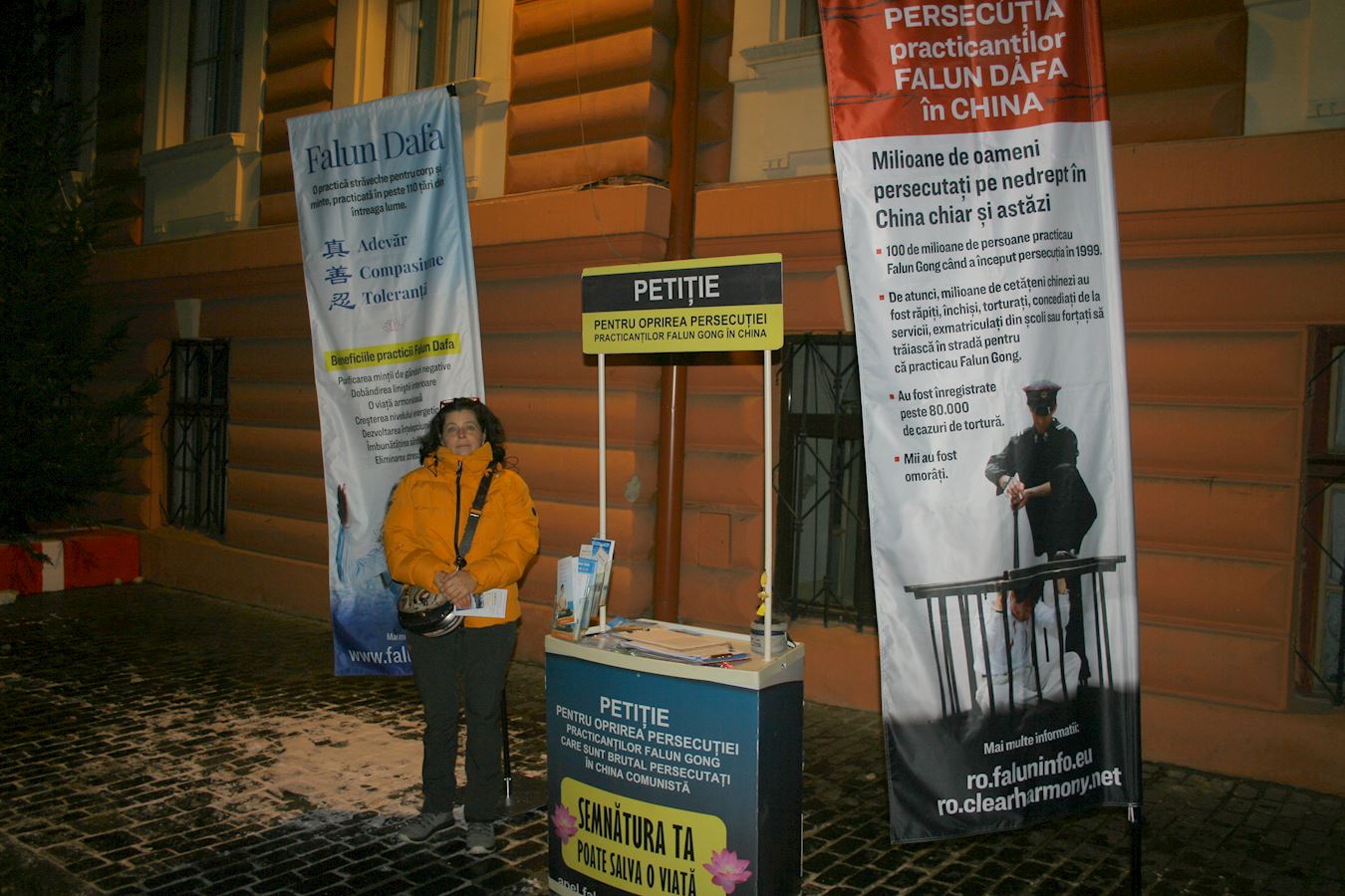 桑德拉说:“我们学院参加过布加勒斯特的身心博览会,从那时起我就知道了法轮大法,已经很多年了。当时我了解到很多法轮功的信息,所以我现在来签署请愿书。”