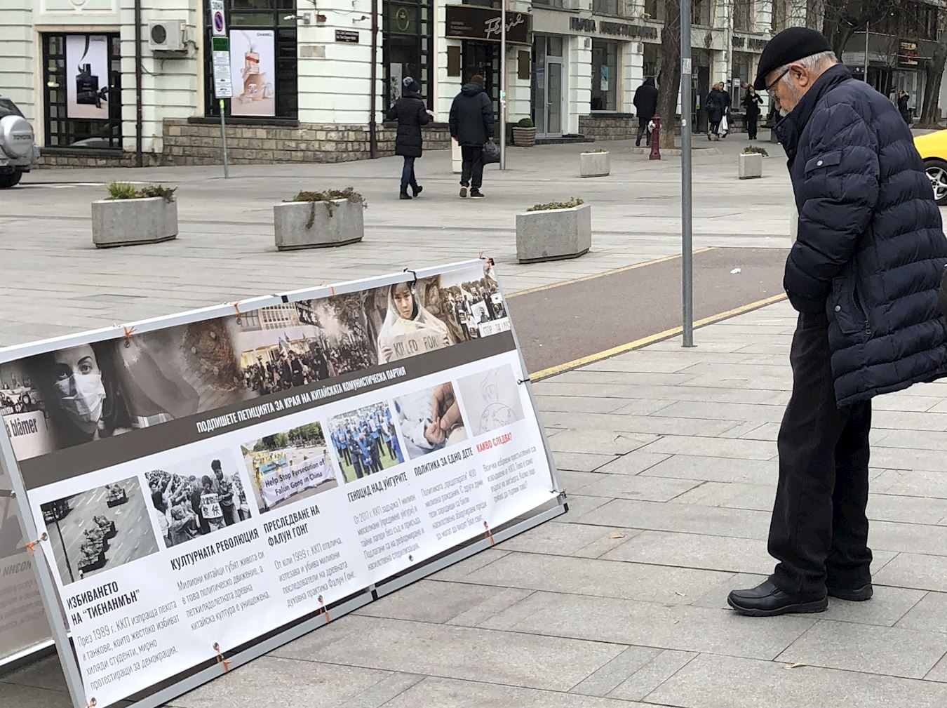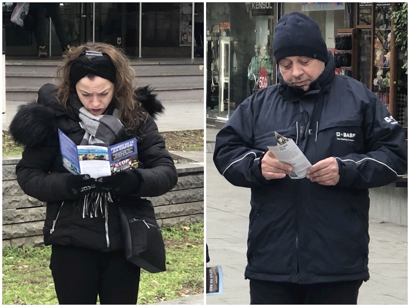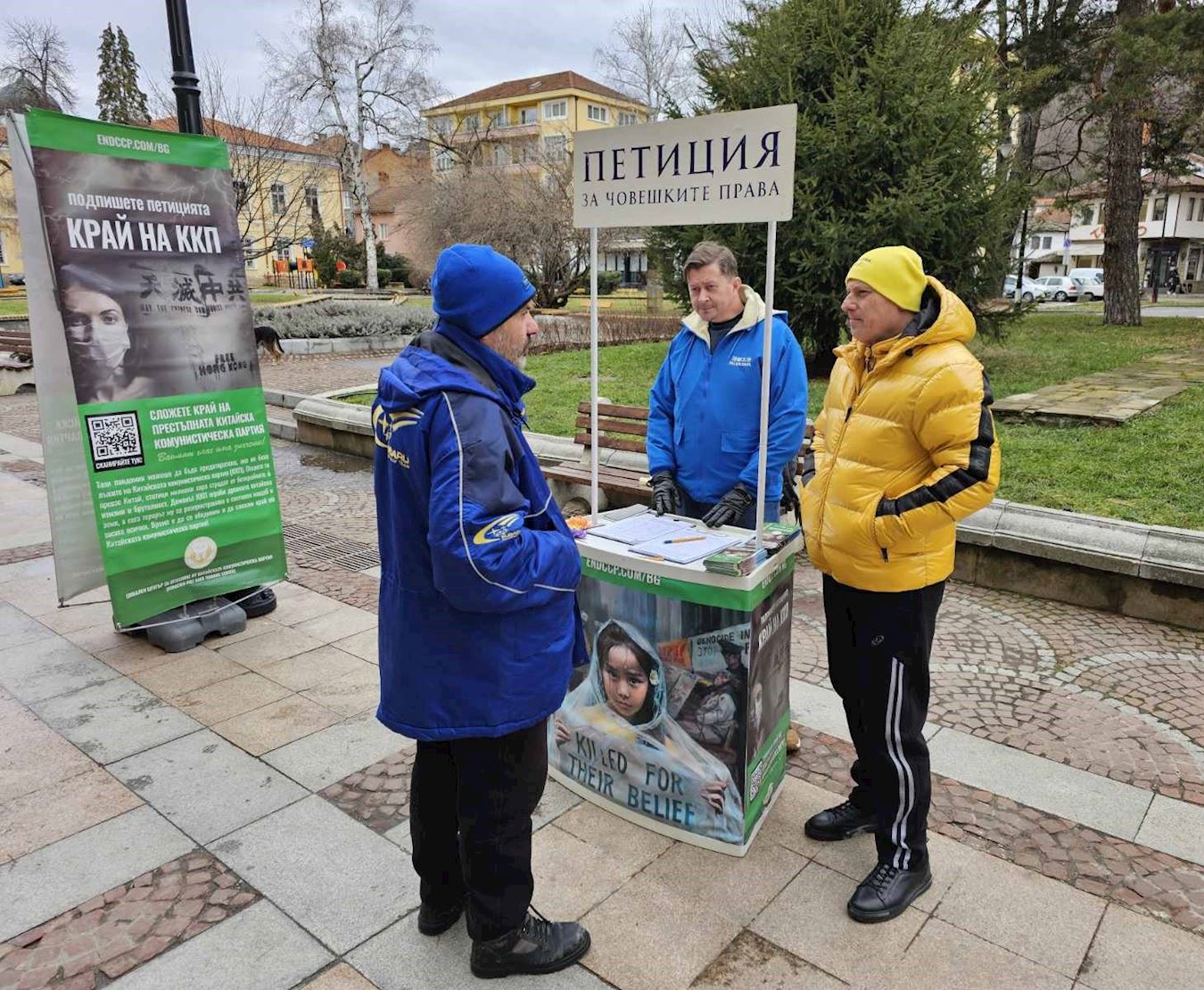 二零二四年一月二十七日,法轮功学员在旧扎戈拉的主要步行街设立法轮功真相展,许多路人纷纷前来关注中共的暴行。