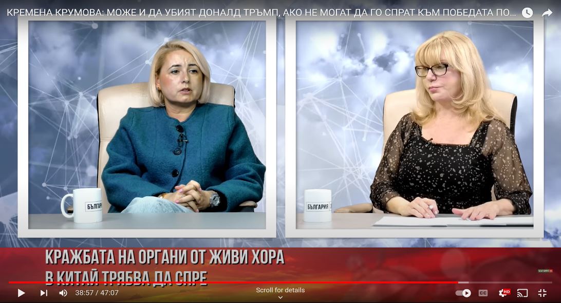 克鲁莫娃在节目中介绍了反对强摘器官医生组织向所有联合国会员国发出的公开信,还提到欧洲议会于二零二四年一月十八日通过第2024/2504号决议(RSP),谴责中共持续迫害法轮功,这是欧洲议会针对中共迫害法轮功的第三项决议,得到欧洲议会中两名保加利亚议员安吉尔·詹巴兹基Angel Dzhambazki)和伊尔汗·奎楚克(Ilhan Kyuchuk)的支持。