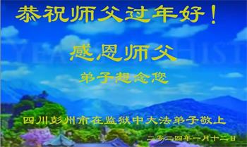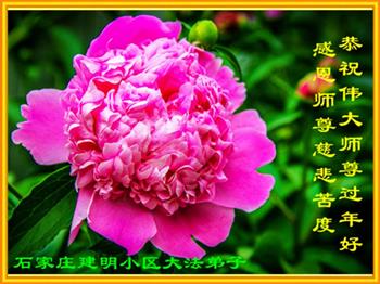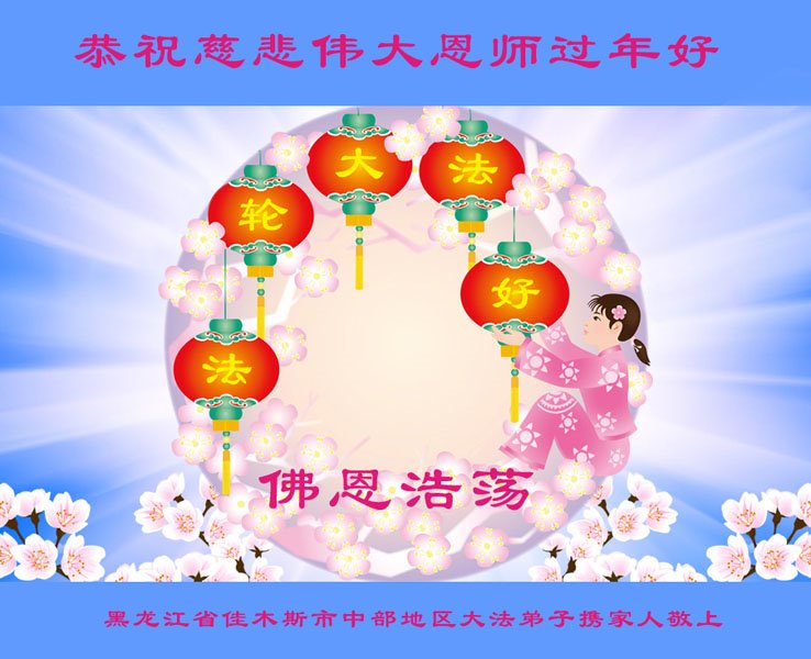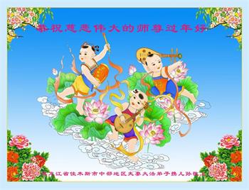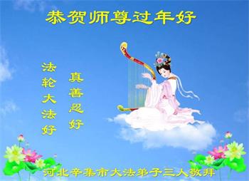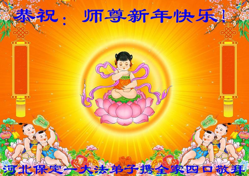 四川省德阳市大法弟子的未修炼家人说:“我们的父母都修大法,我们子女虽未修炼,但也跟着受益。我们见证了大法在父辈身上的神奇,也懂得按真、善、忍做人的道理。特别是在中共病毒的蔓延中,我们平安度过了劫难。我们十分感谢李大师的无限佛恩!感谢李大师赐给我们的洪福!恭祝李大师过年好!”