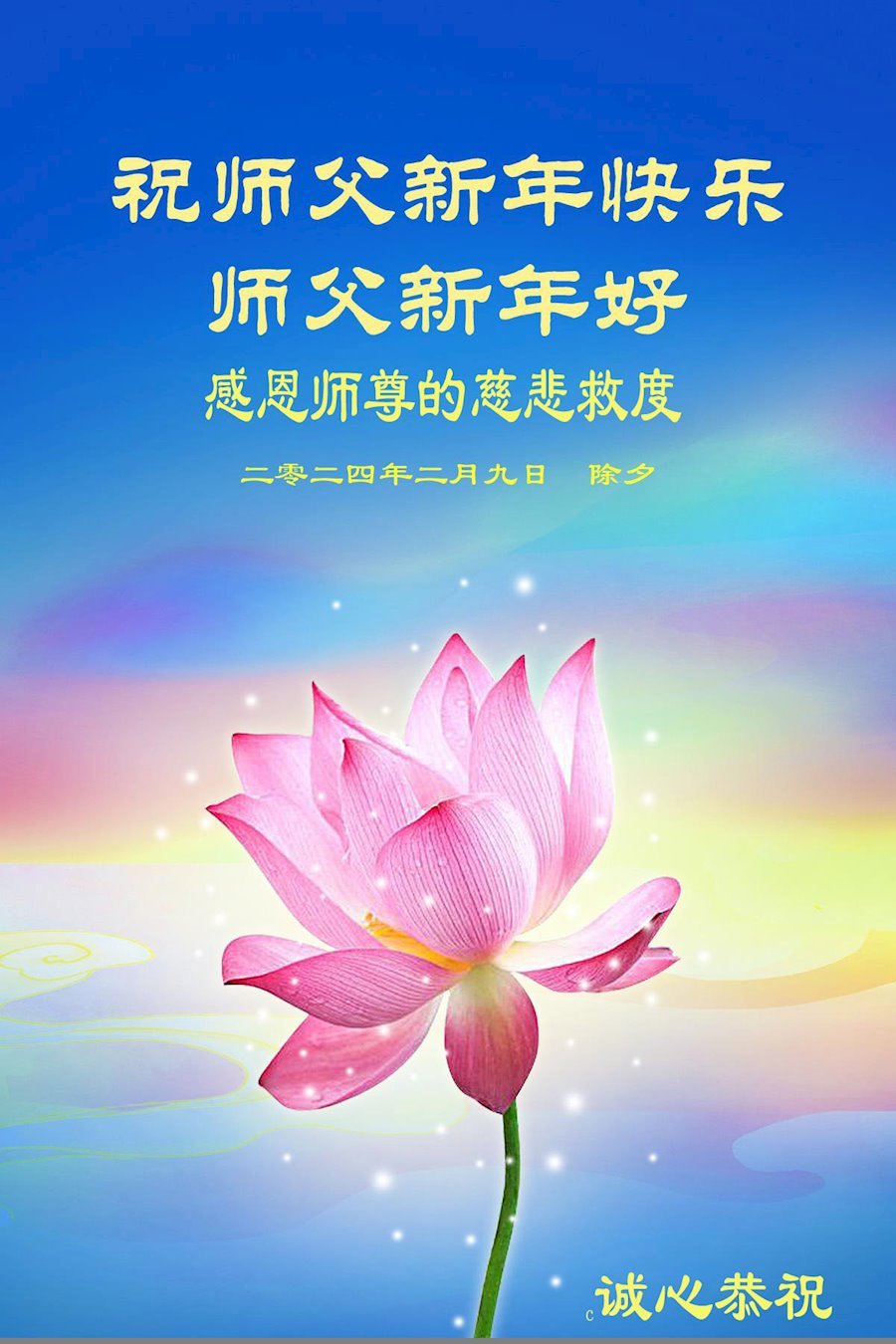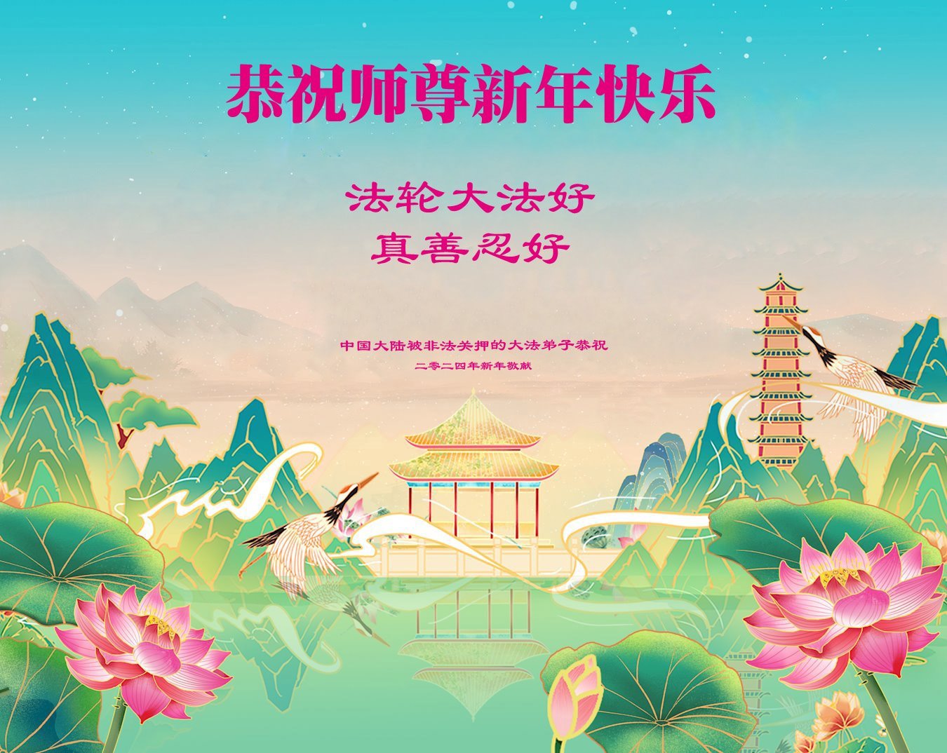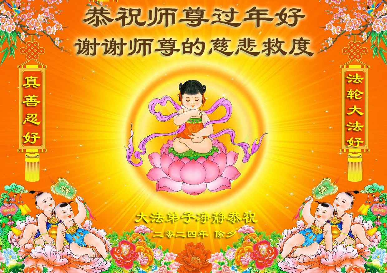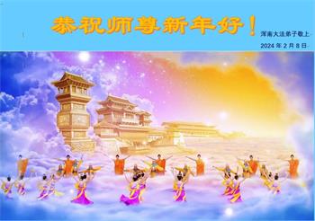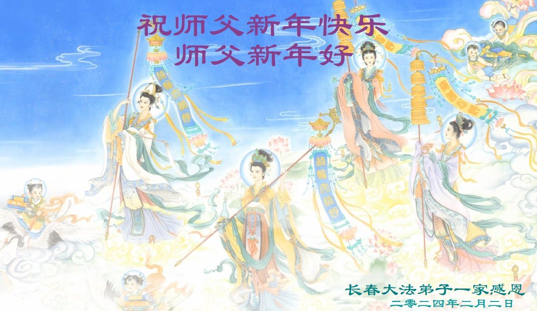 【明慧网二零二四年二月十日】(明慧网记者综合报道)法光普照,万千祥瑞;同心来世,救度众生。全世界的大法弟子铭记久远的誓约,在师尊的慈悲指引下,精進实修,争分夺秒救度着世上的有缘人。中国传统新年来临,全世界的大法弟子衷心感谢李洪志师父的救度之恩,敬拜师尊过年好!