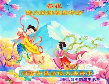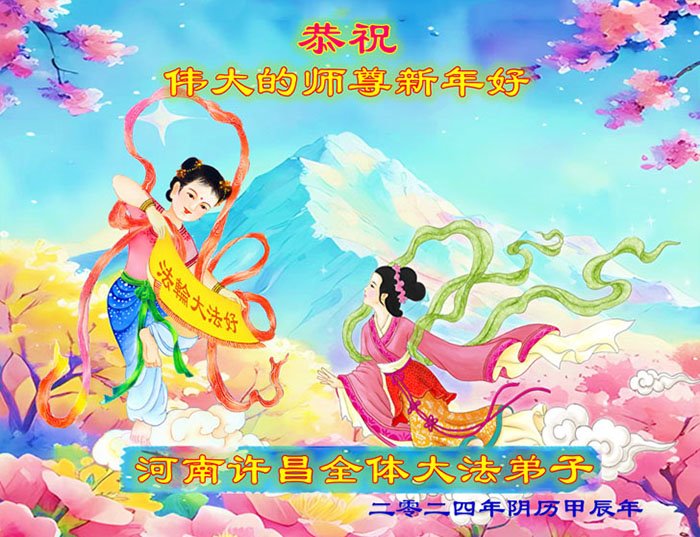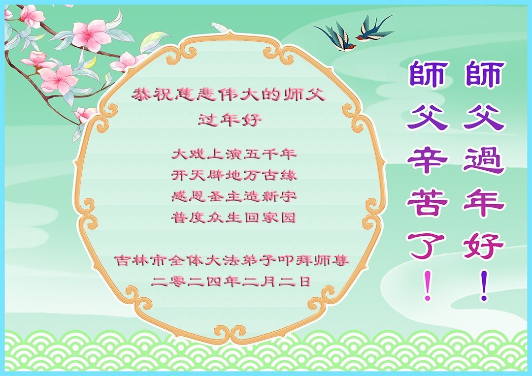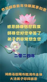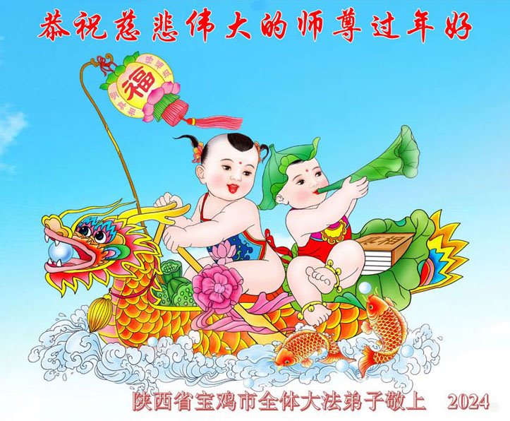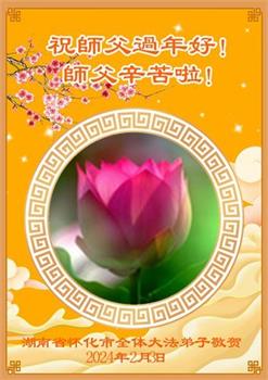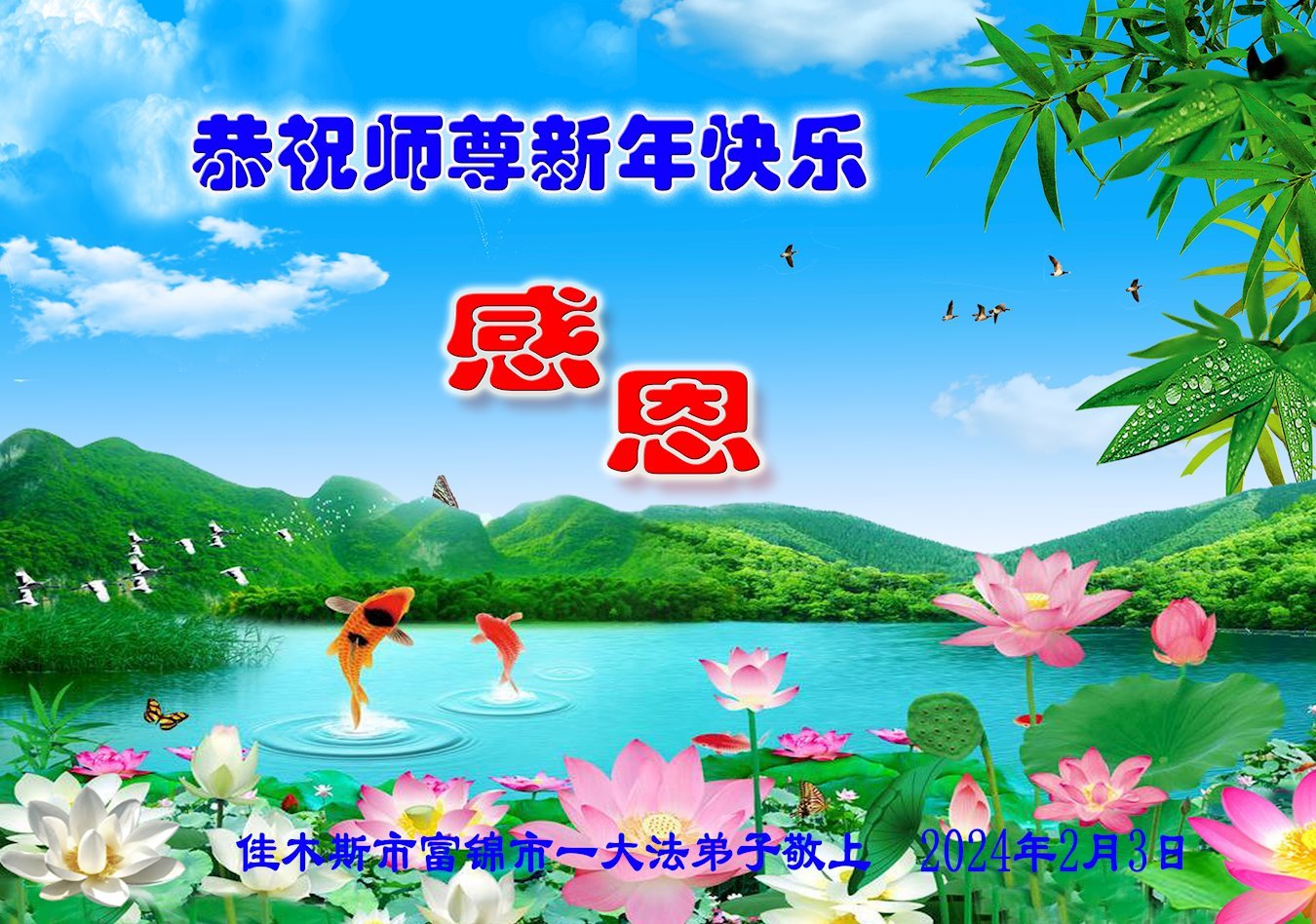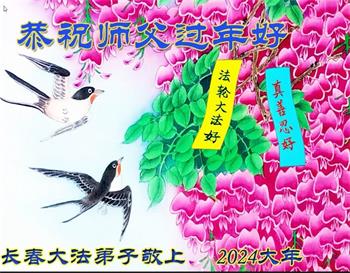 【明慧网二零二四年二月十日】(明慧网记者综合报道)法光普照,万千祥瑞;同心来世,救度众生。全世界的大法弟子铭记久远的誓约,在师尊的慈悲指引下,精進实修,争分夺秒救度着世上的有缘人。中国传统新年来临,全世界的大法弟子衷心感谢李洪志师父的救度之恩,敬拜师尊过年好!