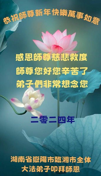 我们中华民族传统的甲辰龙年即将到来,在此我们全家人诚挚恭贺至高无上的李大师新年快乐!万事如意!我们在大法中受益无穷,感谢李大师的无上恩典!合十!