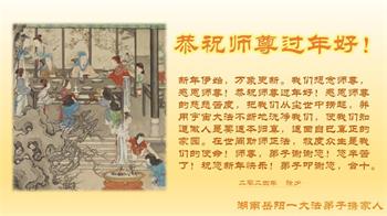 在中国传统节日“大年”即将到来之际,我作为大法弟子的家属给您拜年了:恭祝李大师过年好!