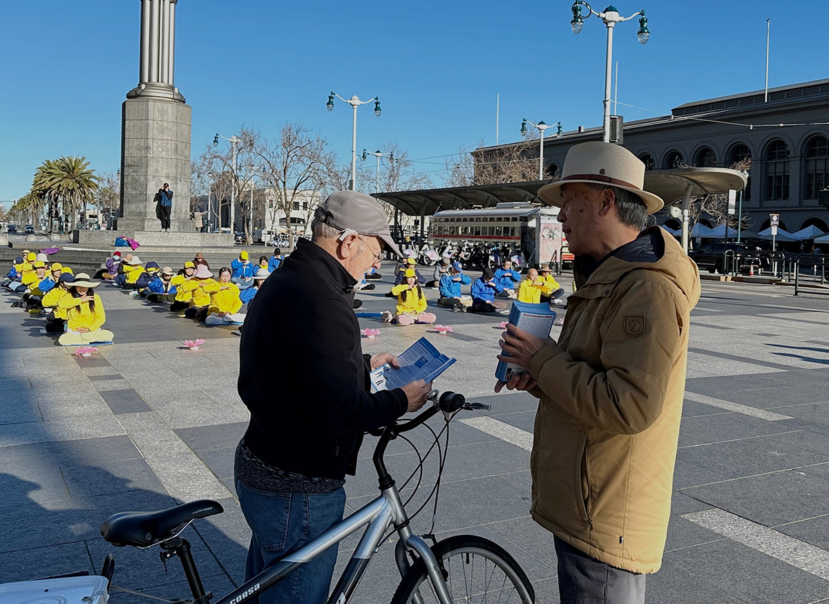 一位名叫比尔(Bill)的先生说,他在旧金山居住四十年了,听说过法轮功,但是所知甚浅。学员给他详细介绍了法轮功是什么,以及中共对修炼真、善、忍的中国法轮功学员进行残酷迫害的真相。他谴责中共的恶行,并表示要在网上多了解法轮功。