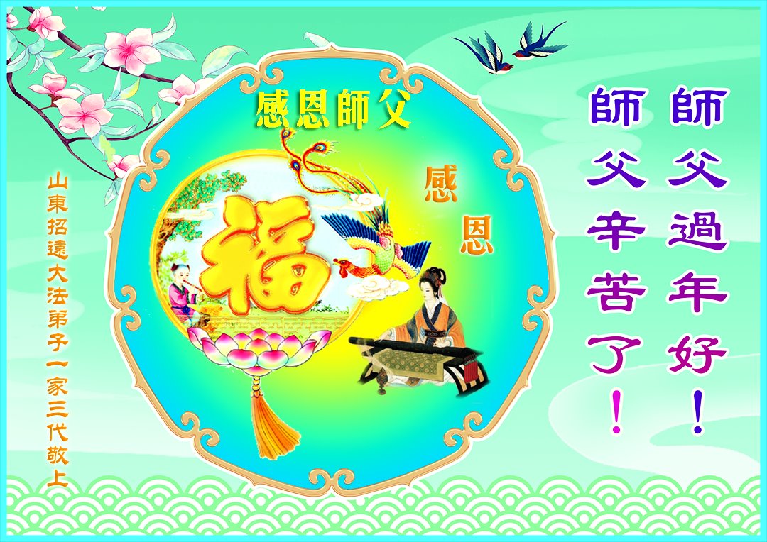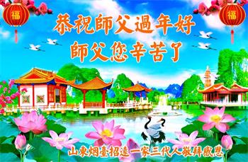 师尊过年好,我们是福建福州三名大法弟子,也是祖孙三代,陆陆续续走进大法修炼已经二十几年了。弟子们携明白真相的家人共同恭祝师父新年好!新的一年,弟子们唯有更精進,做好三件事,同化大法,助师正法,多救人,合十,叩拜师尊!