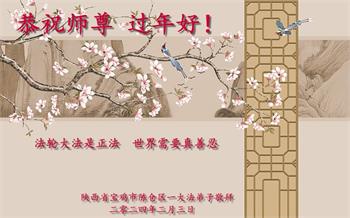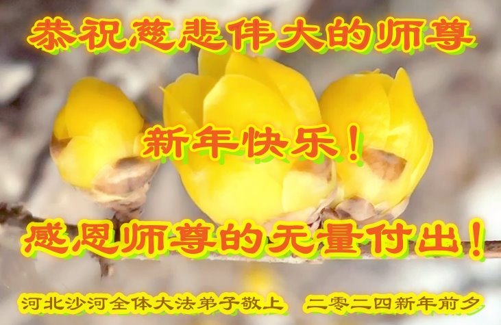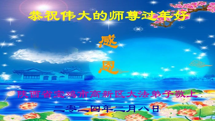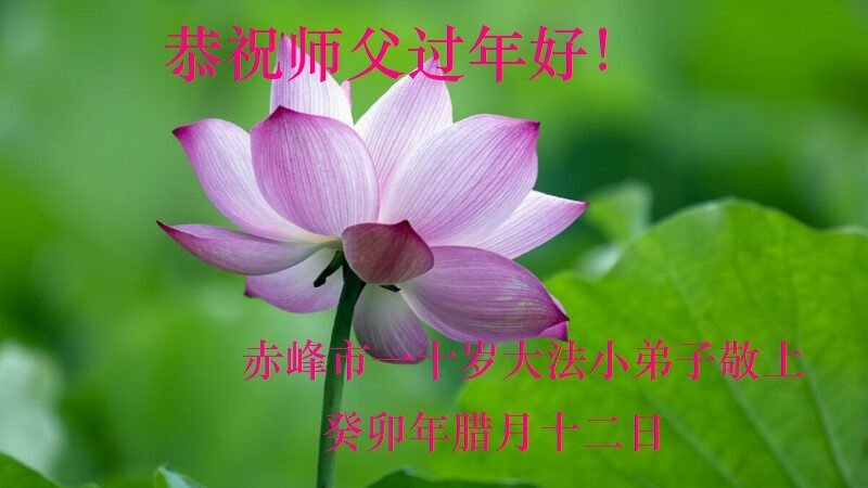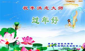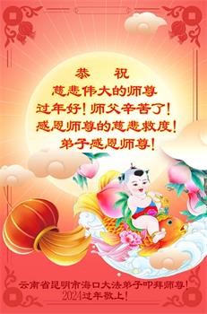 由于我虔诚信大法,使我在大法中受了益。在过年之际,特通过明慧网传送上,向李大师祝贺新年,以表感谢!
