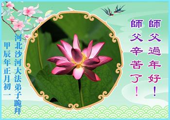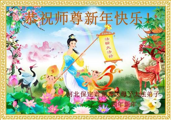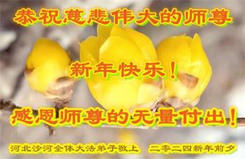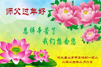 我们是河北省保定地区的一个农村家庭,我代表全家大法弟子的家属恭祝李大师新年快乐!我们经常敬念法轮大法好、真善忍好九字真言,使我们家庭和睦,事业顺利,全家人身体健康,受益匪浅。借新年到来之际,给李大师拜年!