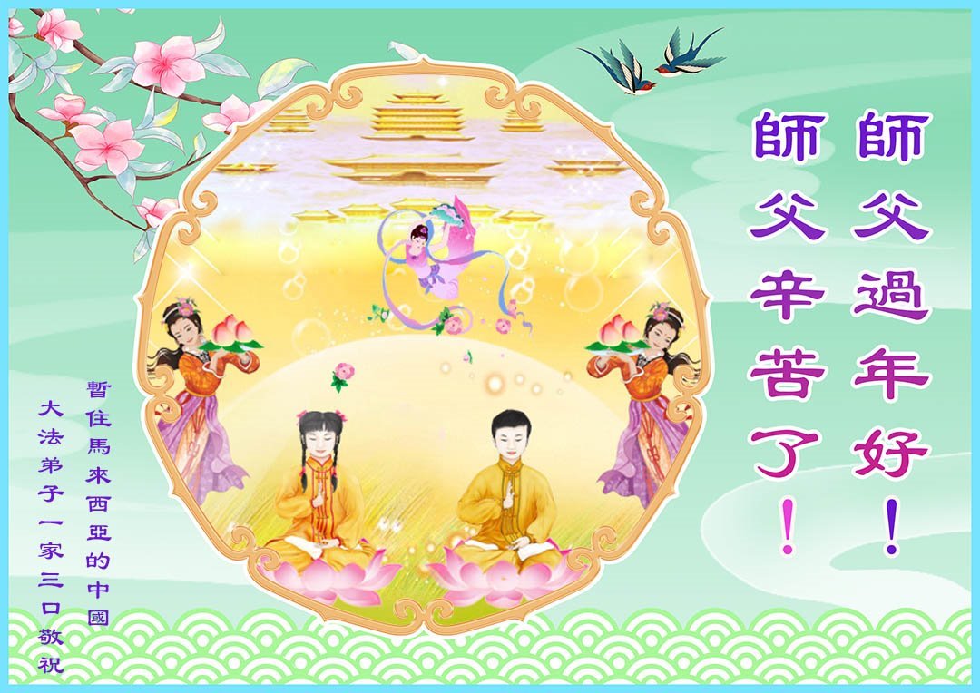 我代表我全家向李大师父问好!我时刻牢记这九字真言:“法轮大法好,真善忍好”。恭祝李大师 在新的一年里快乐!