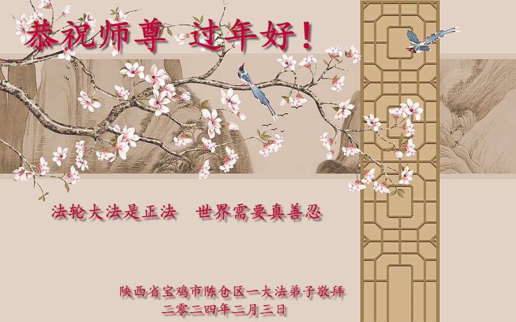 【明慧网二零二四年二月十二日】(明慧网记者综合报道)法轮大法福泽苍生。随着大法真相广传,中国大陆众多百姓明白了法轮大法好,很多人通过亲身经历越来越明晰——法轮大法是济世度人的高德大法。在新春佳节合家团圆的时刻,受益于大法的百姓恭贺李洪志大师过年好!