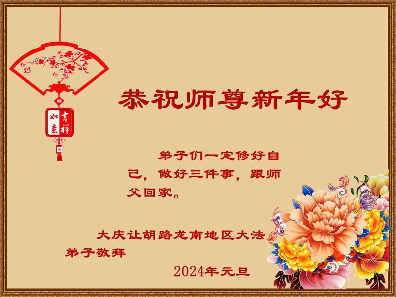 【明慧网二零二四年二月十三日】(明慧网记者综合报道)随着师尊正法洪势的推進,更多的众生在觉醒。尽管走向末路的中共还在迫害法轮功,也挡不住明白真相、有缘的民众入道得法,走上返本归真之路。二零二四年过年期间,华北、东北、华东、中南、西南等中国各地区新入门的法轮大法学员诚敬的给李洪志师尊拜年!感谢师尊救度!