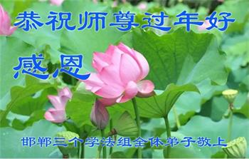 在正月初二发表的一则《中国各地学法小组大法弟子遥拜师父过年好》组合中,河北省邢台市平乡县一学法小组大法弟子在贺词中说:“师父您好!在您的看护下,在风风雨雨中,我们的学法小组稳健的走过了十几个年头。同修们在这个环境中,有争执、有摩擦、有鼓励,有悲伤,也有欢乐,更主要的是一个个提高后的喜悦,无不体现着师父的慈悲和大法的神奇!我们真心希望,在这个邪恶迫害的环境下,我们的这个学法小组会以更加精進的修炼状态,做好自己该做的三件事,迎接师父回国!”