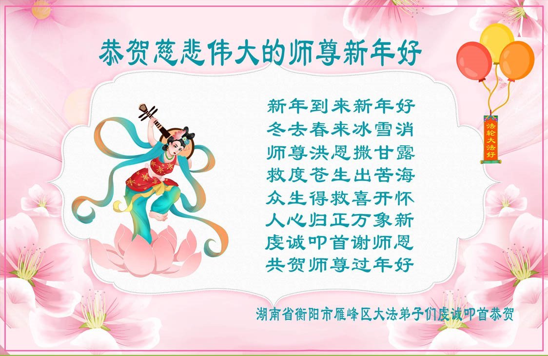 恭祝尊敬的师父新年快乐!希望我们能够提高心性和升华,帮助师父救度众生。