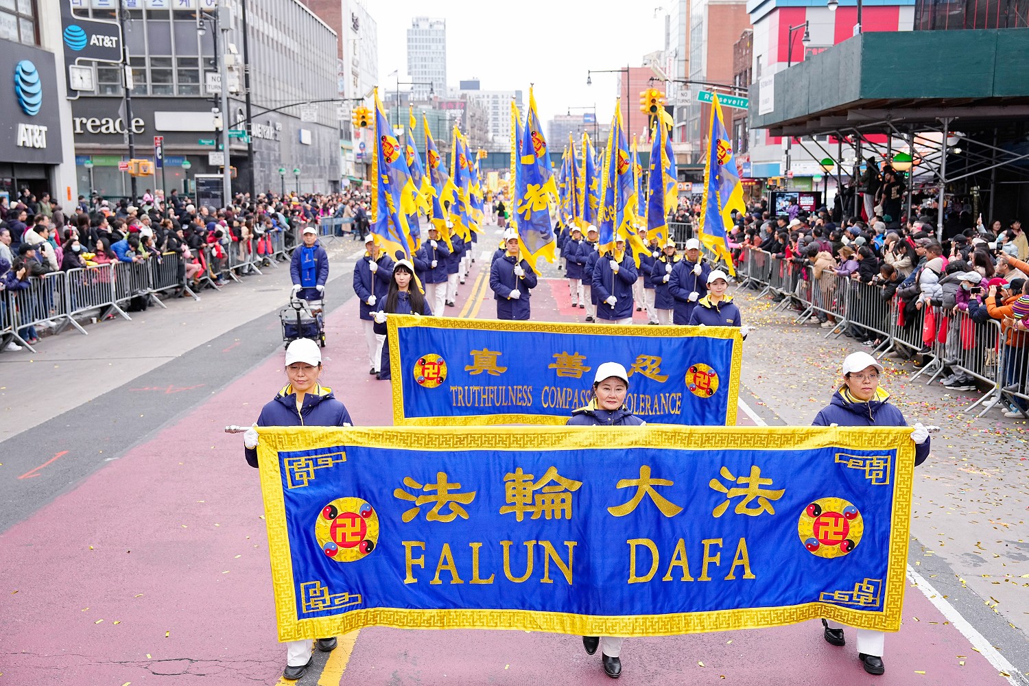 老移民:法轮功游行队伍最漂亮 “法轮大法好!”