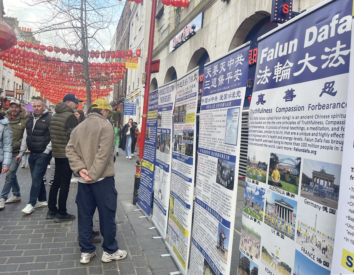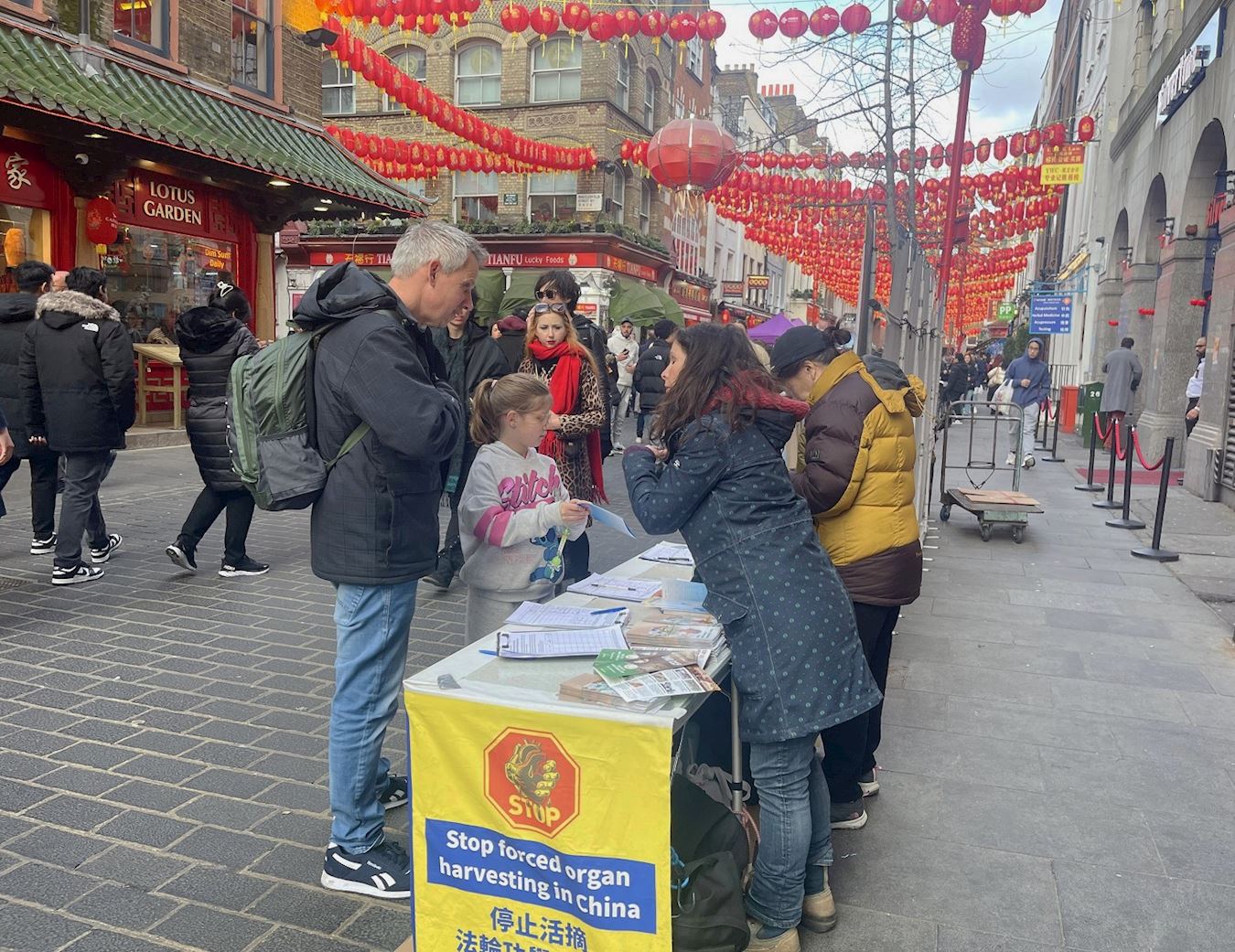 ![]() 图1:二零二四年二月二十四日元宵佳节,法轮功学员在英国伦敦唐人街弘法讲真相,吸引人们驻足观看,有的主动与学员交谈,询问更多关于法轮功的讯息。 |