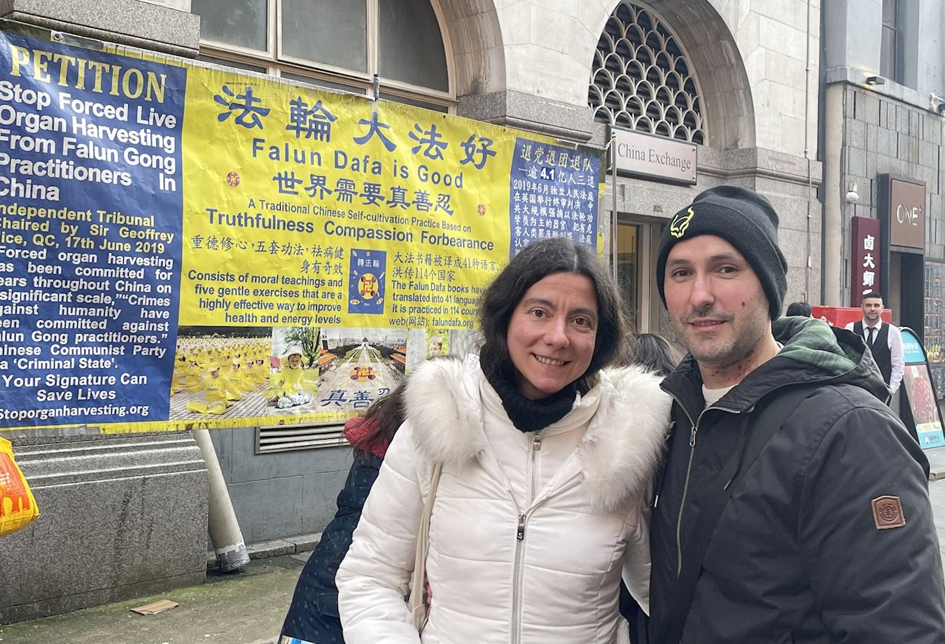 曾在北京新闻媒体工作的张女士,来到法轮功真相点,和学员交谈过程中,她告诉学员,在国内她深知中共管制的媒体造假说谎是常态,明白象“天安门自焚”这样的假新闻是如何炮制出来的。她带着儿子、父亲和母亲到唐人街过元宵节,十二岁的儿子刚到英国留学。他们想了解法轮功的情况。