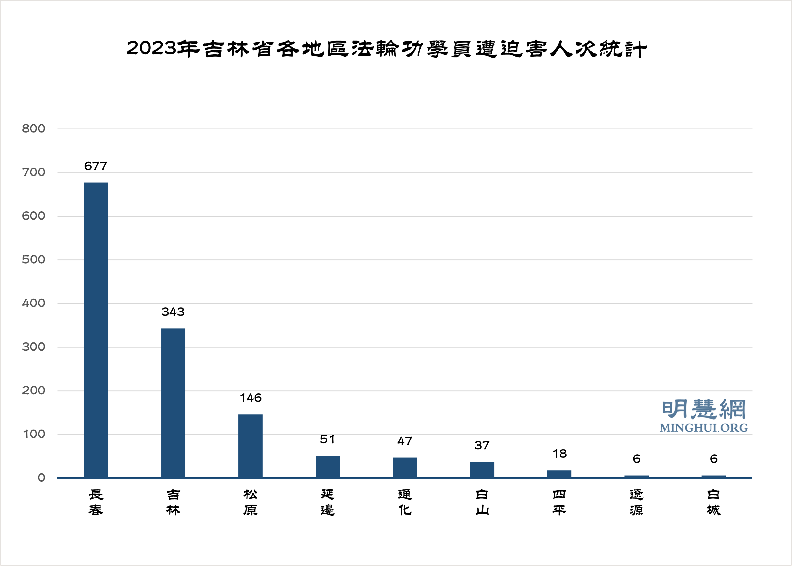 ![]() 图1:2023年吉林省各地区法轮功学员遭迫害人次统计 |