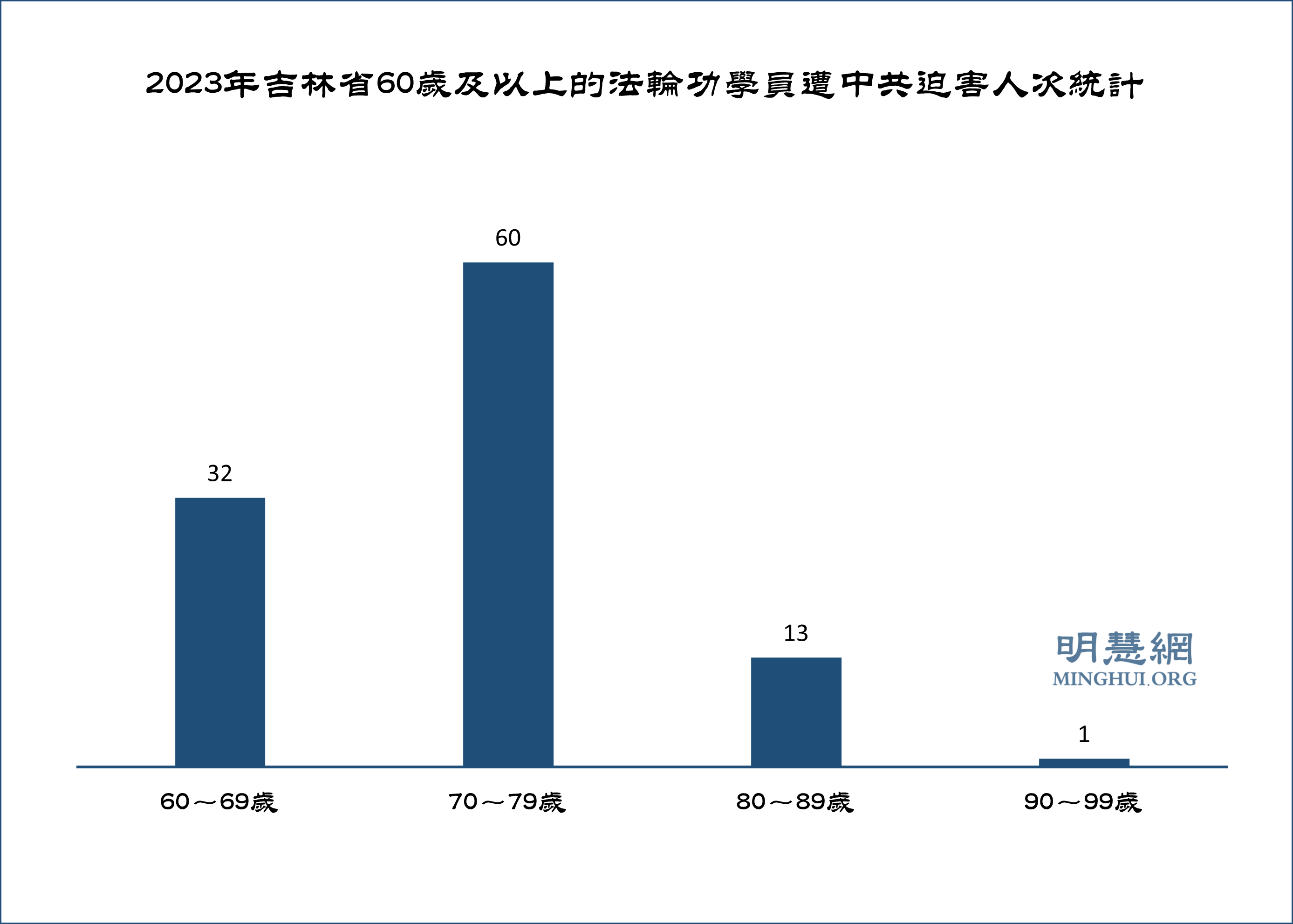 ![]() 图3:2023年吉林省60岁及以上的法轮功学员遭中共迫害人次统计 |