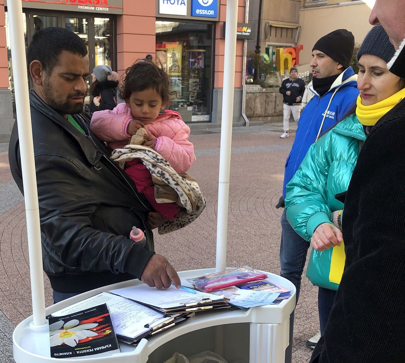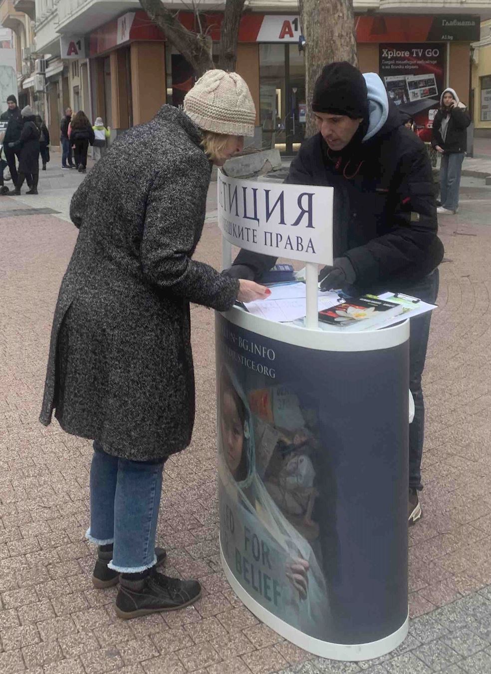 二零二四年一月二十七日,法轮功学员在普罗夫迪夫的同一地点再次举办信息日活动,尽管当天狂风大作,但并没有阻止学员的脚步,他们收起横幅,用征签的方式讲述着真相。