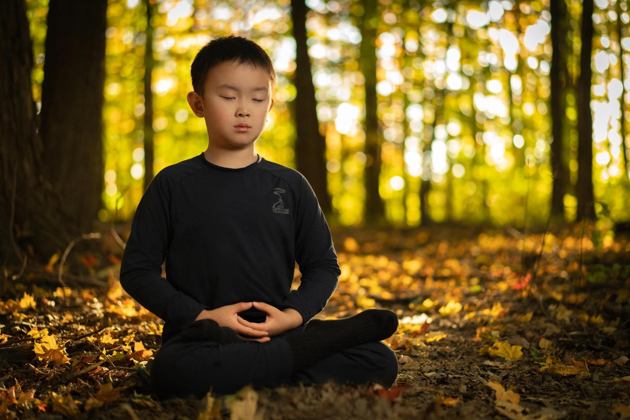 ![]() 图4:七岁半的宁子翔在打坐,他表示有时闭上眼睛会看到彩色的光。 |