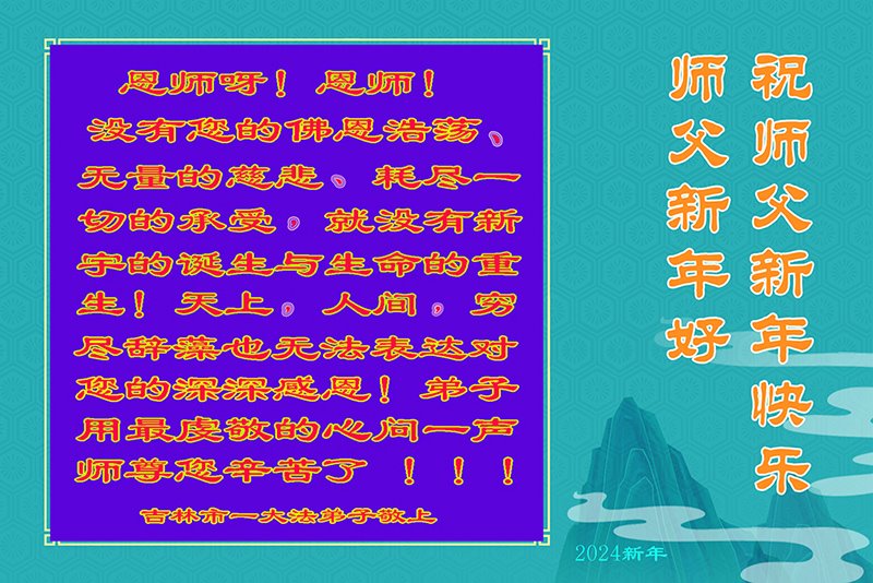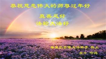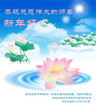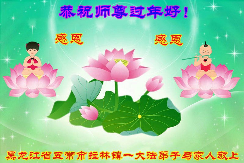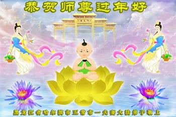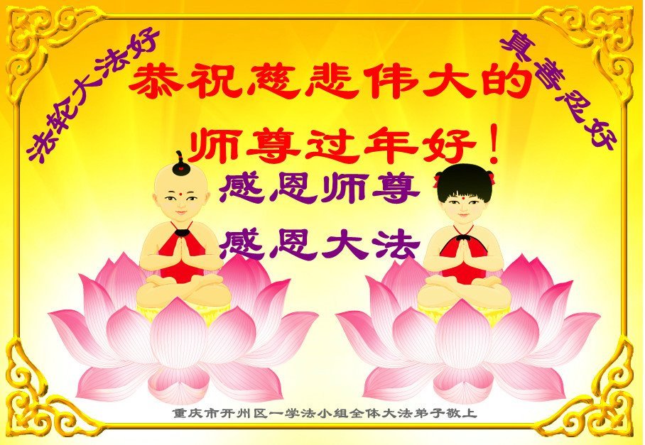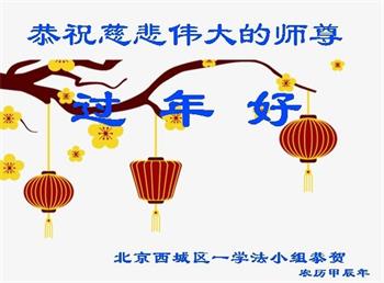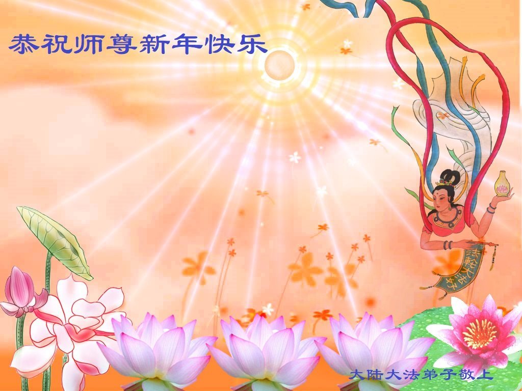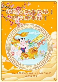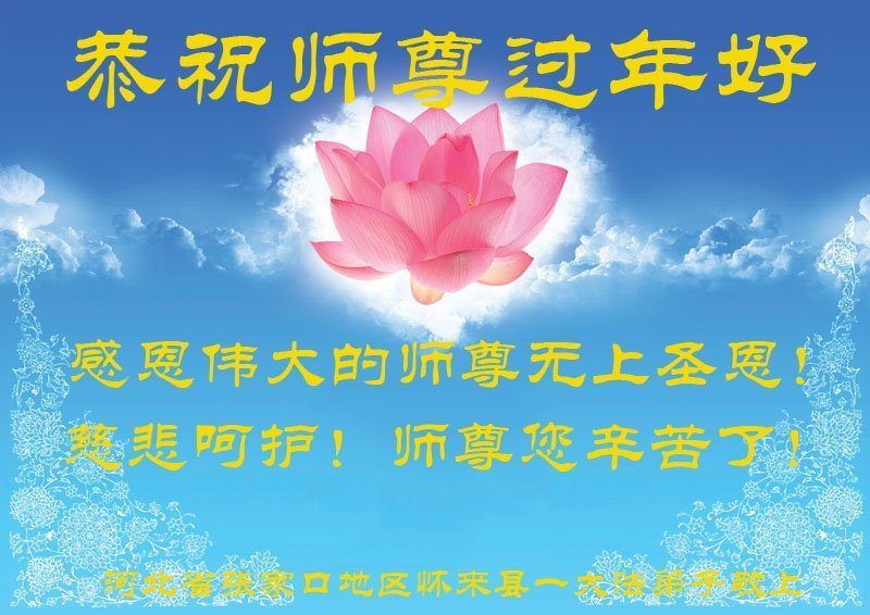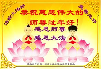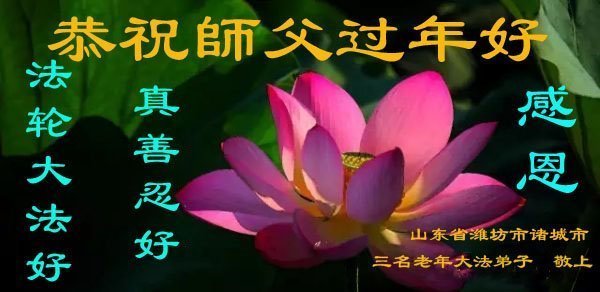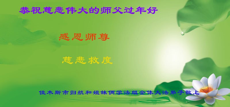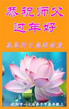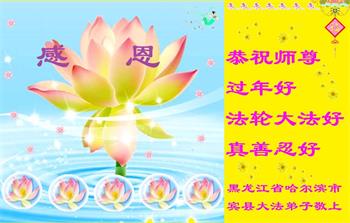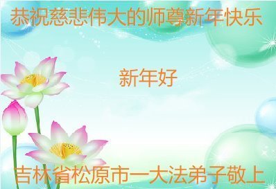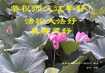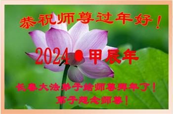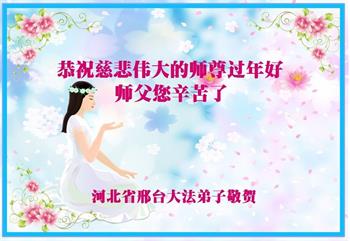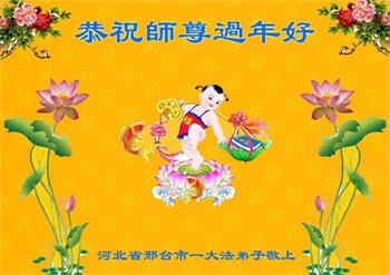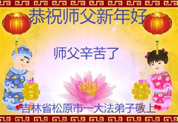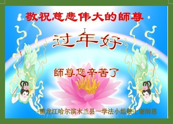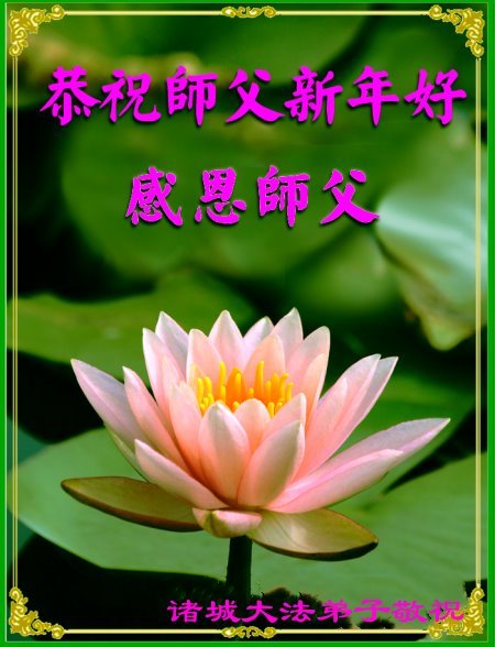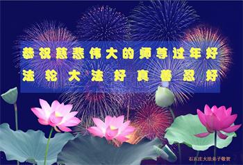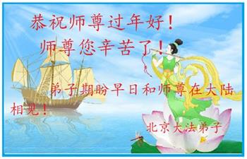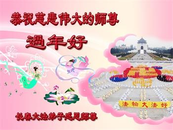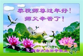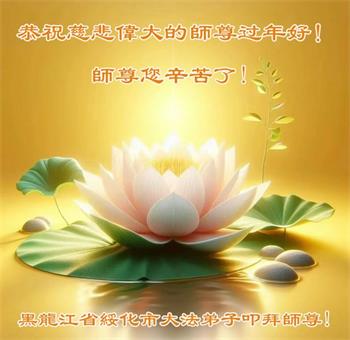 中国传统的新春佳节即将到来,来自中国各地、各行各业的大法弟子们想念远在大洋彼岸的慈悲伟大的李洪志师父,叩拜师尊过年好!大法弟子们表示,一定要时时用师父的法衡量自己,不断的同化大法,修成新宇宙的正觉。