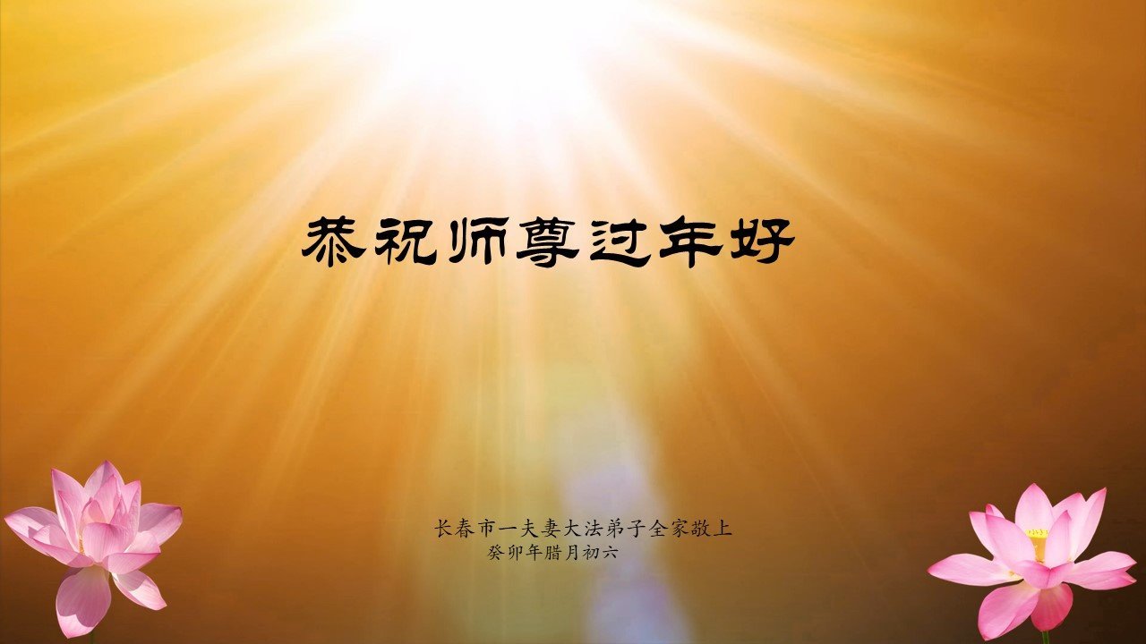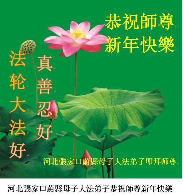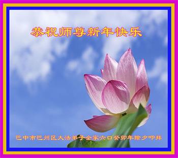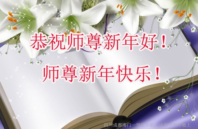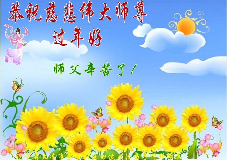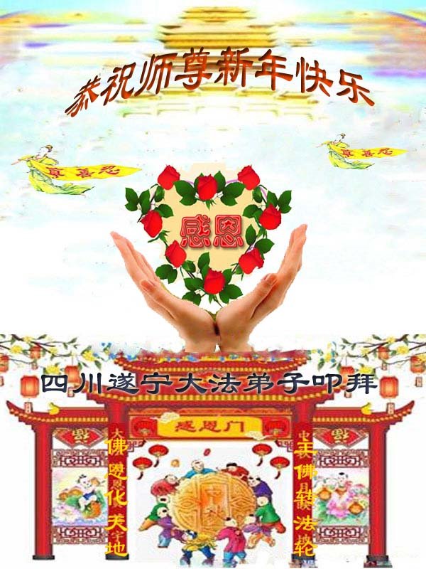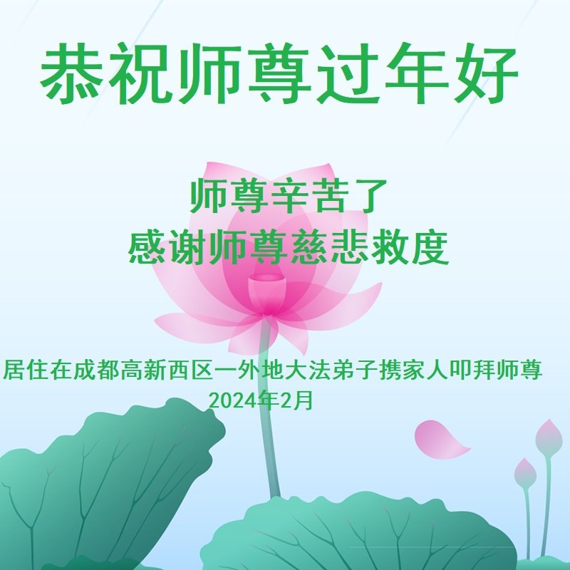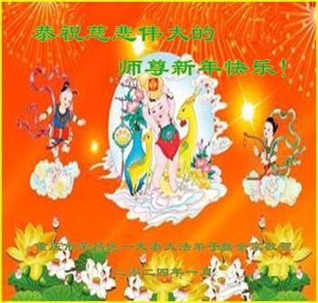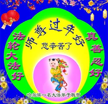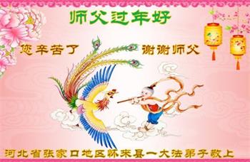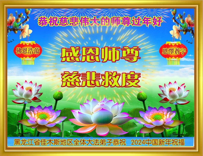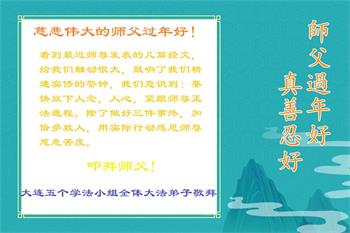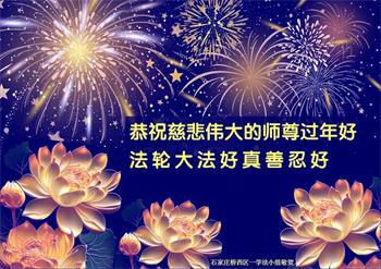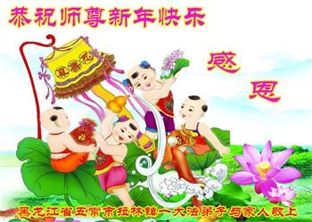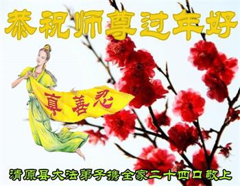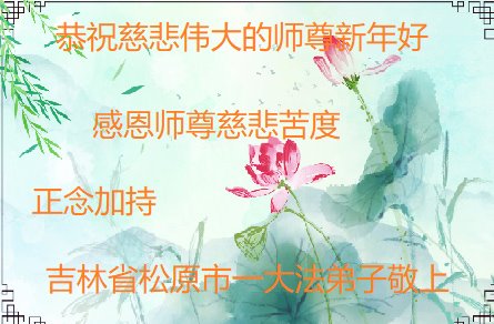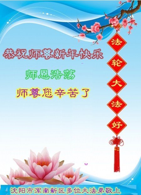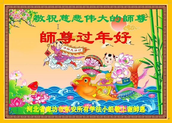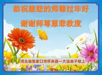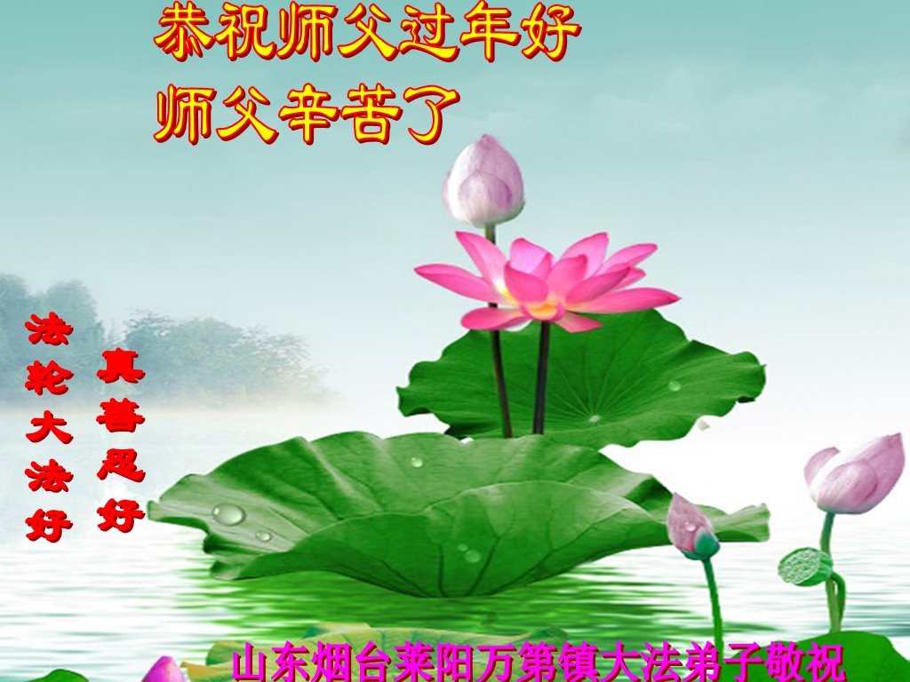 中国传统的新春佳节即将到来,来自中国各地、各行各业的大法弟子们想念远在大洋彼岸的慈悲伟大的李洪志师父,叩拜师尊过年好!大法弟子们表示,一定要时时用师父的法衡量自己,不断的同化大法,修成新宇宙的正觉。