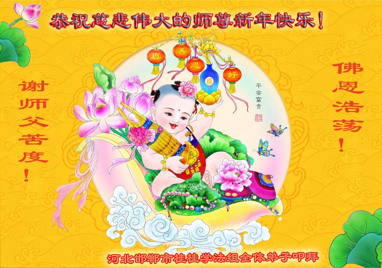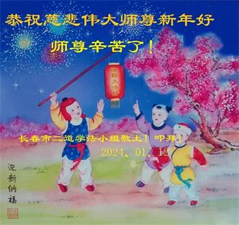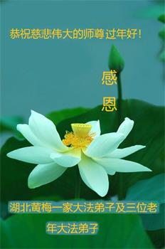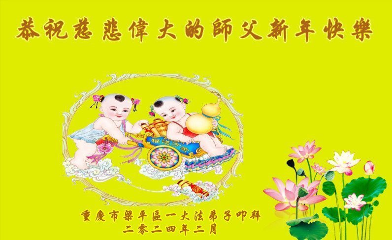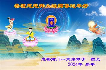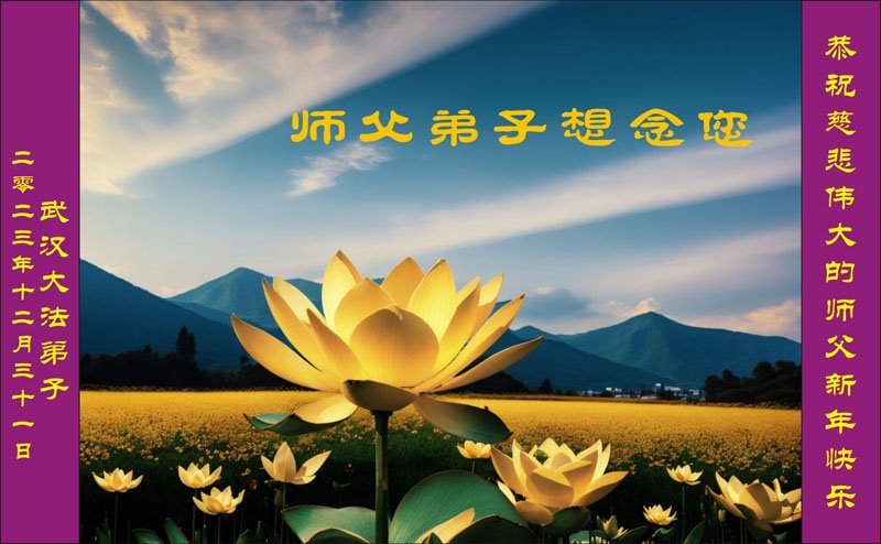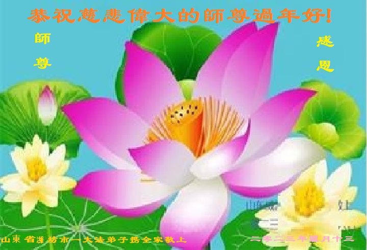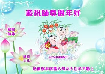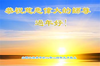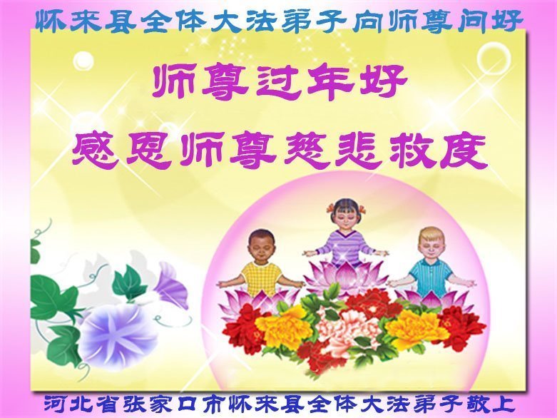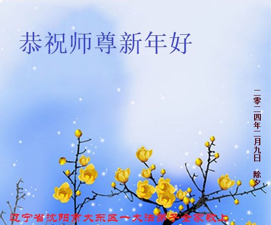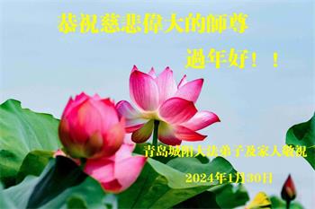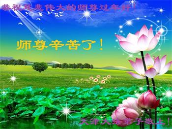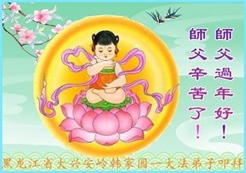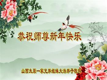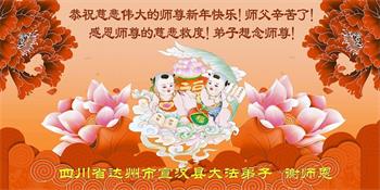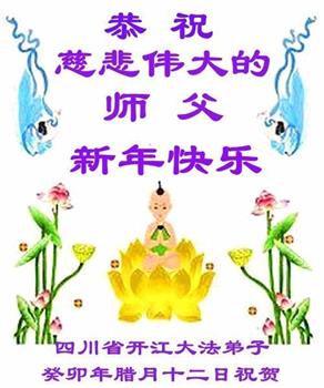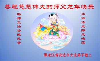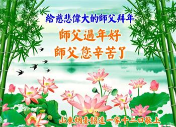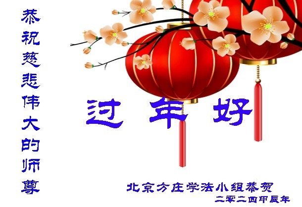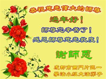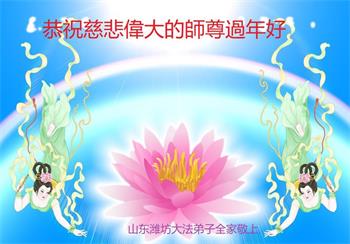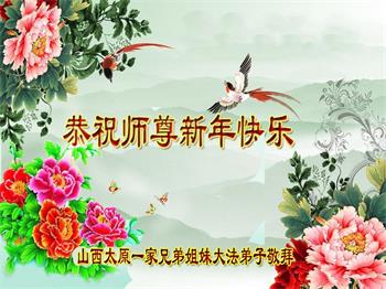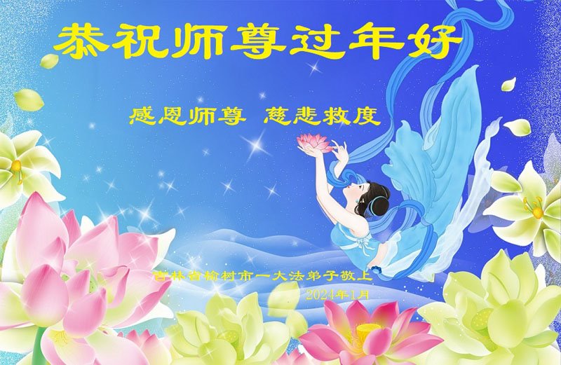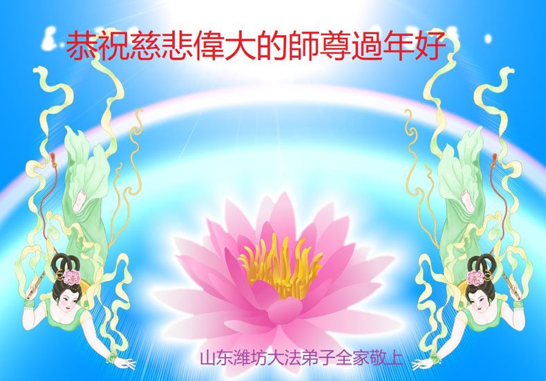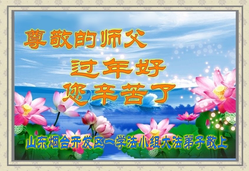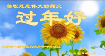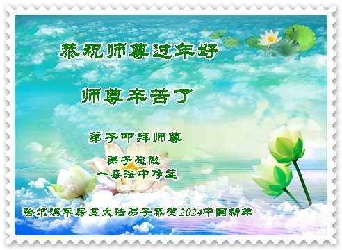 中国传统的新春佳节即将到来,来自中国各地、各行各业的大法弟子们想念远在大洋彼岸的慈悲伟大的李洪志师父,叩拜师尊过年好!大法弟子们表示,一定要时时用师父的法衡量自己,不断的同化大法,修成新宇宙的正觉。