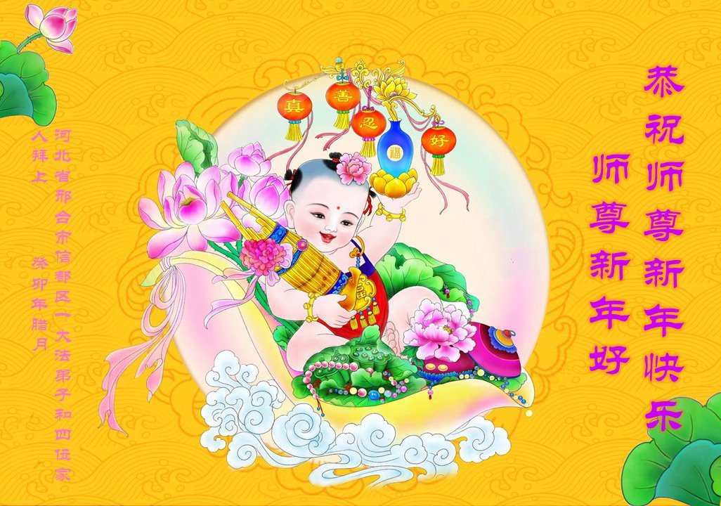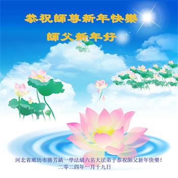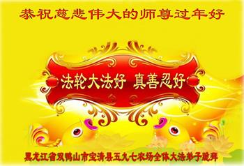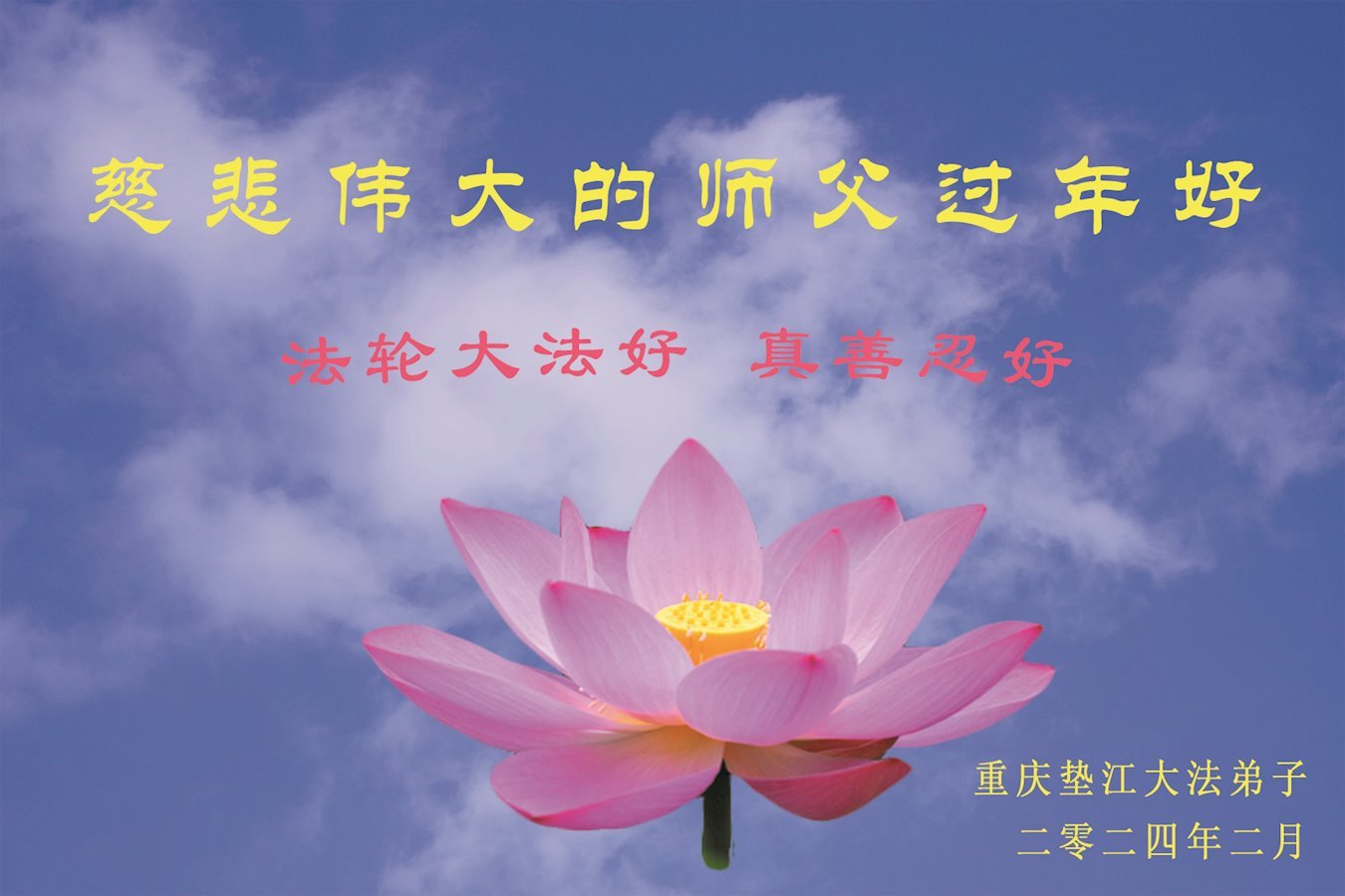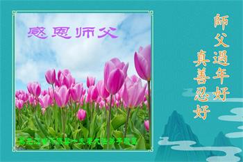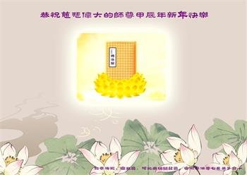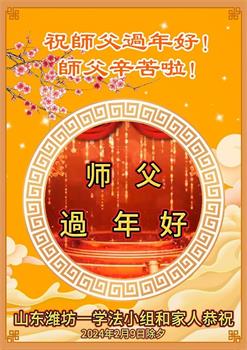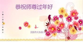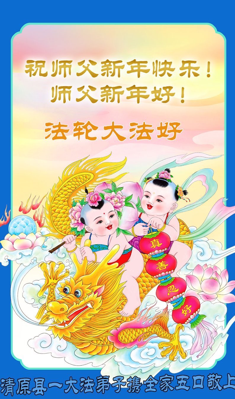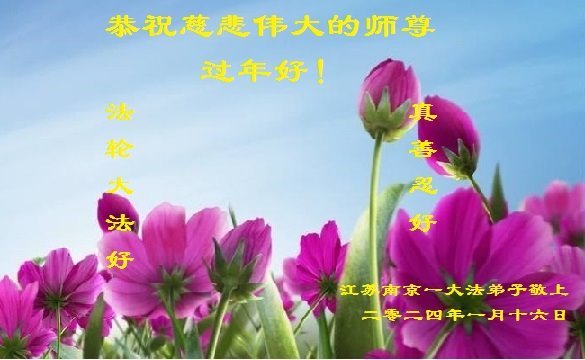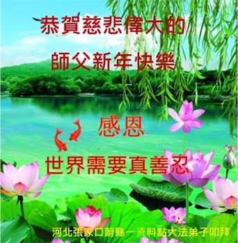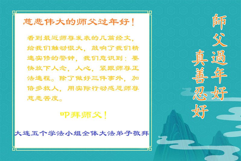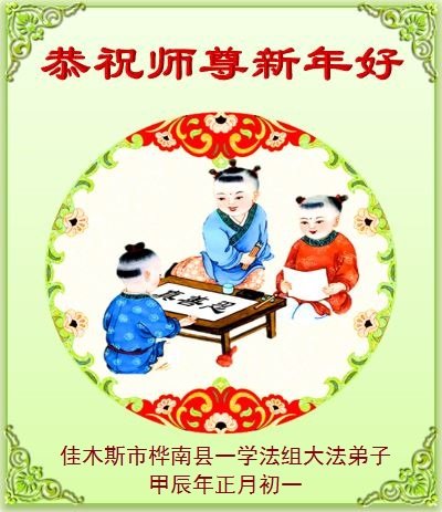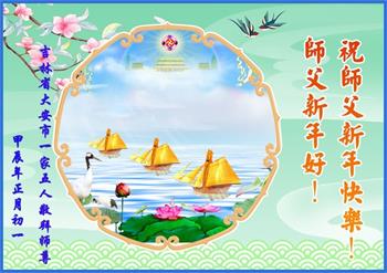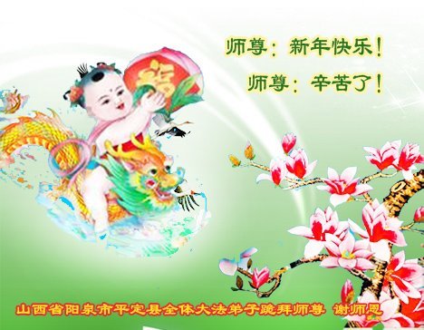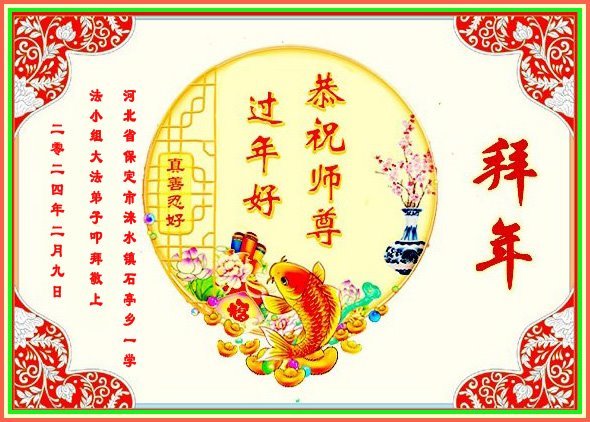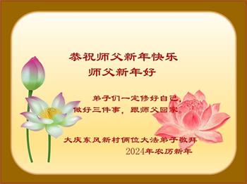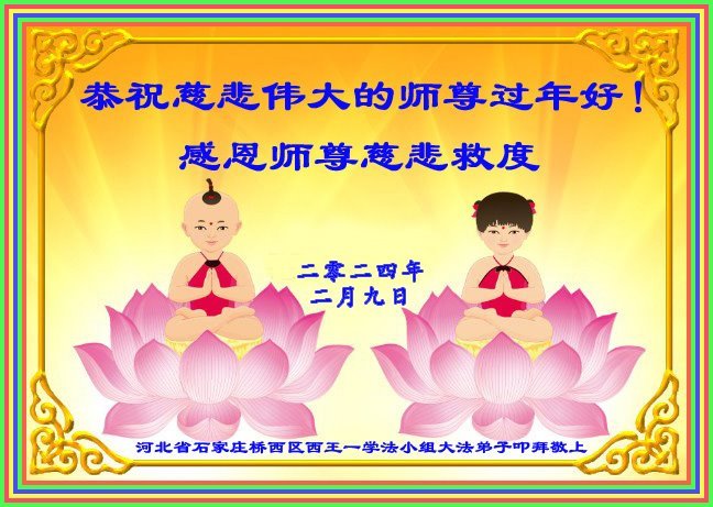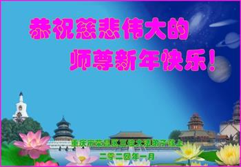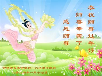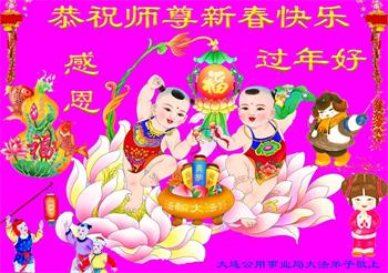 中国传统的新春佳节即将到来,来自中国各地、各行各业的大法弟子们想念远在大洋彼岸的慈悲伟大的李洪志师父,叩拜师尊过年好!大法弟子们表示,一定要时时用师父的法衡量自己,不断的同化大法,修成新宇宙的正觉。