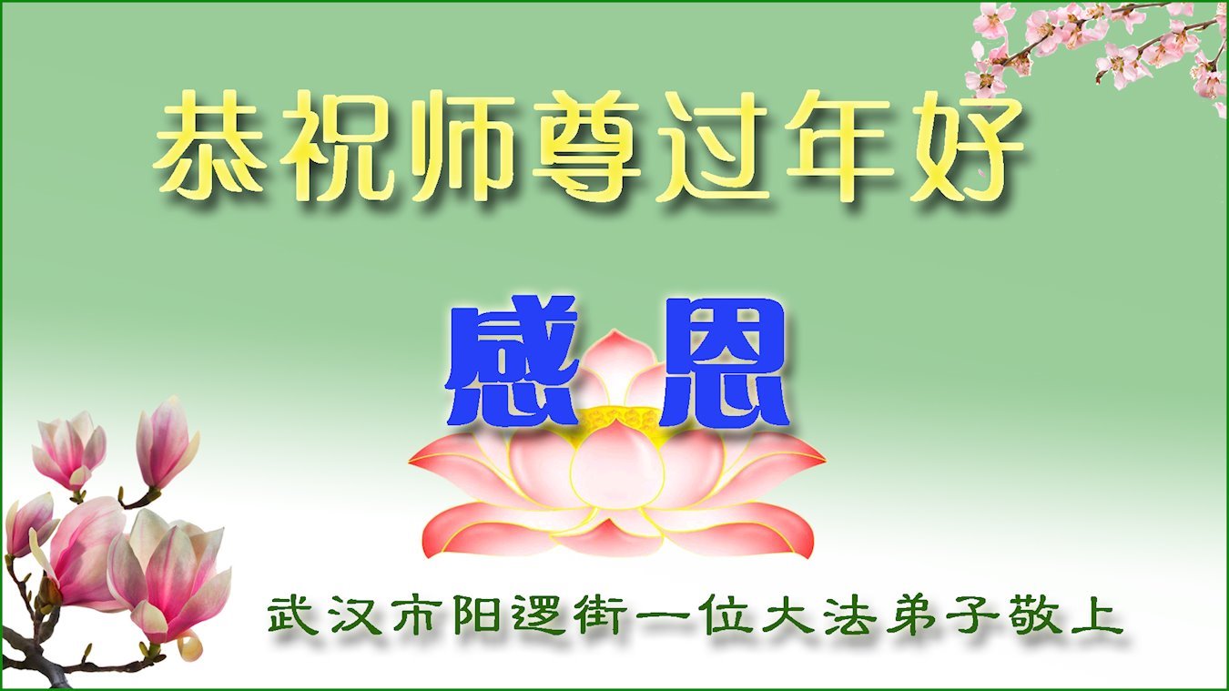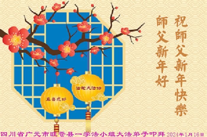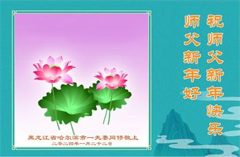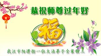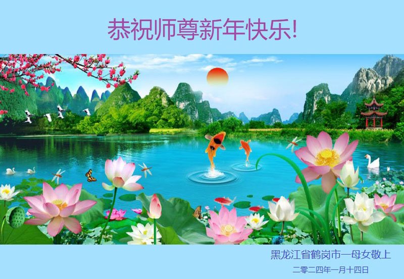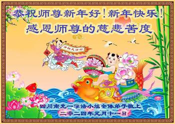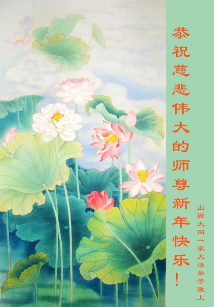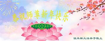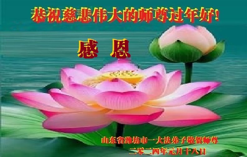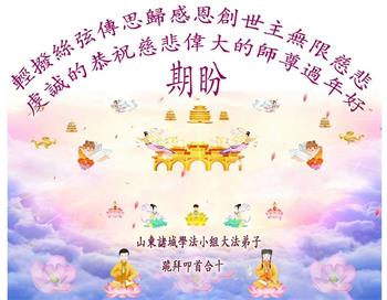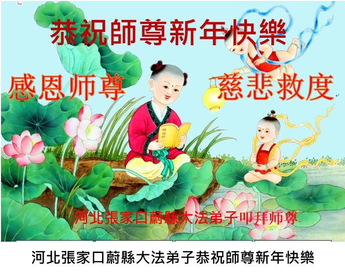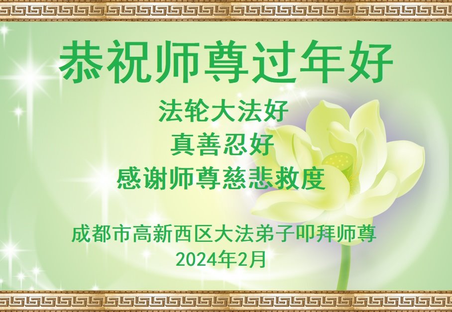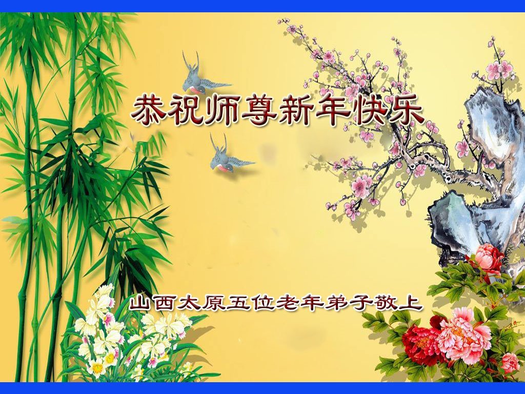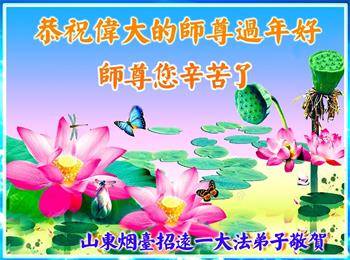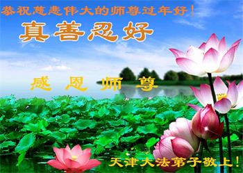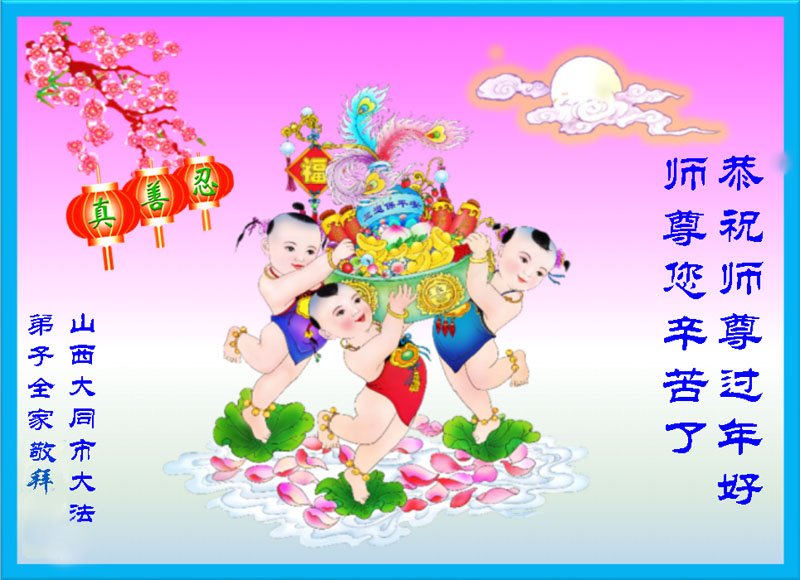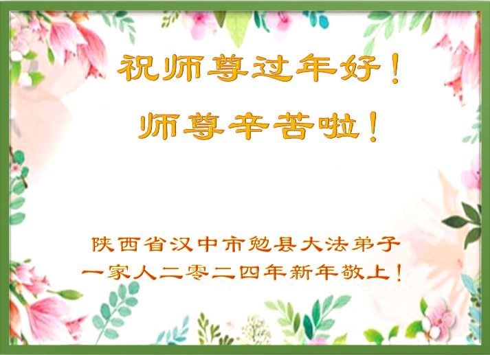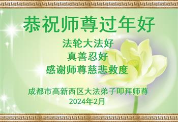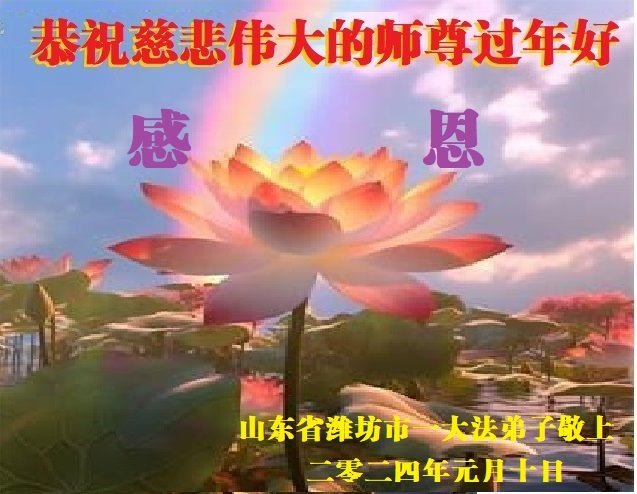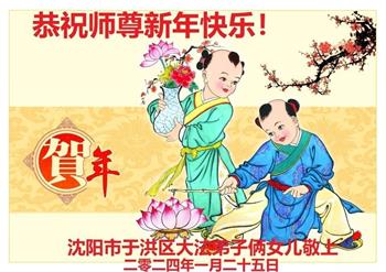 中国传统的新春佳节即将到来,来自中国各地、各行各业的大法弟子们想念远在大洋彼岸的慈悲伟大的李洪志师父,叩拜师尊过年好!大法弟子们表示,一定要时时用师父的法衡量自己,不断的同化大法,修成新宇宙的正觉。