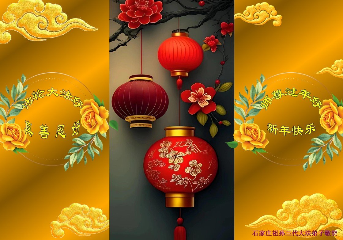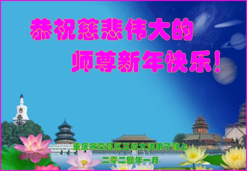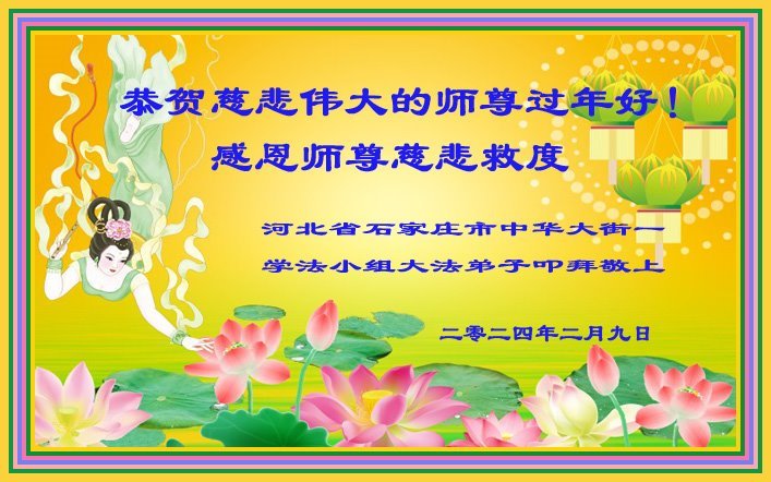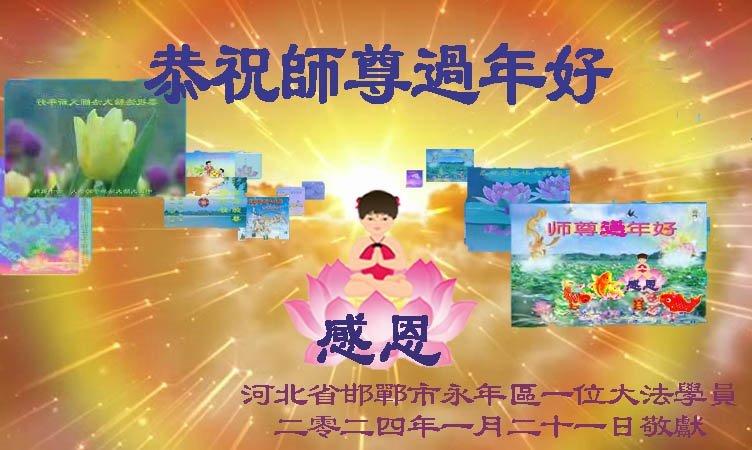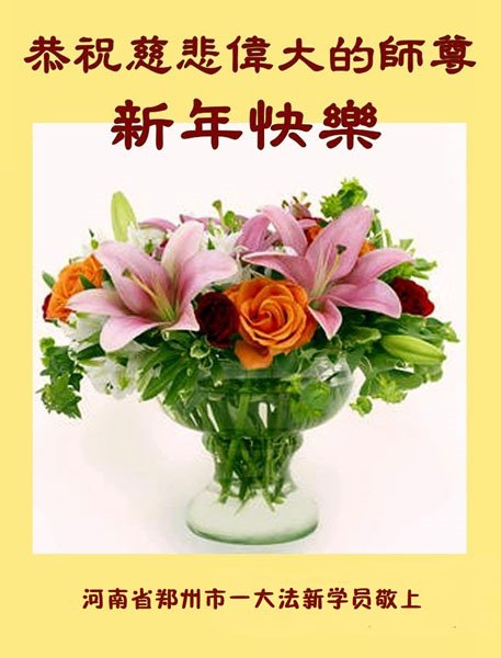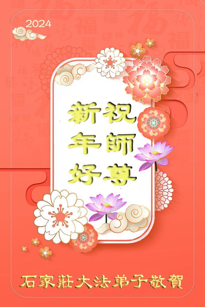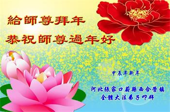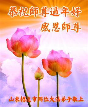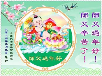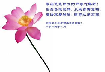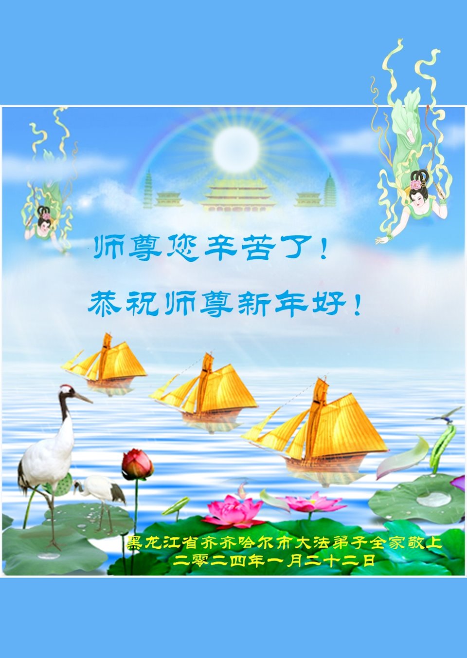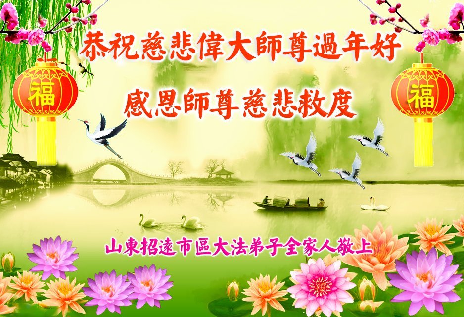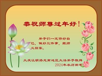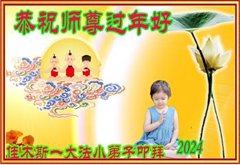 中国传统的新春佳节即将到来,来自中国各地、各行各业的大法弟子们想念远在大洋彼岸的慈悲伟大的李洪志师父,叩拜师尊过年好!大法弟子们表示,一定要时时用师父的法衡量自己,不断的同化大法,修成新宇宙的正觉。