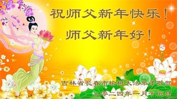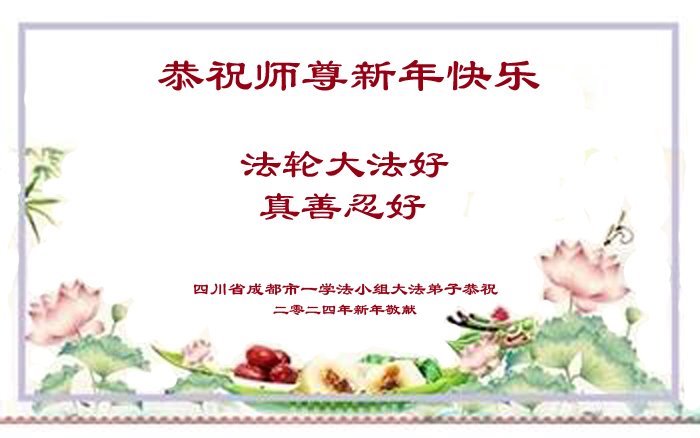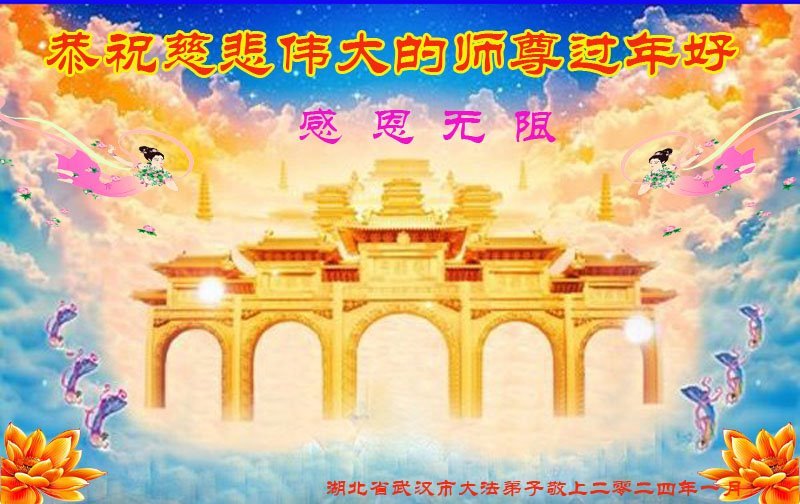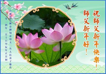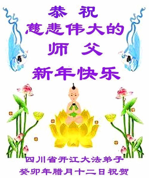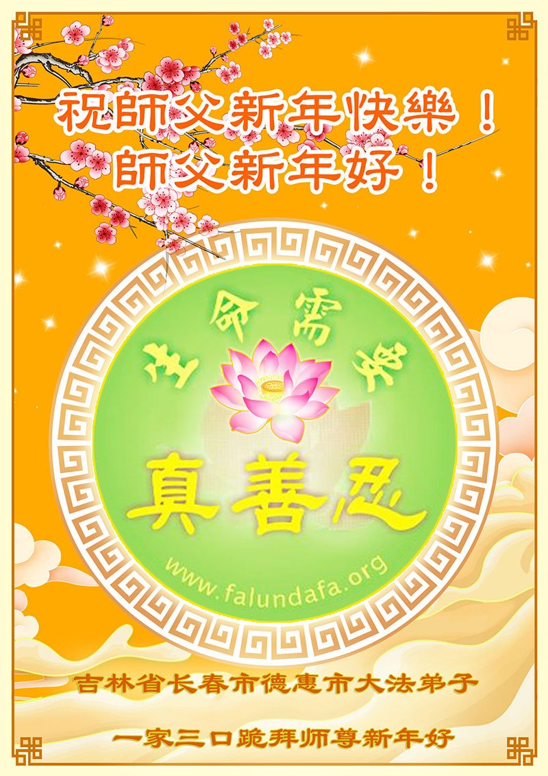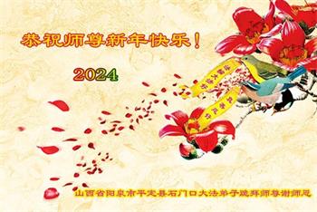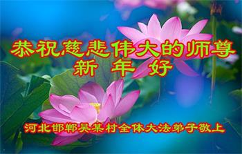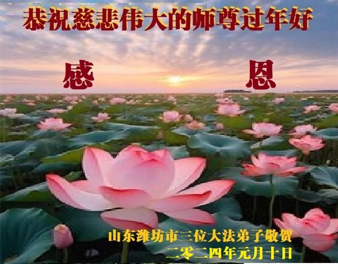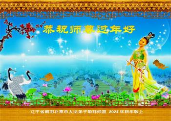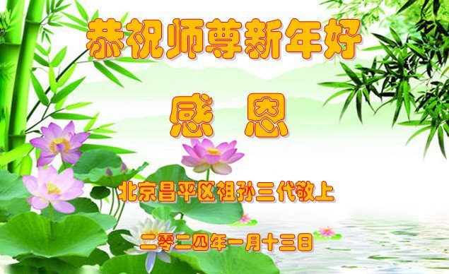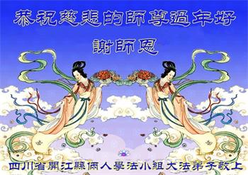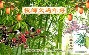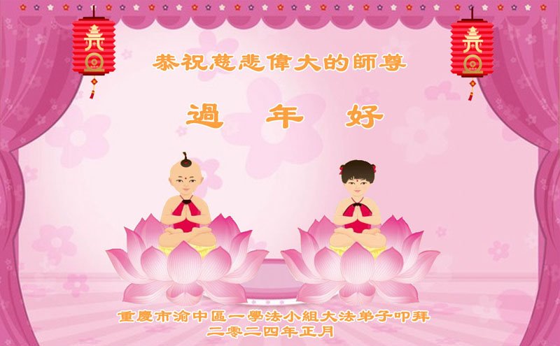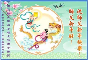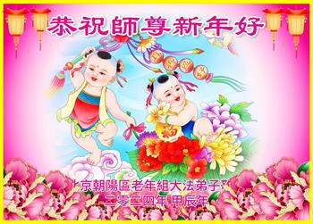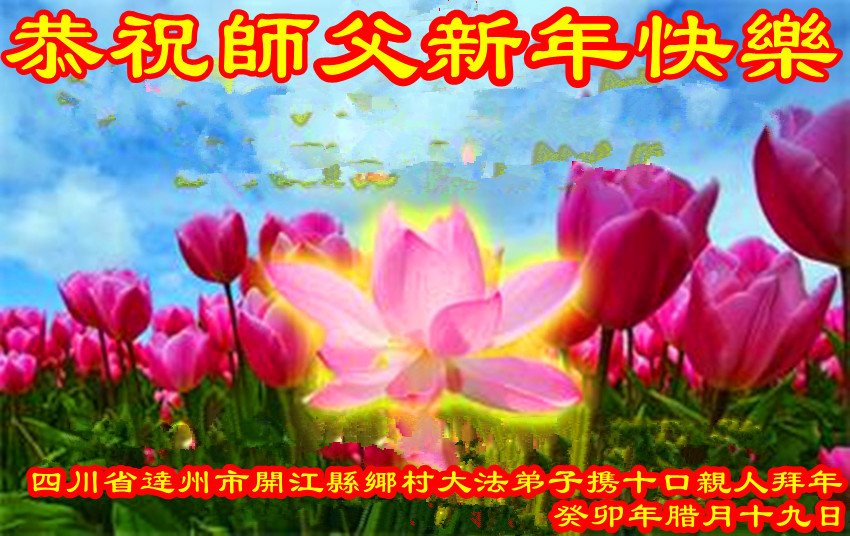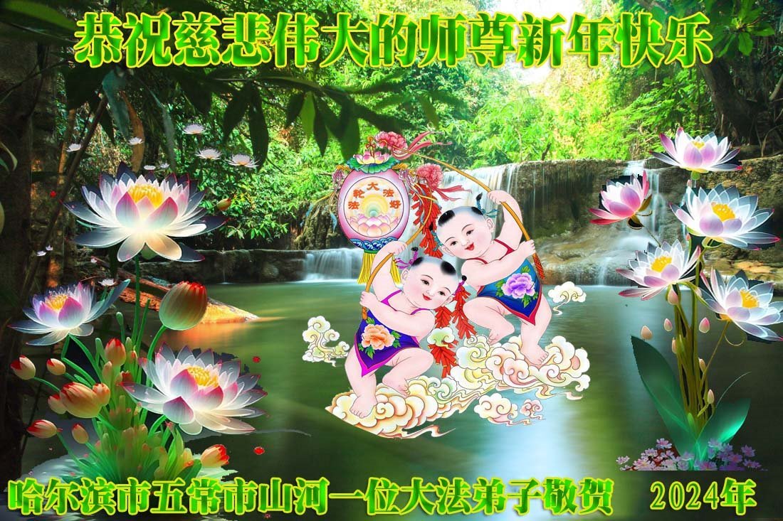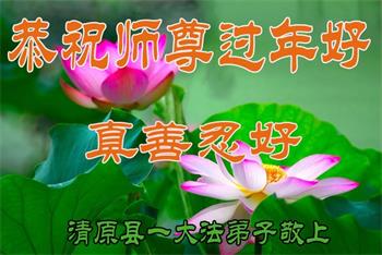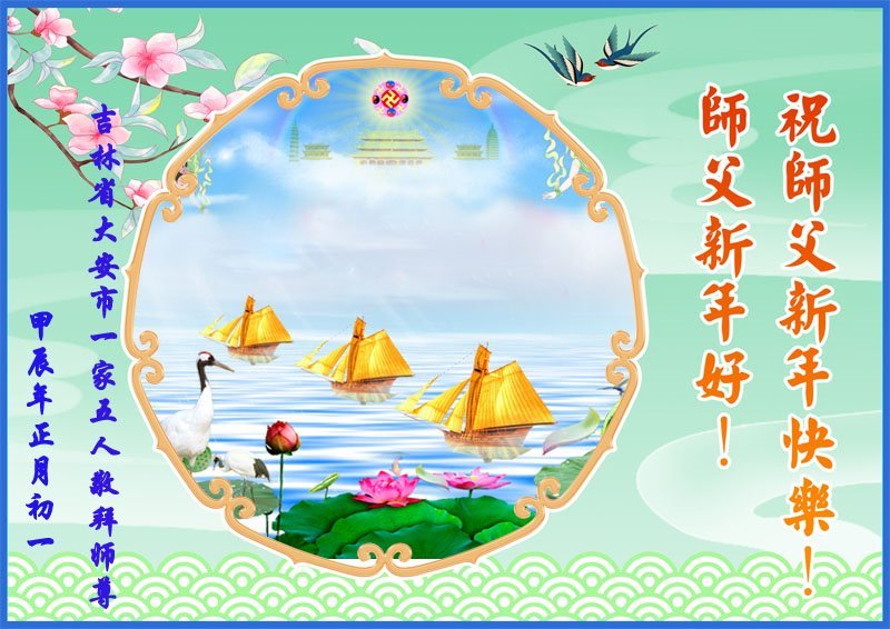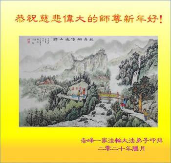 中国传统的新春佳节即将到来,来自中国各地、各行各业的大法弟子们想念远在大洋彼岸的慈悲伟大的李洪志师父,叩拜师尊过年好!大法弟子们表示,一定要时时用师父的法衡量自己,不断的同化大法,修成新宇宙的正觉。