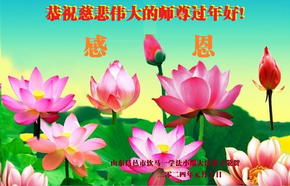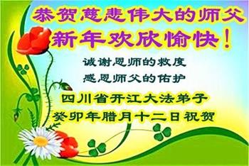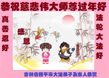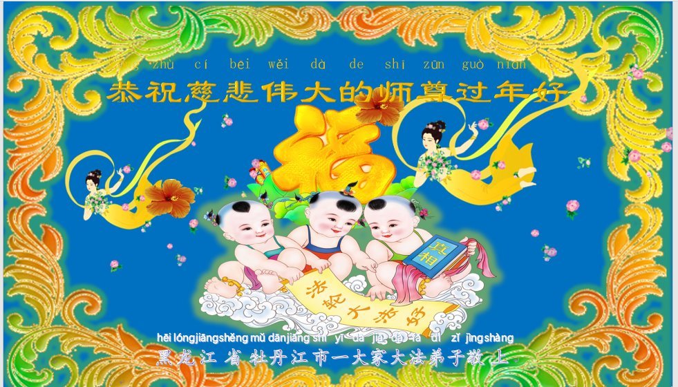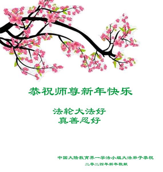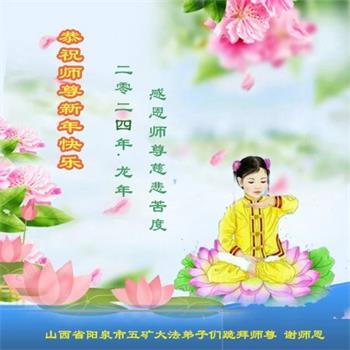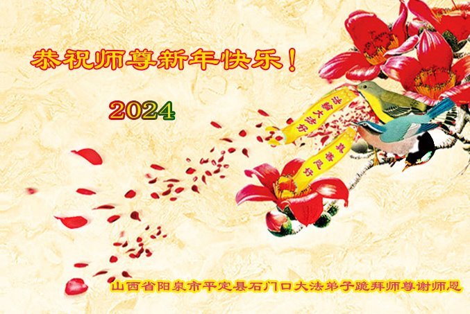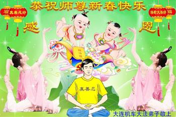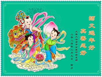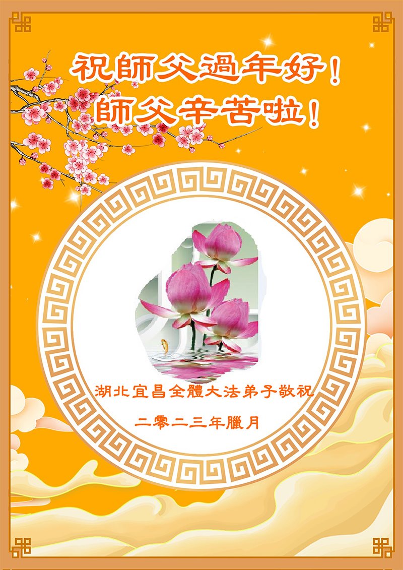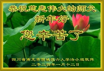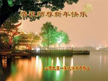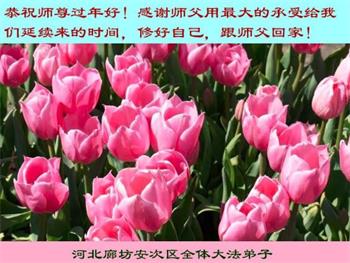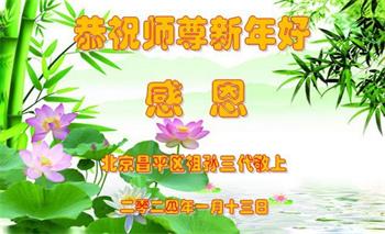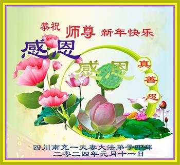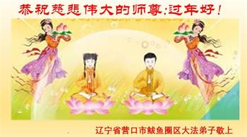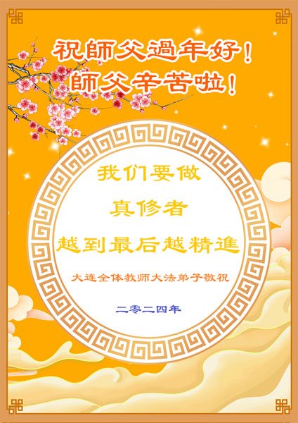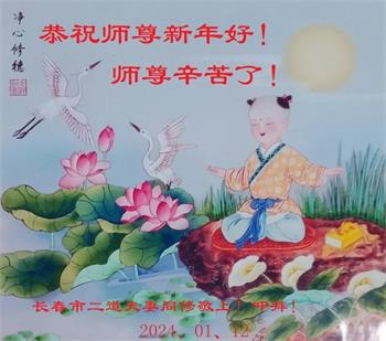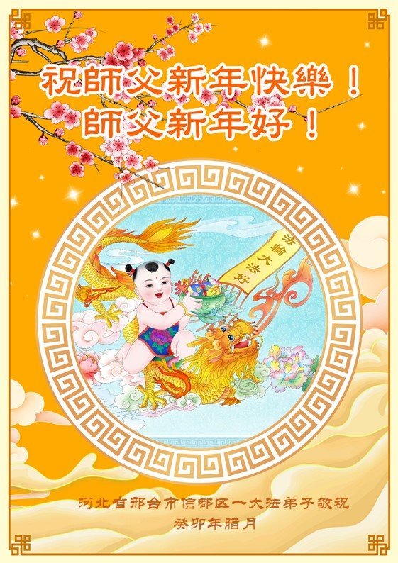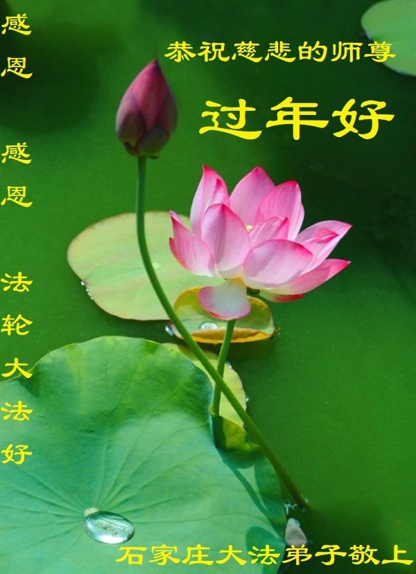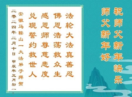 中国传统的新春佳节即将到来,来自中国各地、各行各业的大法弟子们想念远在大洋彼岸的慈悲伟大的李洪志师父,叩拜师尊过年好!大法弟子们表示,一定要时时用师父的法衡量自己,不断的同化大法,修成新宇宙的正觉。