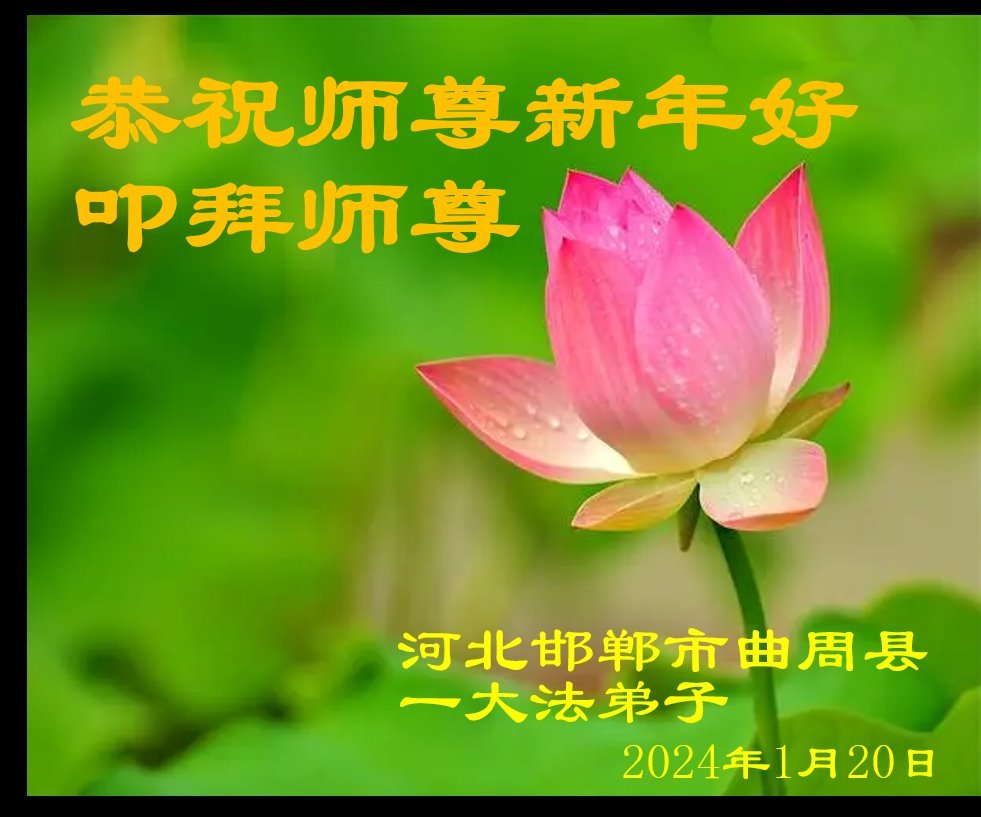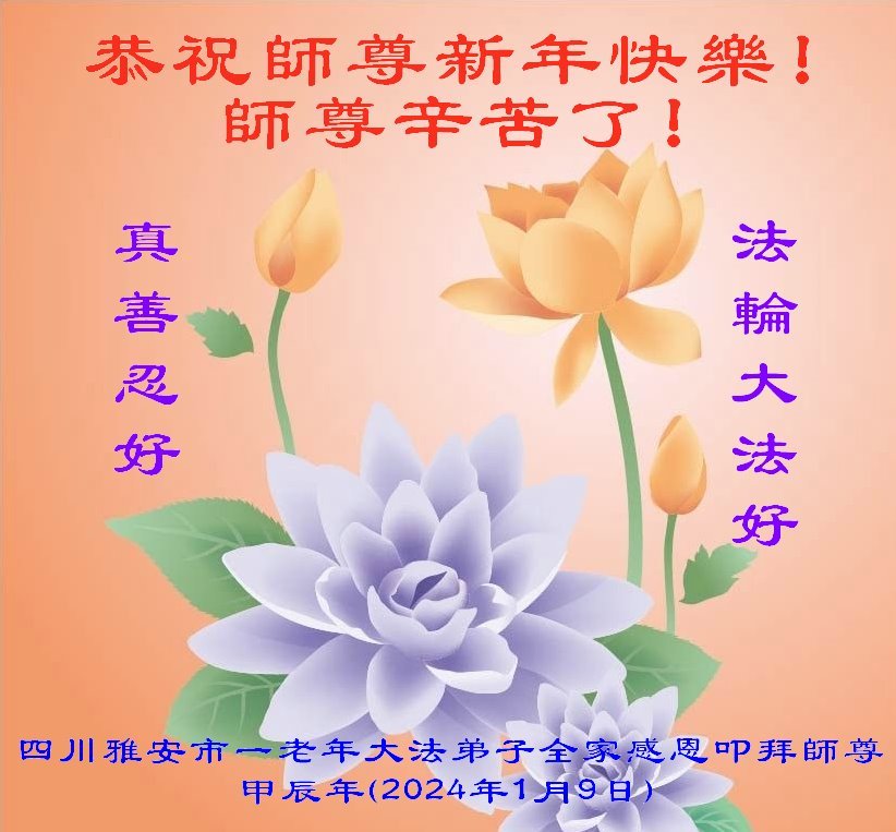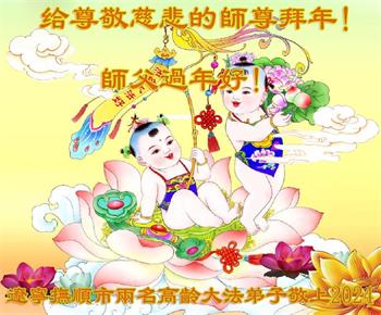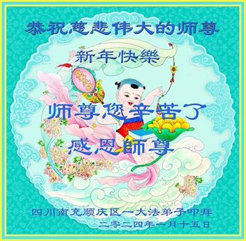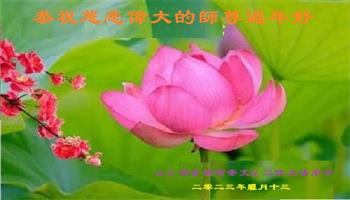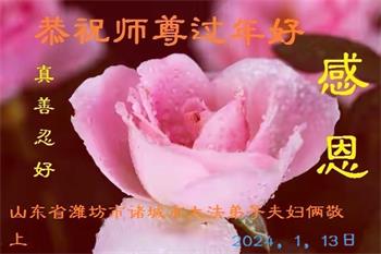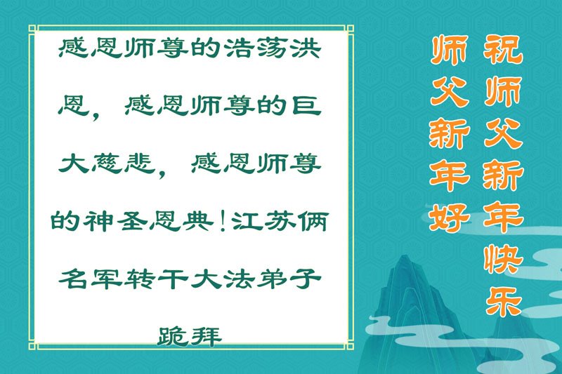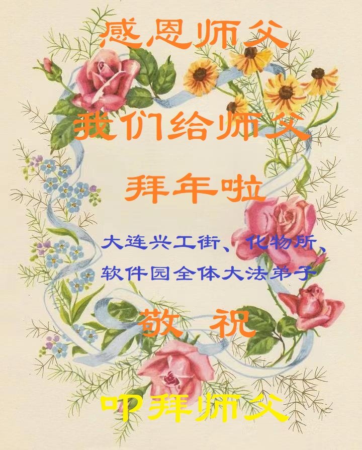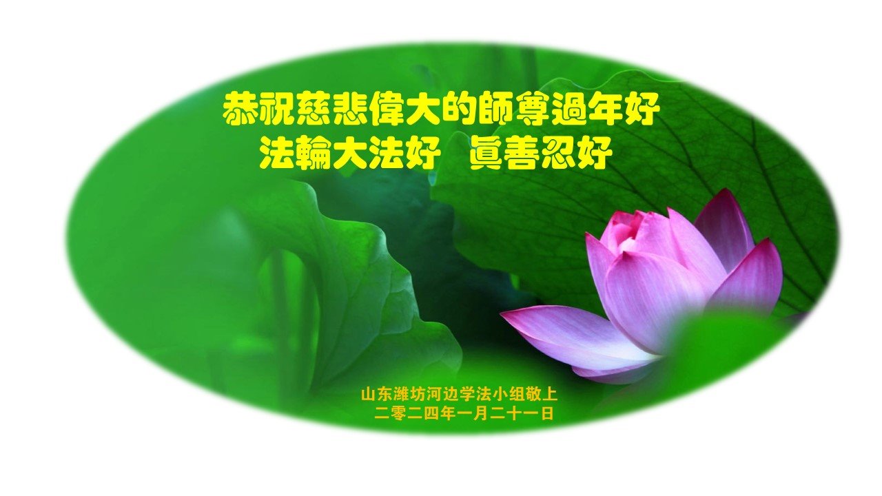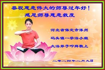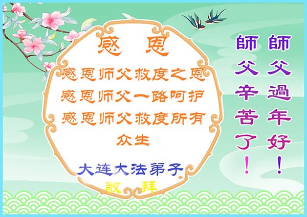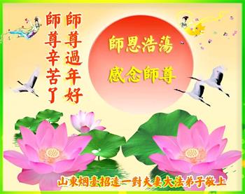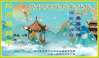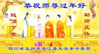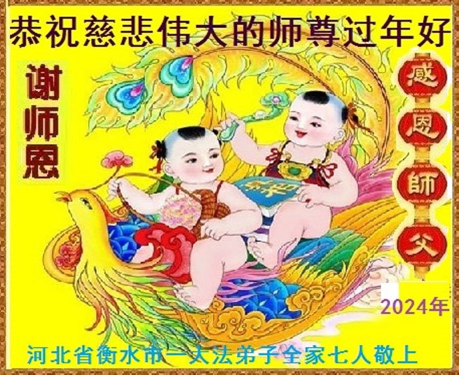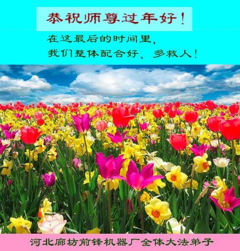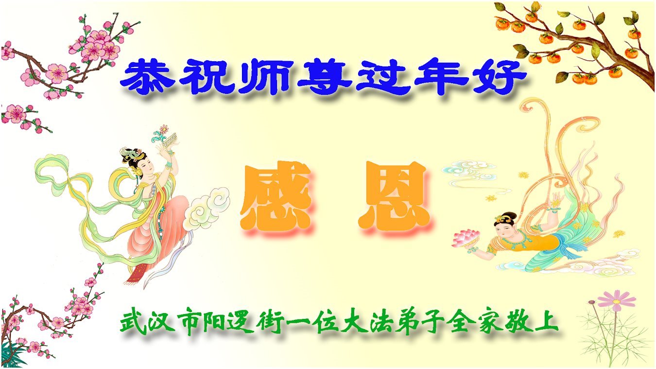 中国传统的新春佳节即将到来,来自中国各地、各行各业的大法弟子们想念远在大洋彼岸的慈悲伟大的李洪志师父,叩拜师尊过年好!大法弟子们表示,一定要时时用师父的法衡量自己,不断的同化大法,修成新宇宙的正觉。