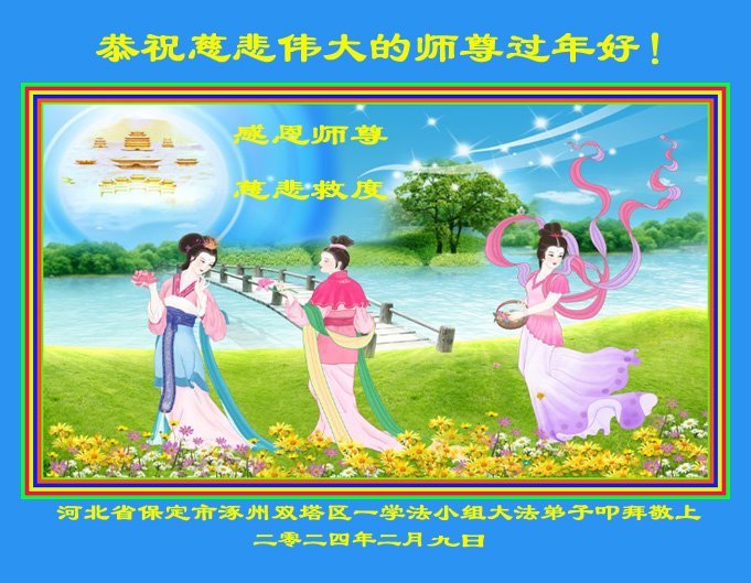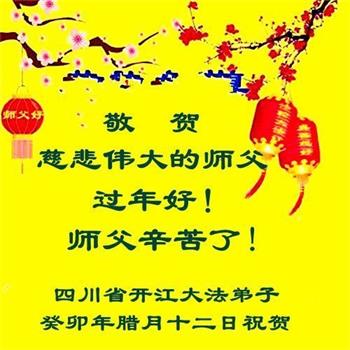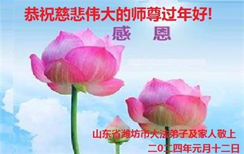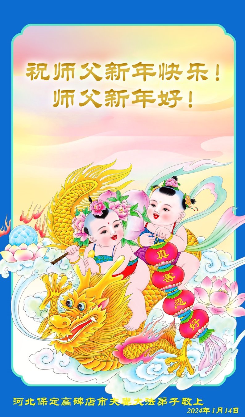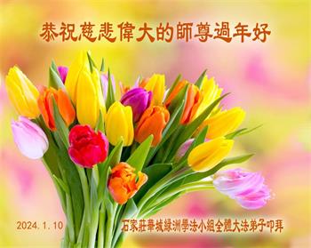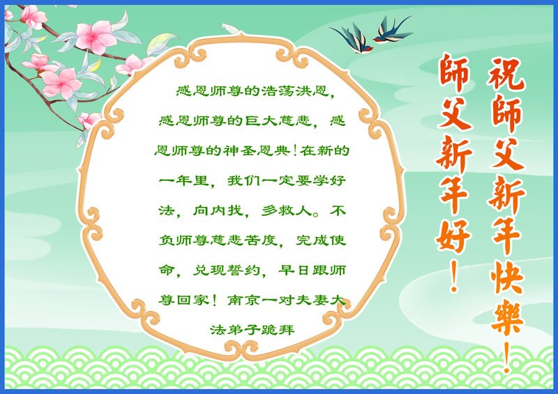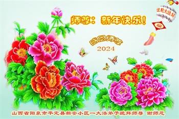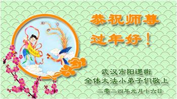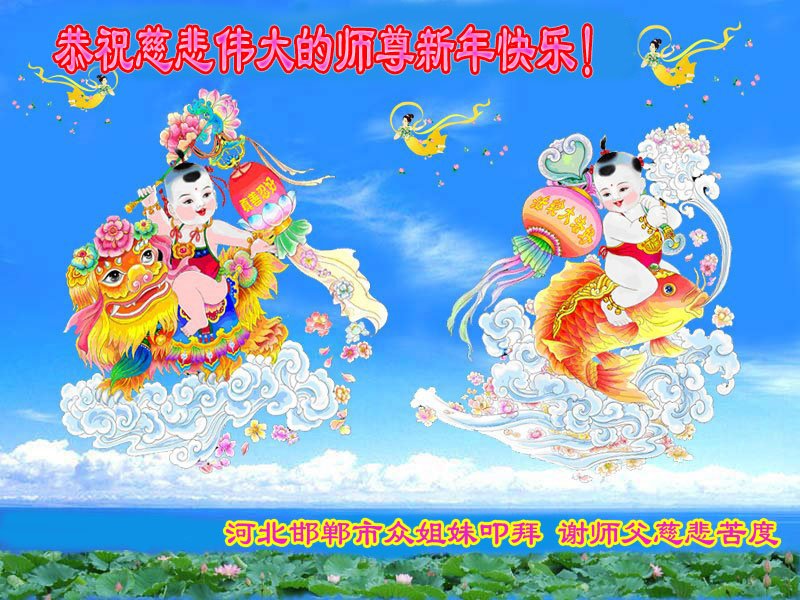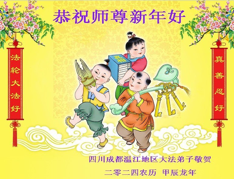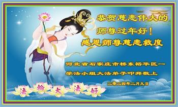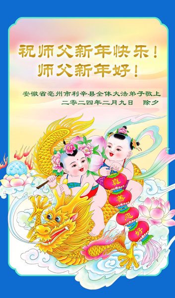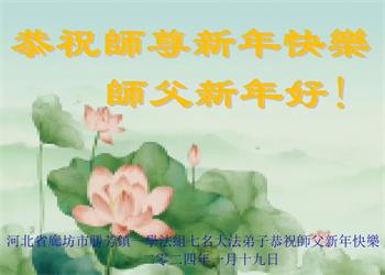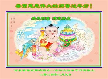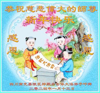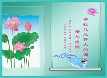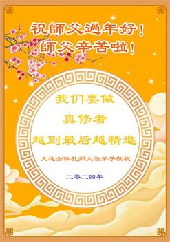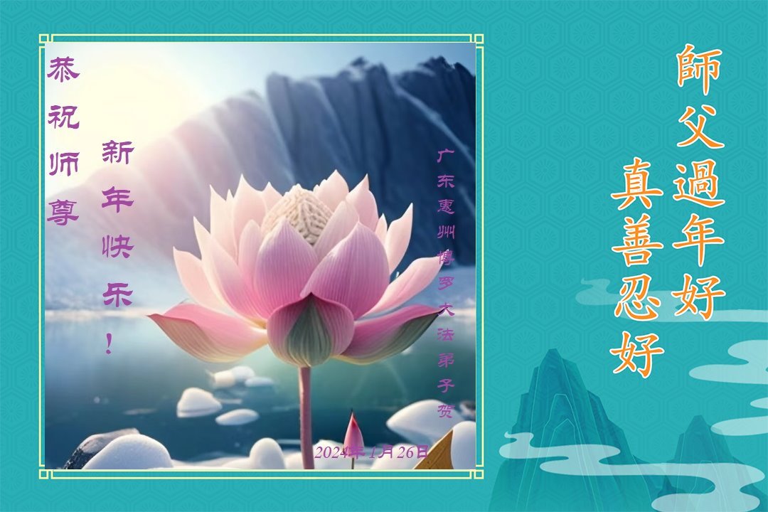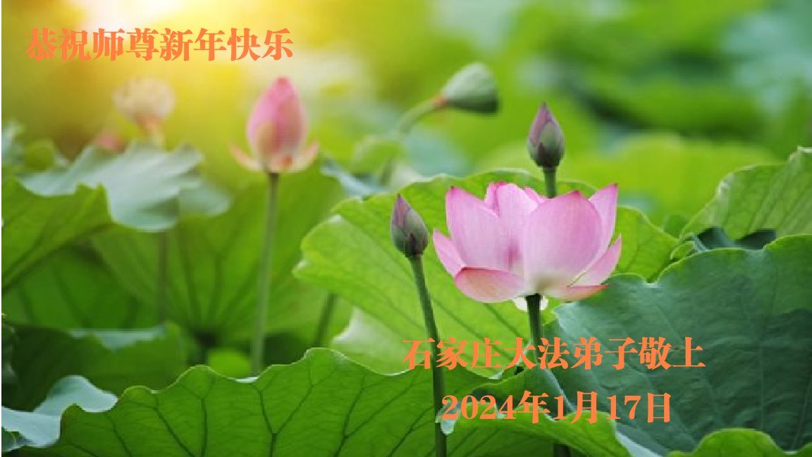 中国传统的新春佳节即将到来,来自中国各地、各行各业的大法弟子们想念远在大洋彼岸的慈悲伟大的李洪志师父,叩拜师尊过年好!大法弟子们表示,一定要时时用师父的法衡量自己,不断的同化大法,修成新宇宙的正觉。