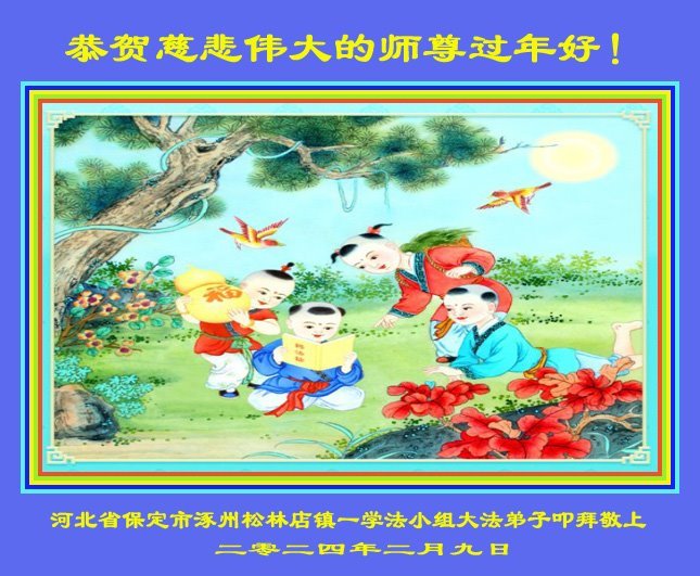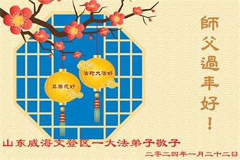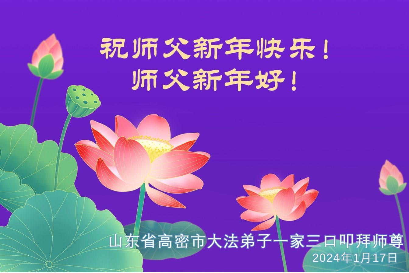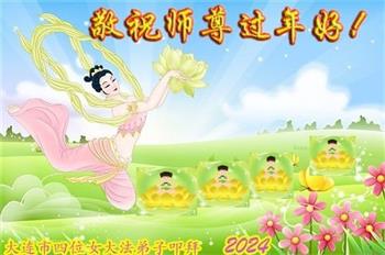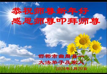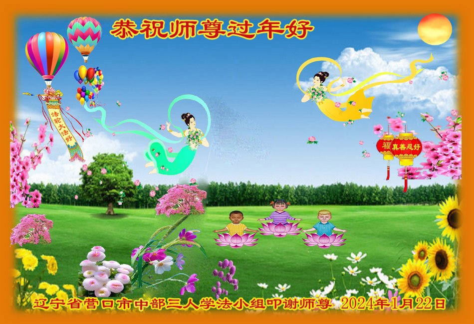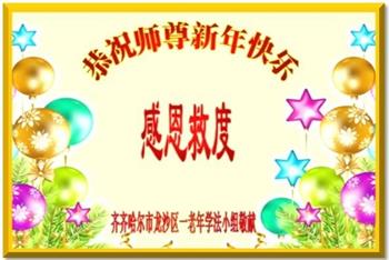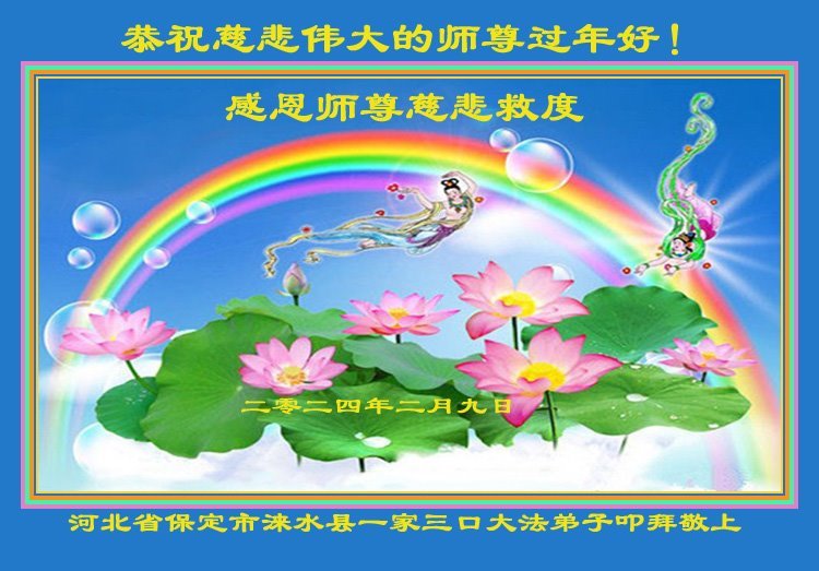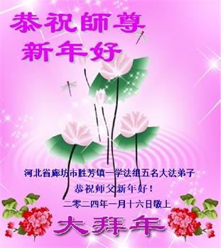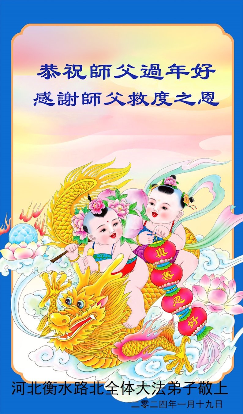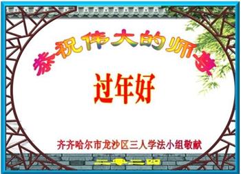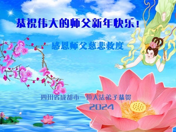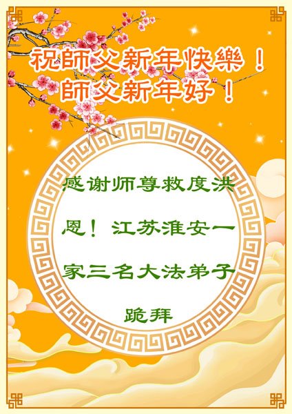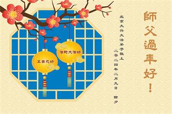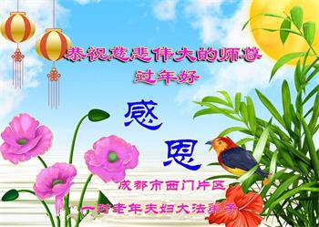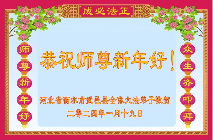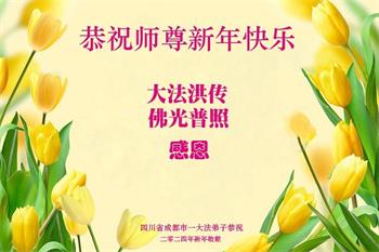 中国传统的新春佳节即将到来,来自中国各地、各行各业的大法弟子们想念远在大洋彼岸的慈悲伟大的李洪志师父,叩拜师尊过年好!大法弟子们表示,一定要时时用师父的法衡量自己,不断的同化大法,修成新宇宙的正觉。