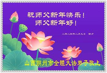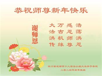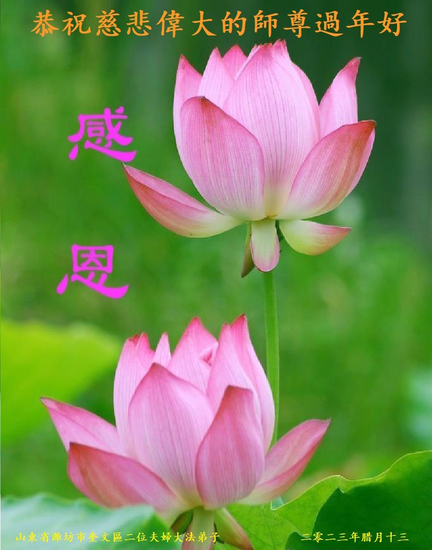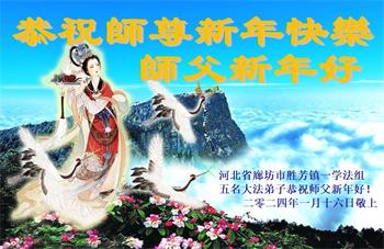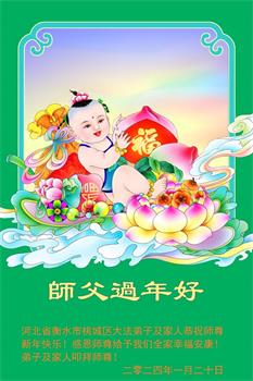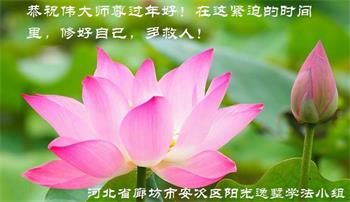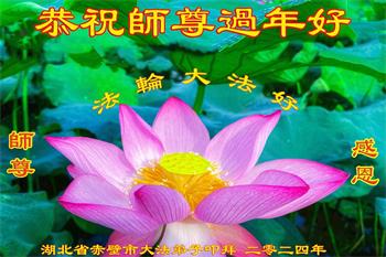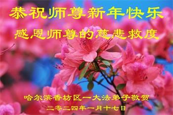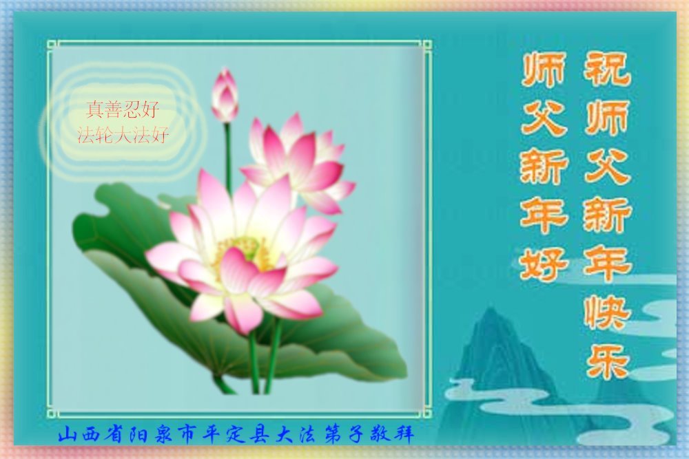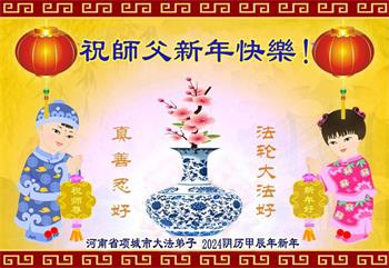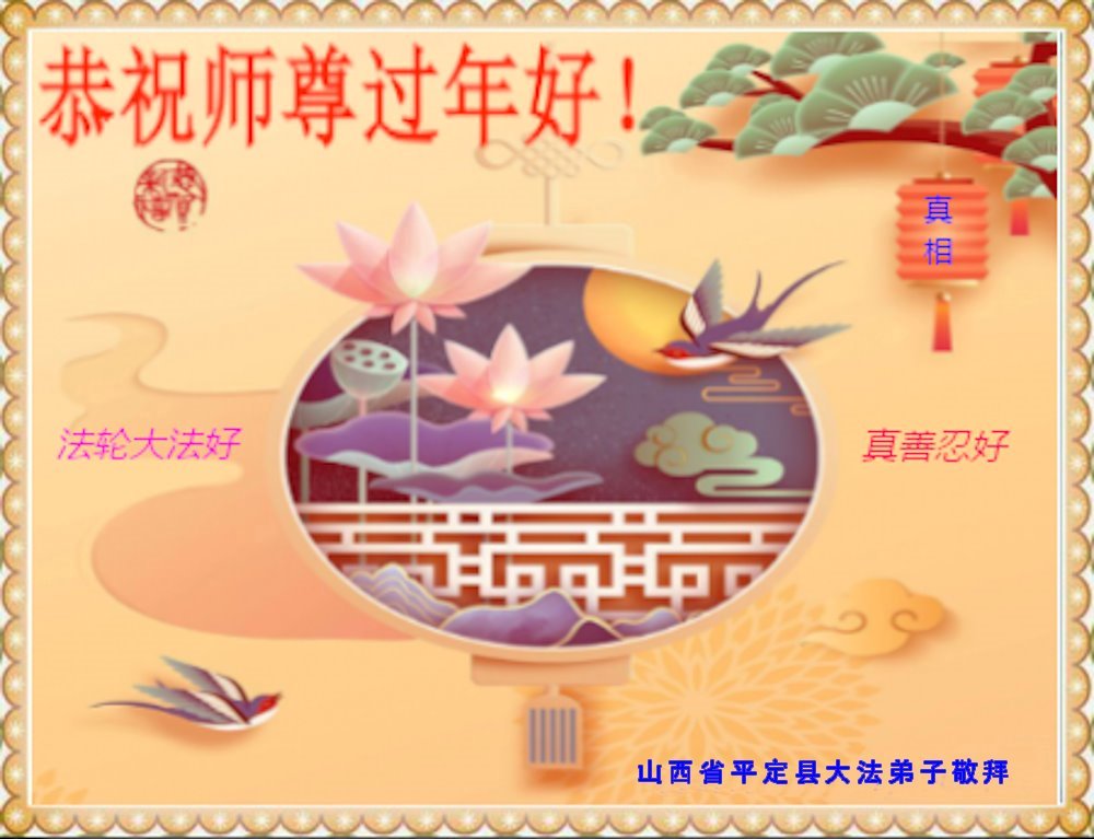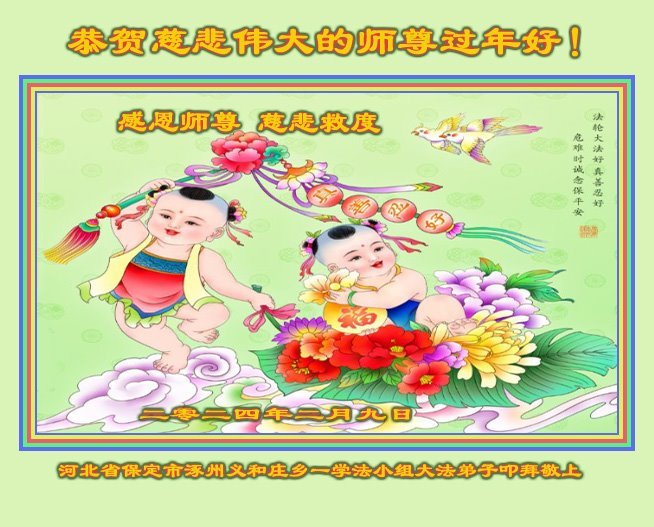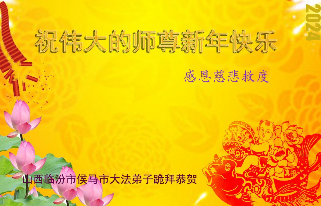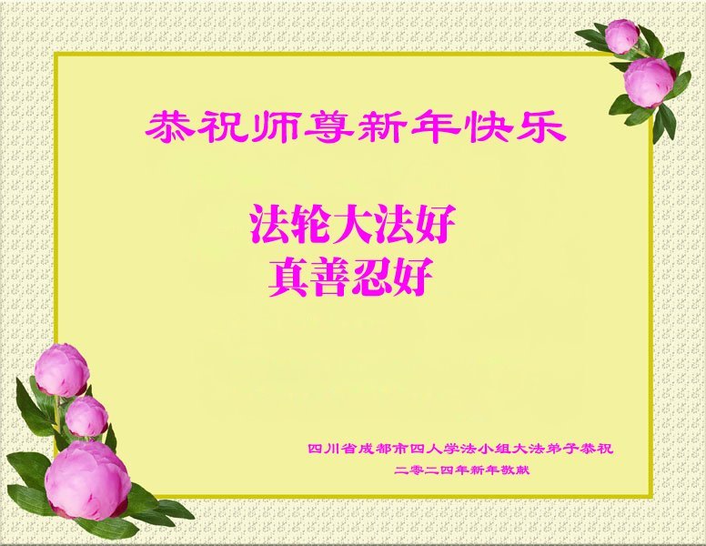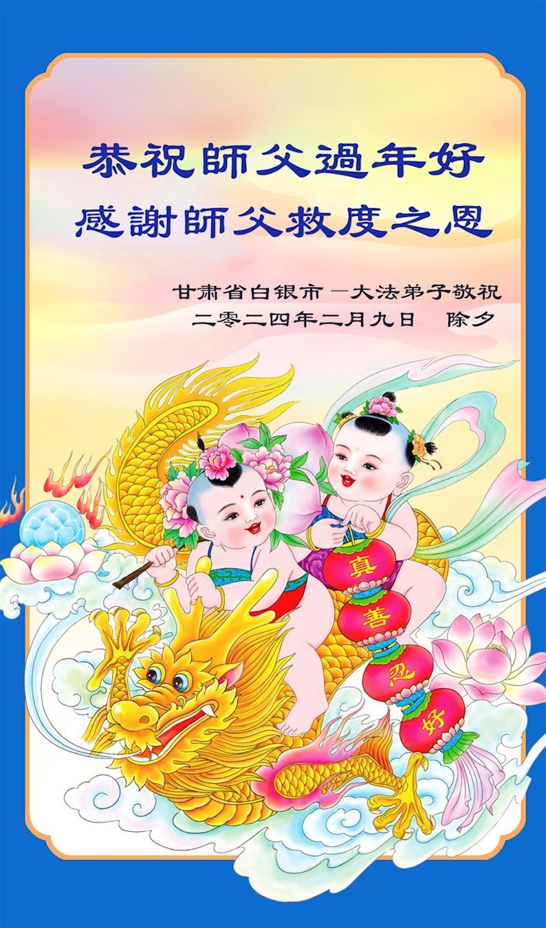 中国传统的新春佳节即将到来,来自中国各地、各行各业的大法弟子们想念远在大洋彼岸的慈悲伟大的李洪志师父,叩拜师尊过年好!大法弟子们表示,一定要时时用师父的法衡量自己,不断的同化大法,修成新宇宙的正觉。
