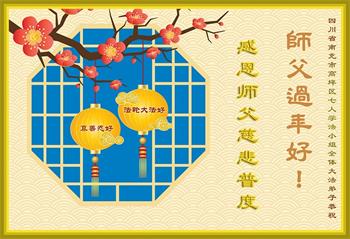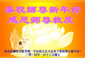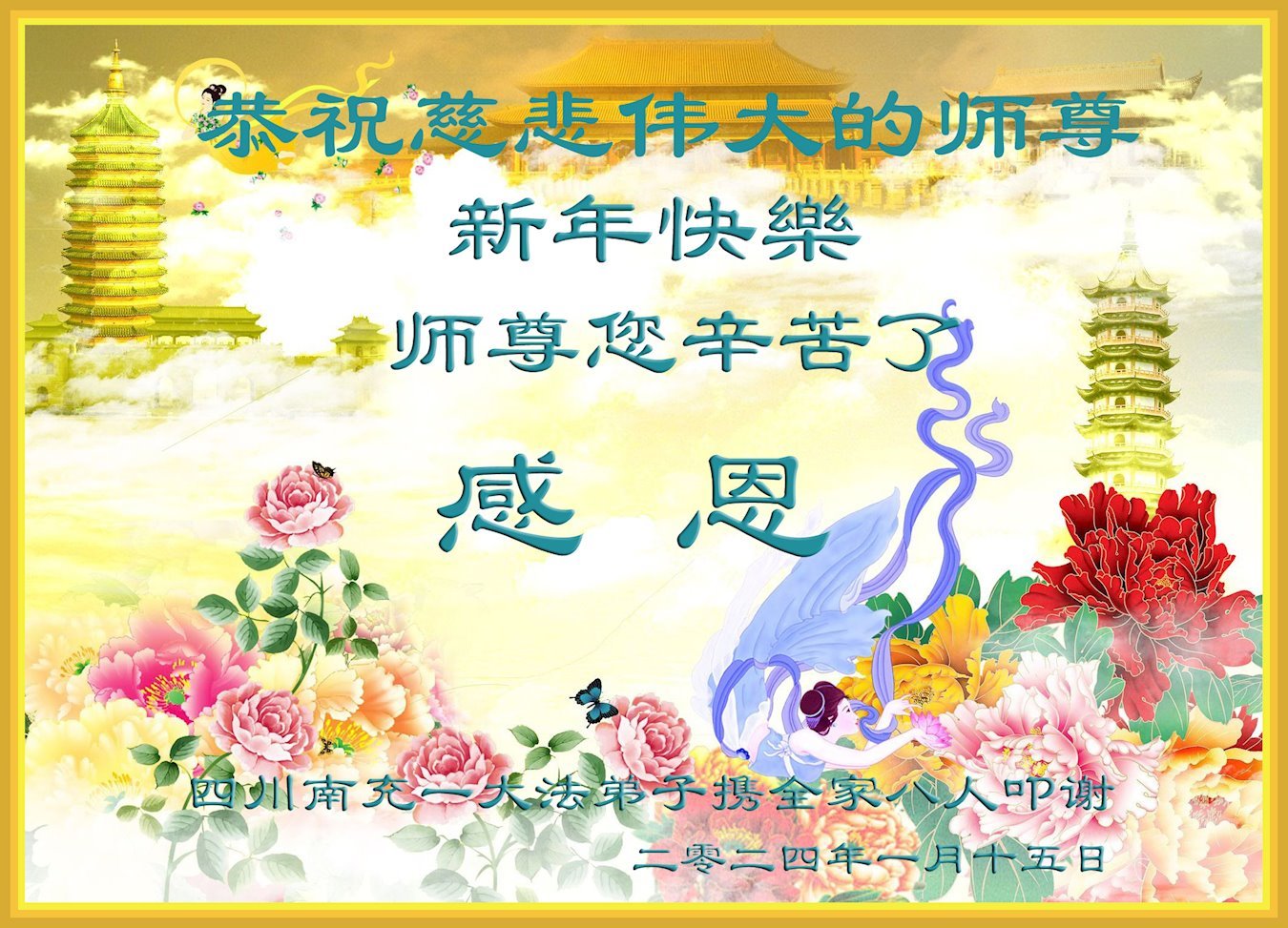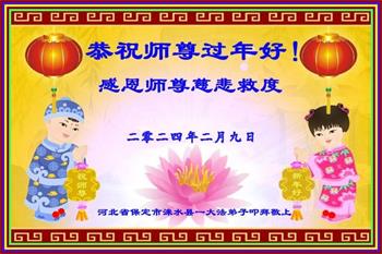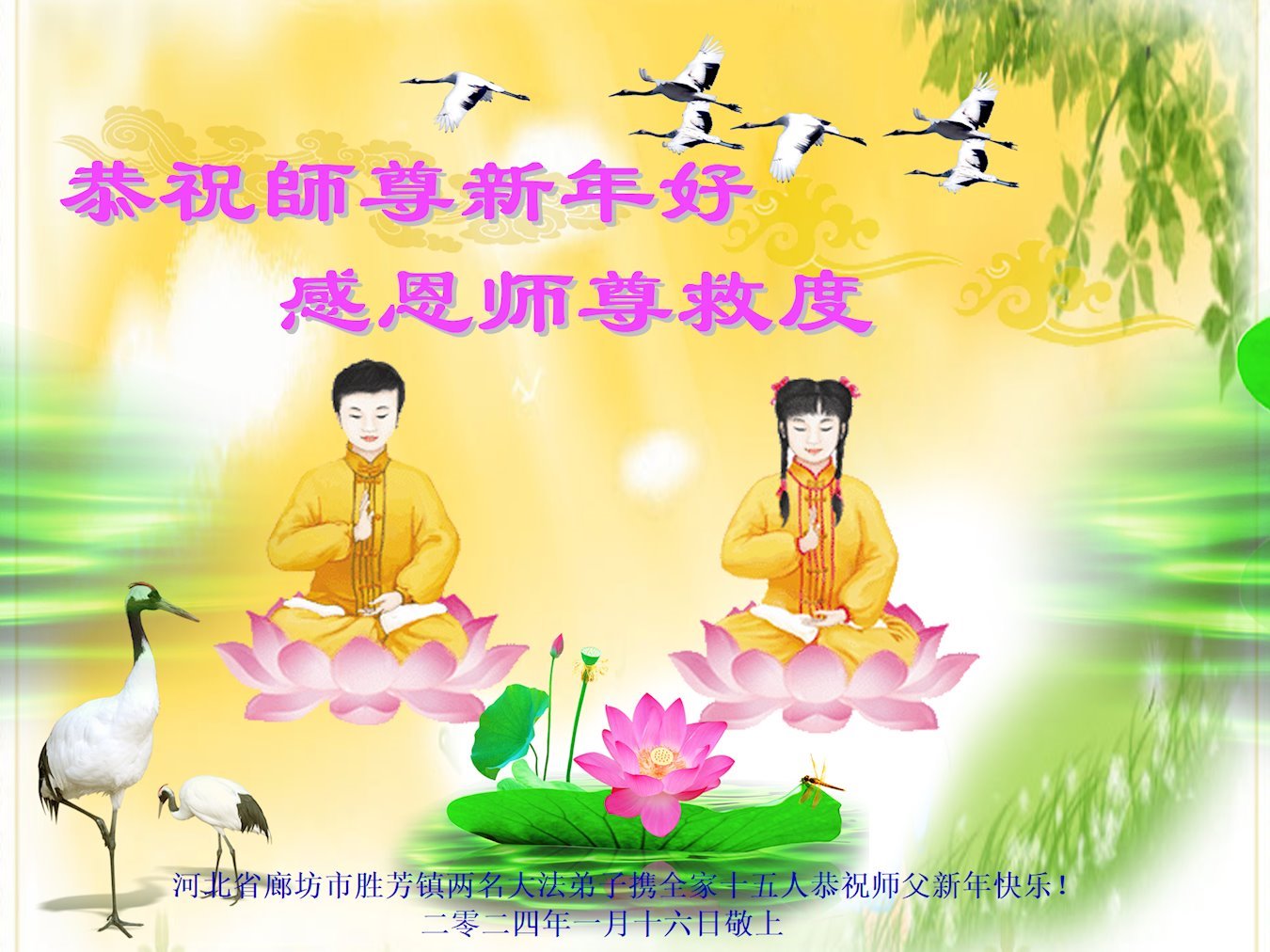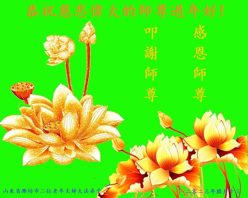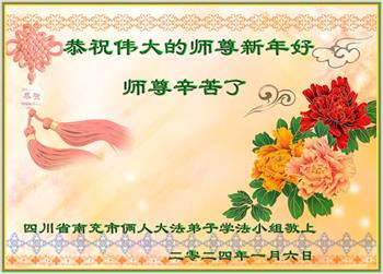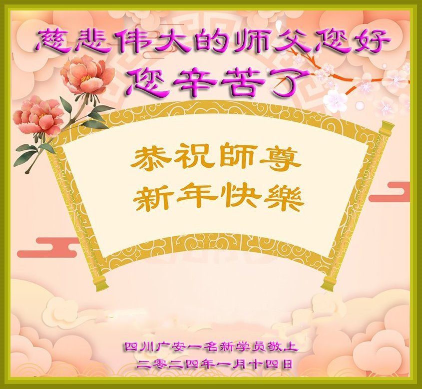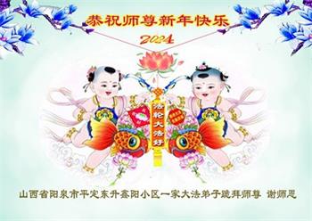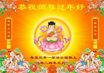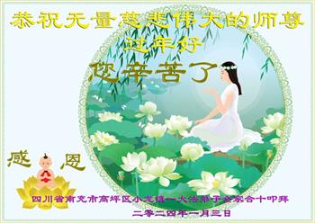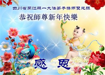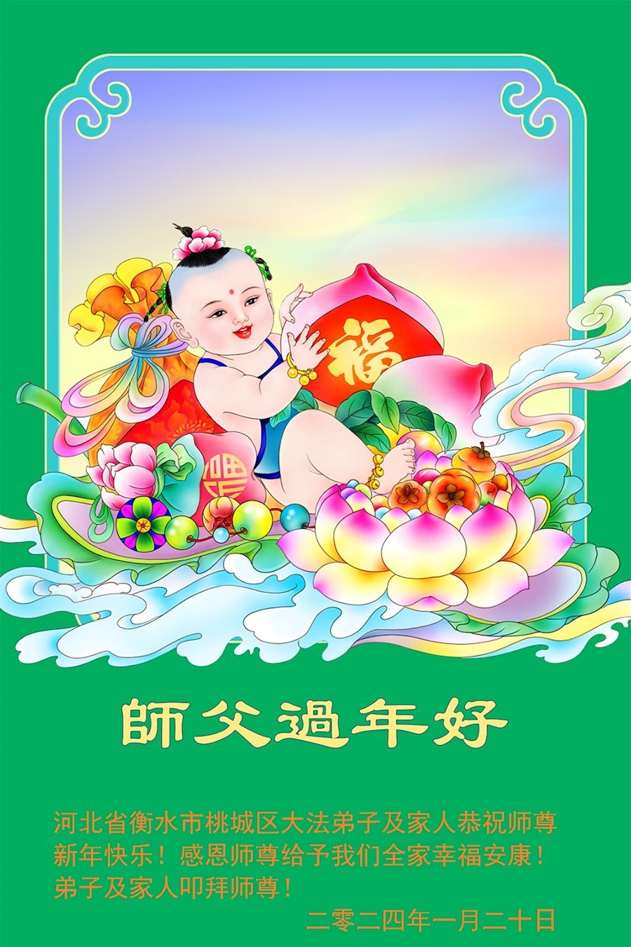 中国传统的新春佳节即将到来,来自中国各地、各行各业的大法弟子们想念远在大洋彼岸的慈悲伟大的李洪志师父,叩拜师尊过年好!大法弟子们表示,一定要时时用师父的法衡量自己,不断的同化大法,修成新宇宙的正觉。