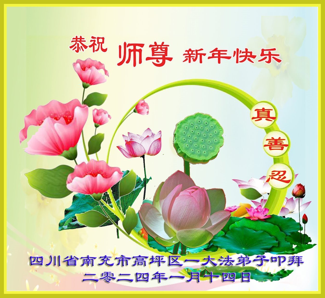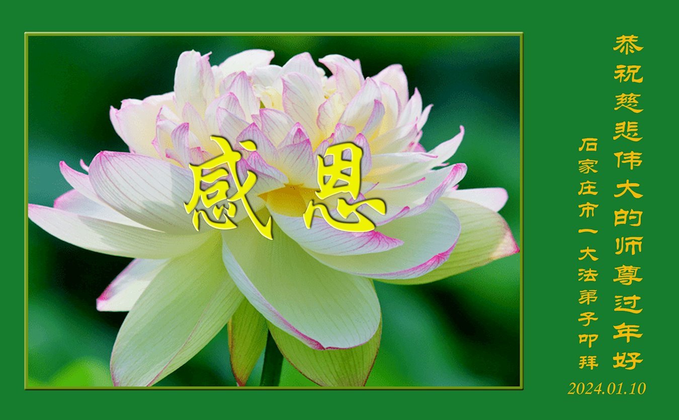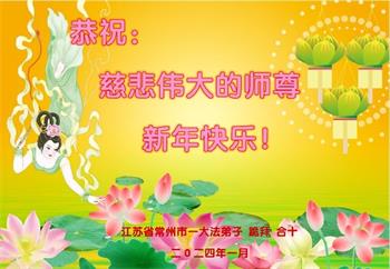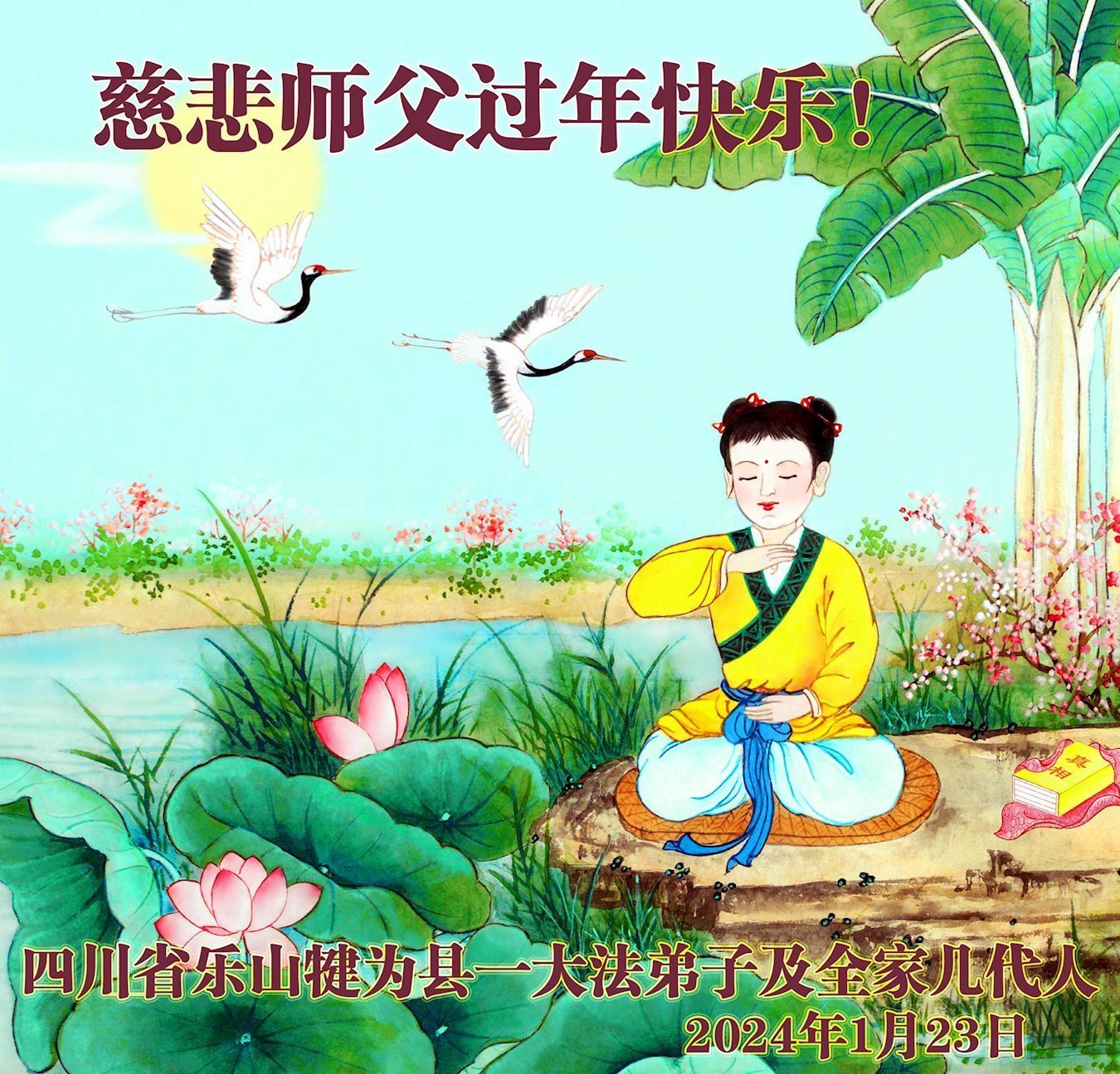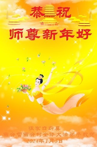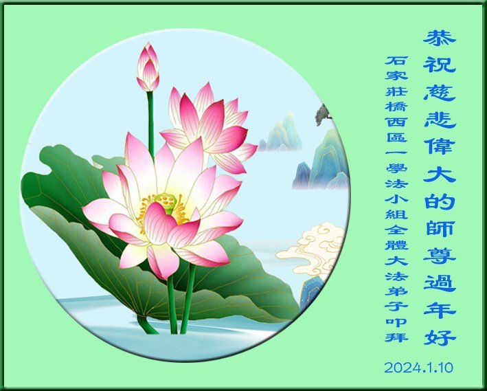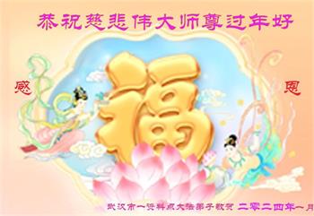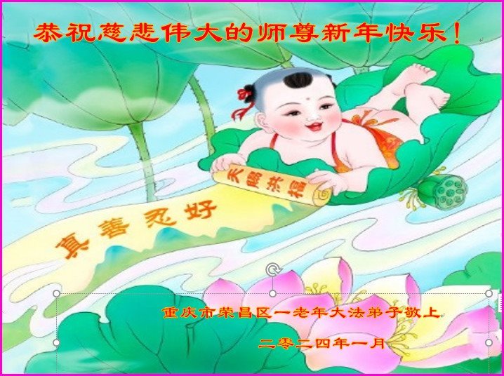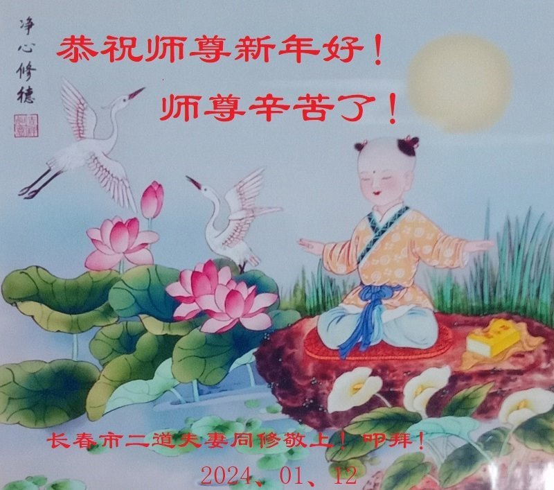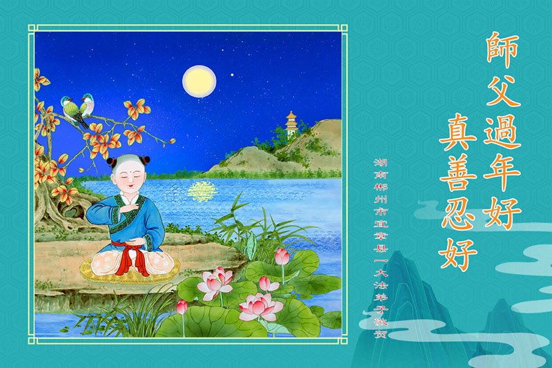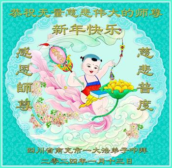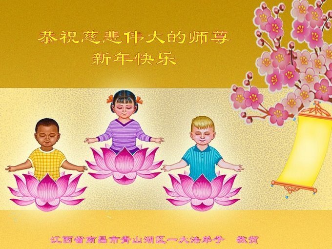 江西省南昌市一位曾经的佛教居士有幸开始修炼法轮大法,在贺词中说:前年我不幸患上晚期癌症,生命垂危。二零二三年夏季,通过大法弟子讲真相,我有幸得法修炼,身体得到了改善。在新的一年里,我一定坚定自己的修炼道路,精進实修。新年佳节来临,我给师尊叩首合十拜年!