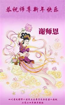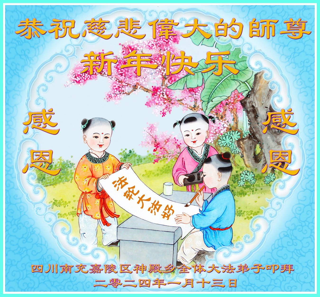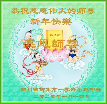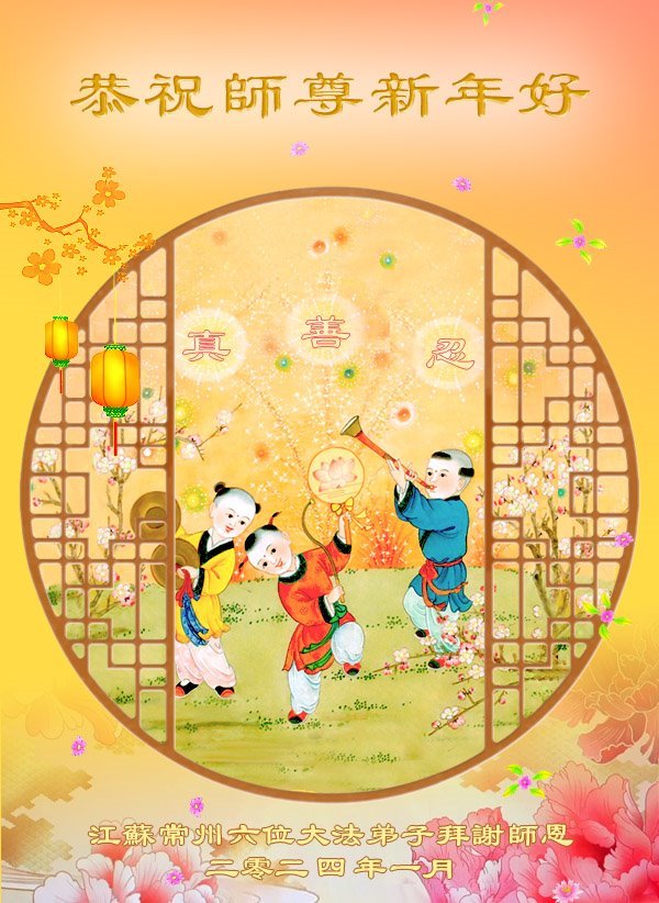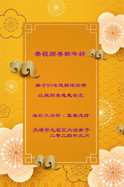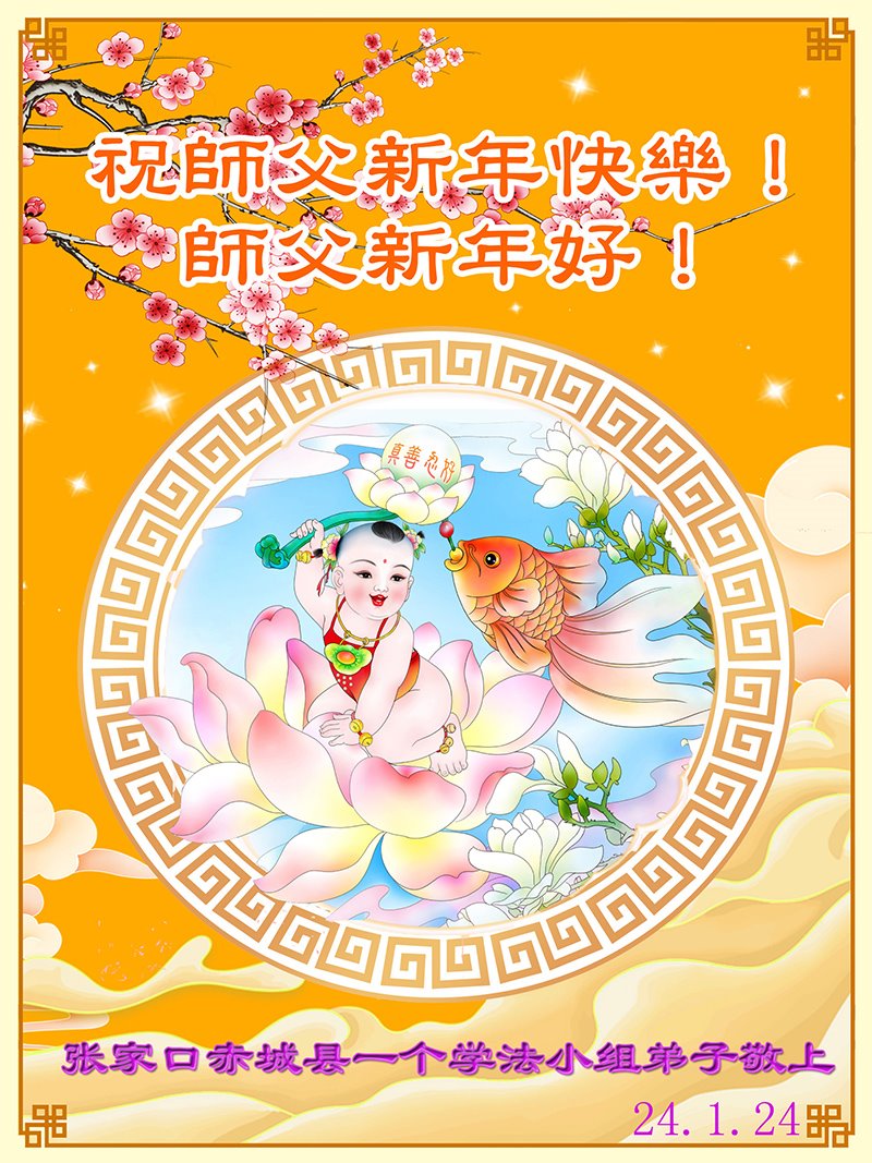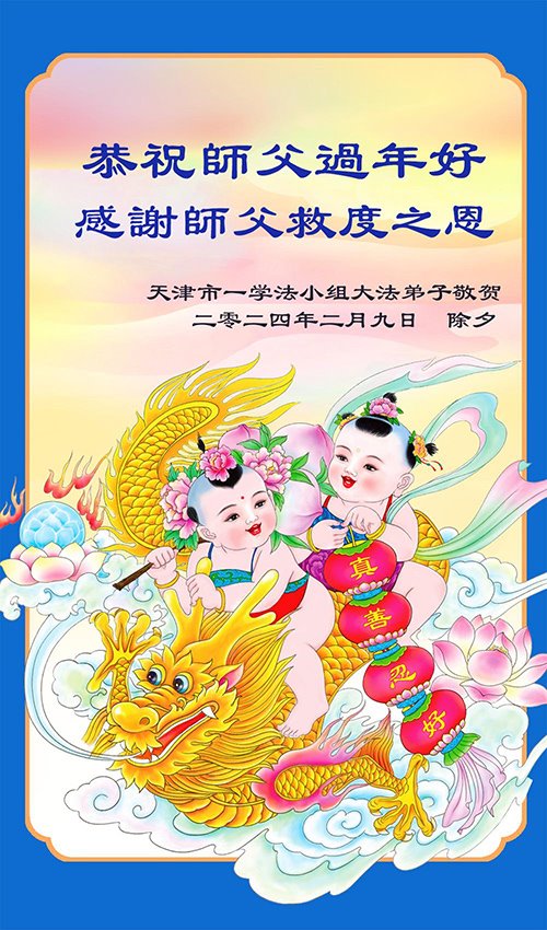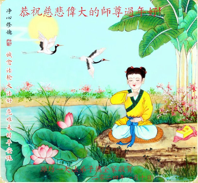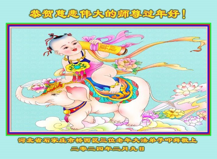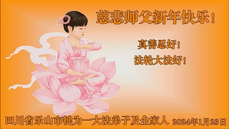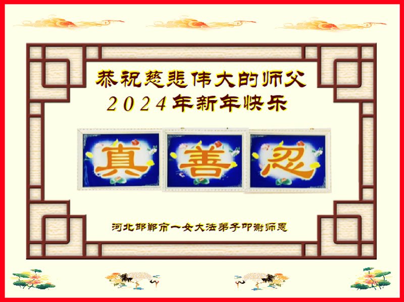 江西省南昌市一位曾经的佛教居士有幸开始修炼法轮大法,在贺词中说:前年我不幸患上晚期癌症,生命垂危。二零二三年夏季,通过大法弟子讲真相,我有幸得法修炼,身体得到了改善。在新的一年里,我一定坚定自己的修炼道路,精進实修。新年佳节来临,我给师尊叩首合十拜年!