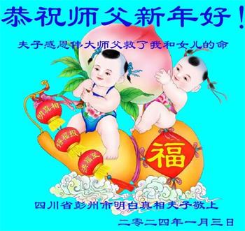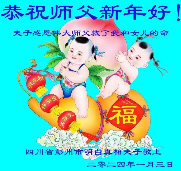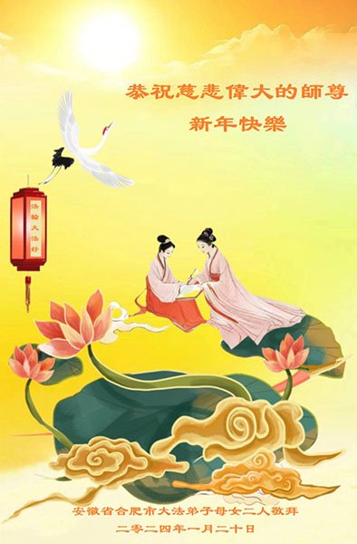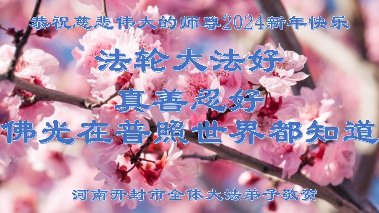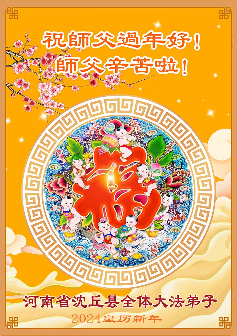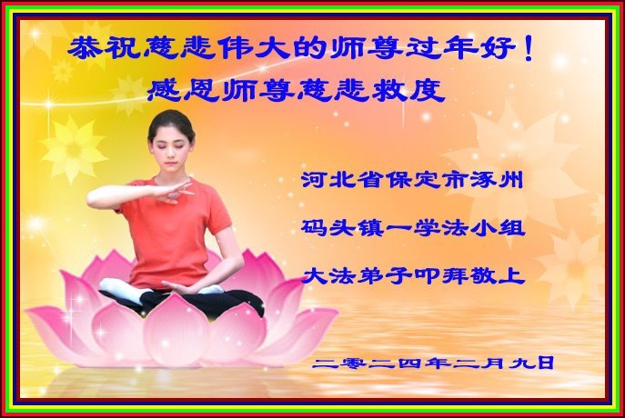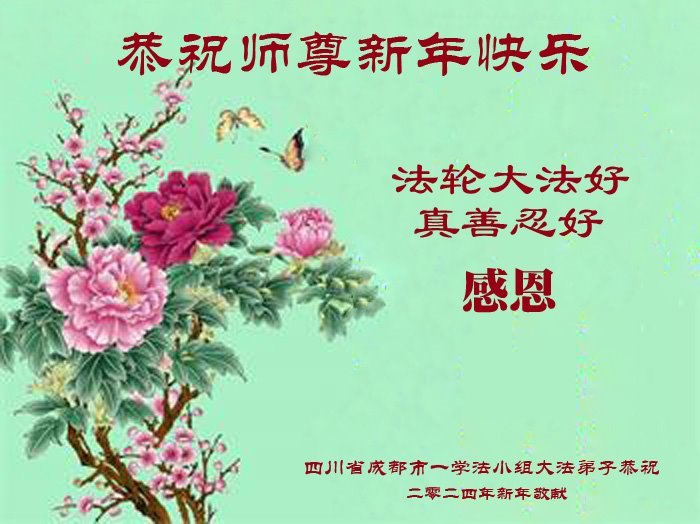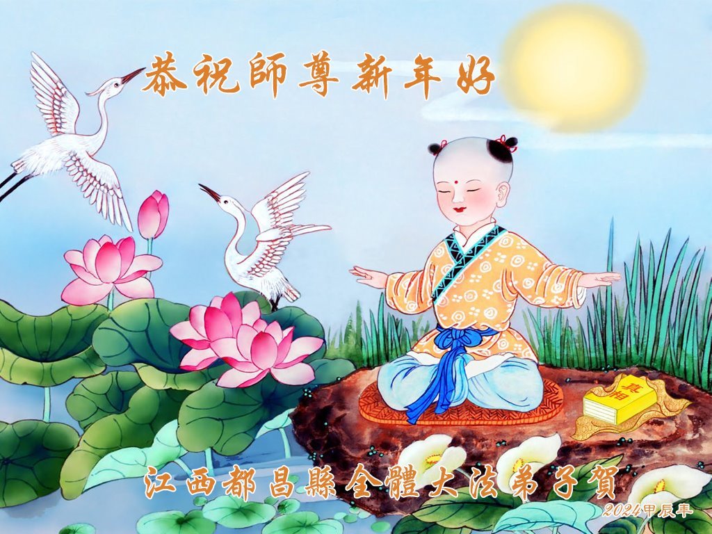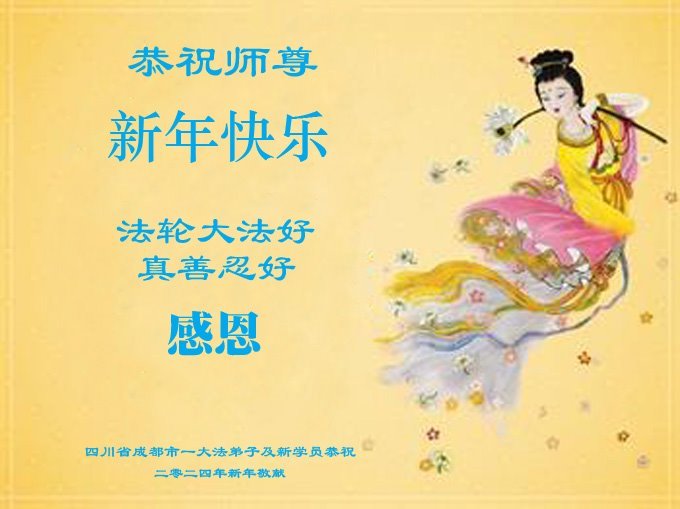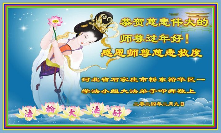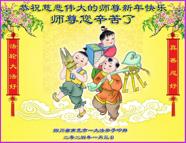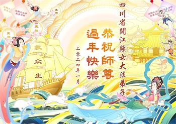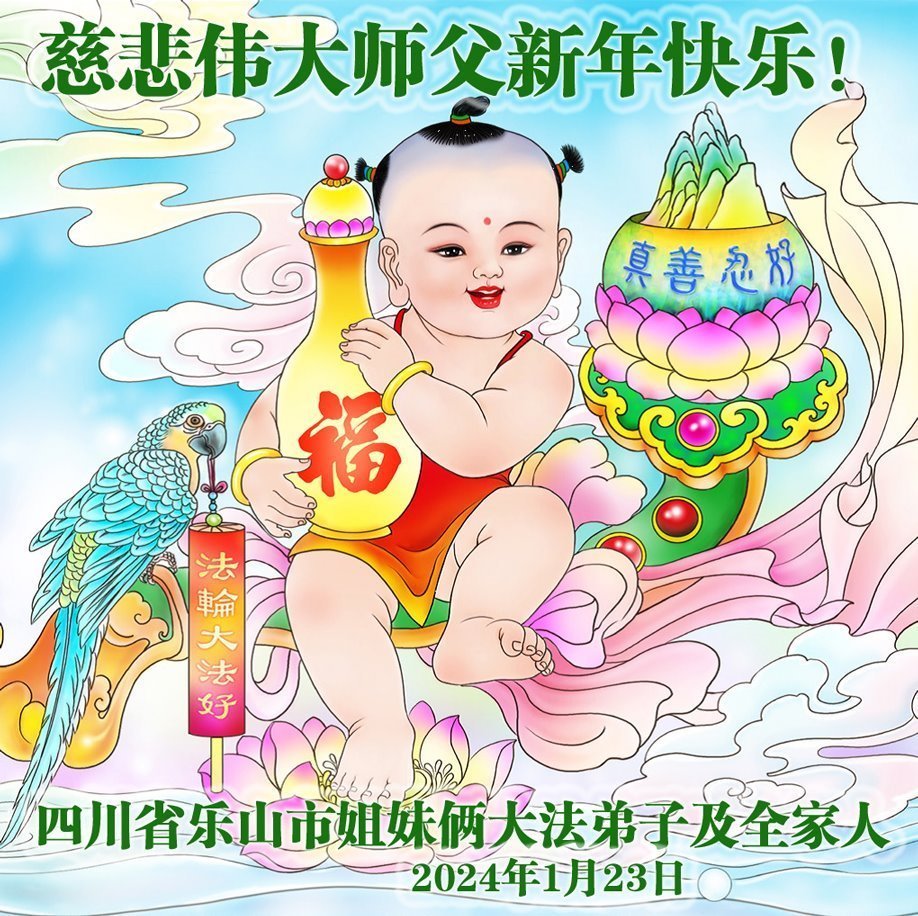 江西省南昌市一位曾经的佛教居士有幸开始修炼法轮大法,在贺词中说:前年我不幸患上晚期癌症,生命垂危。二零二三年夏季,通过大法弟子讲真相,我有幸得法修炼,身体得到了改善。在新的一年里,我一定坚定自己的修炼道路,精進实修。新年佳节来临,我给师尊叩首合十拜年!