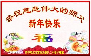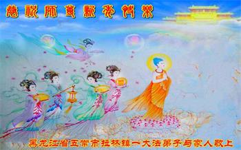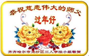 齐齐哈尔市富拉尔基区一位新学员在给师父的贺词中表示:我学大法才四个月,受益太多,师父给我净化身体,严重的失眠好了,每天睡觉很踏实,遇到矛盾找自己,哪里没做好,能在大法中归正。谢谢师父救度!