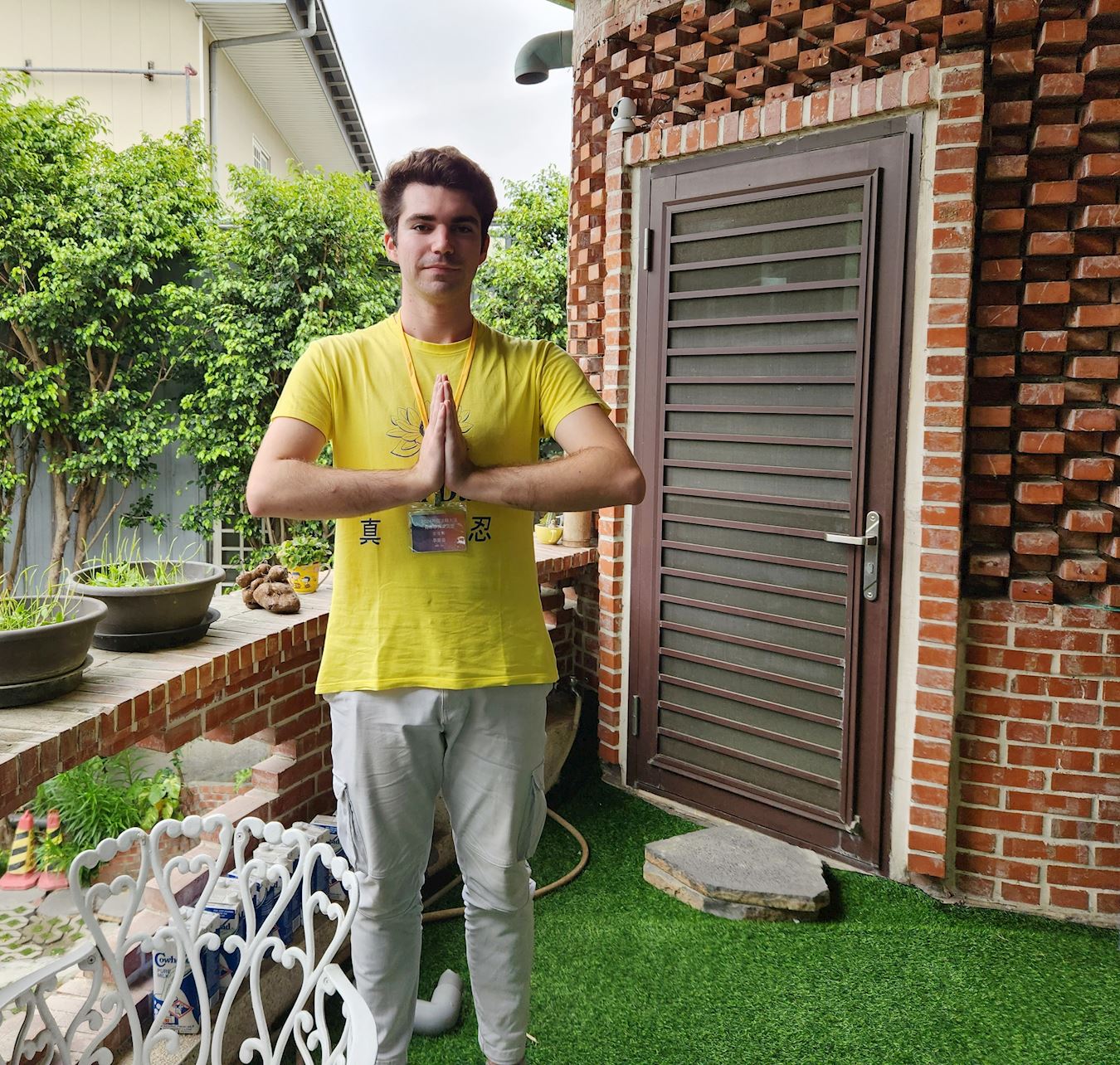 首次参加台湾的青年学子交流,他感到师父的加持,身心非常舒畅,轻松愉快,心里平静祥和明亮。