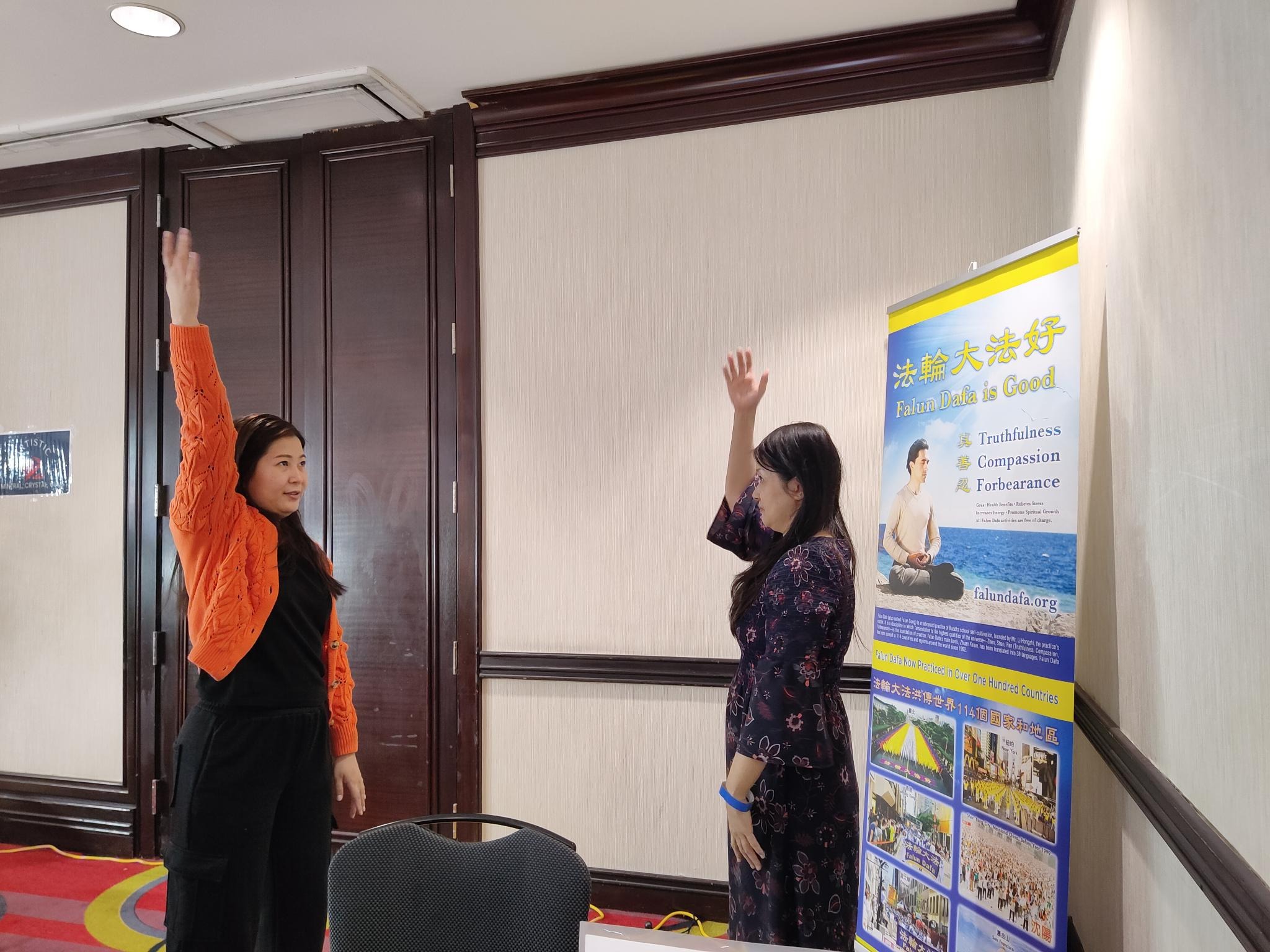 三人一起学炼了一至四套功法。炼功后,她们都感觉身体轻松,充满能量。她们对第五套功法打坐也很感兴趣。由于赶时间,没来得及现场学,想要之后上法轮大法网站去学。