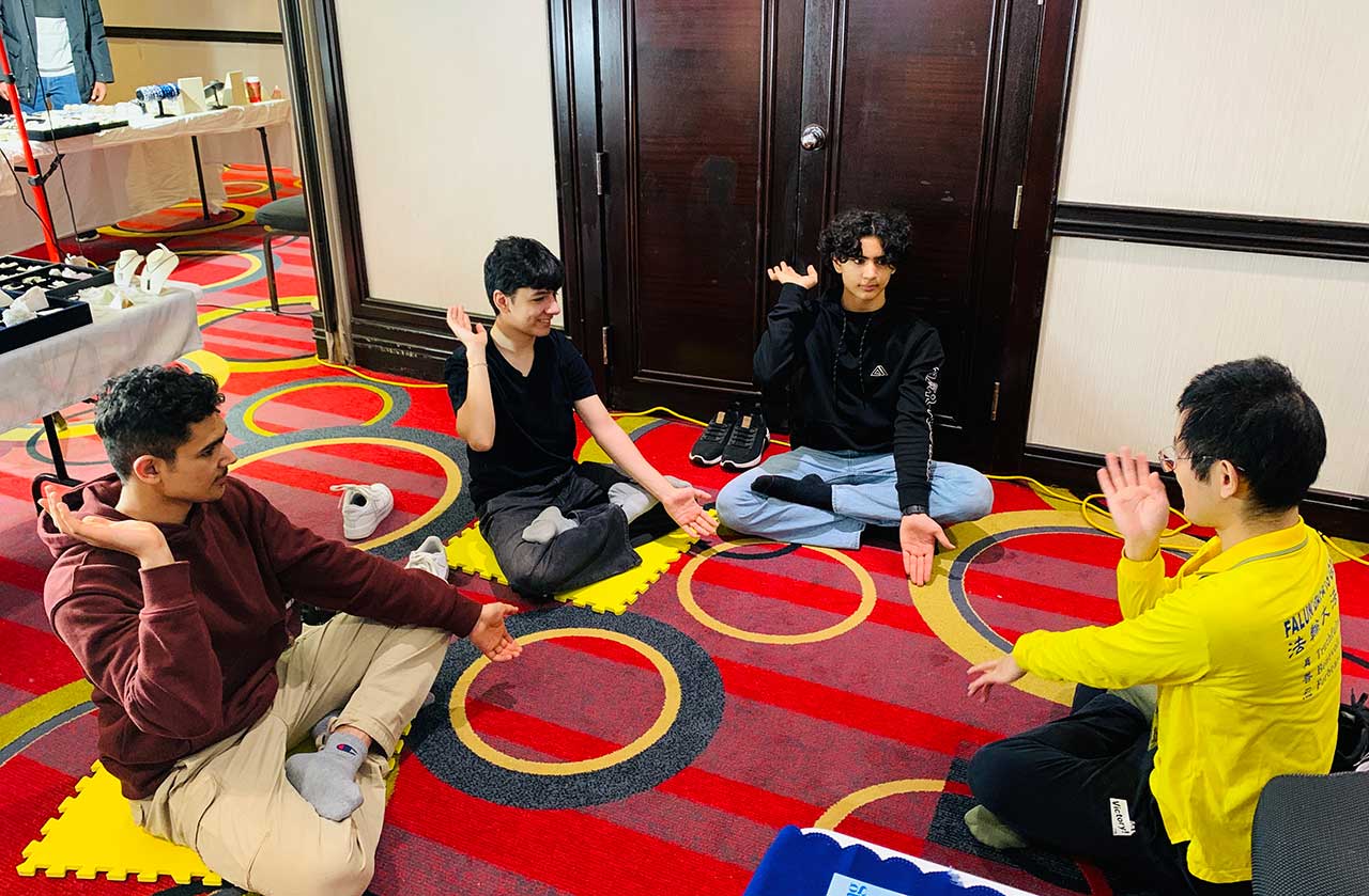 伊德里斯(Idris)、埃利亚斯(Elias)和埃赫桑(Ehsan)是三位青年学生,其中埃利亚斯是大学生,伊德里斯和埃赫桑是高中生。他们家住伦敦市,驱车两个多小时来多伦多参观展会。在经过大法展位时,家长推荐他们一起来学法轮功,三人便学炼了一至五套功法。